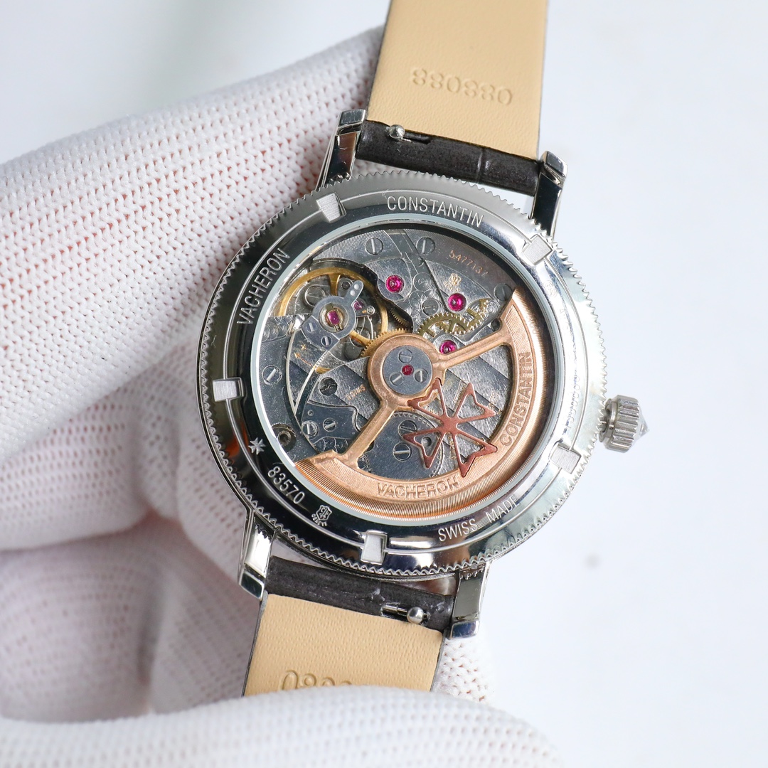 这款手表是AAAAA 1:1 质量 (非常棒). 使用了和原版一模一样的材料. 商标部分也保持了和江诗丹顿/Vacheron Constantin一样. 图片拍摄是实物手表拍摄, 您所收到的实物保证和我们图片一模一样.