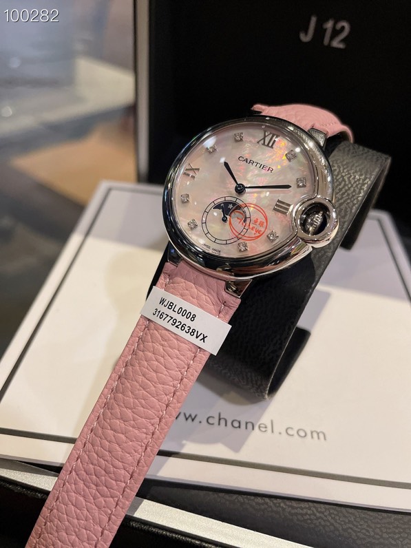 这款手表是AAAAA 1:1 质量 (非常棒). 使用了和原版一模一样的材料. 商标部分也保持了和卡地亚/Cartier一样. 图片拍摄是实物手表拍摄, 您所收到的实物保证和我们图片一模一样.