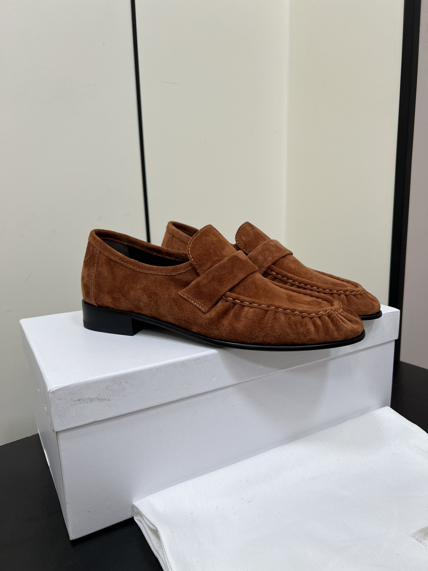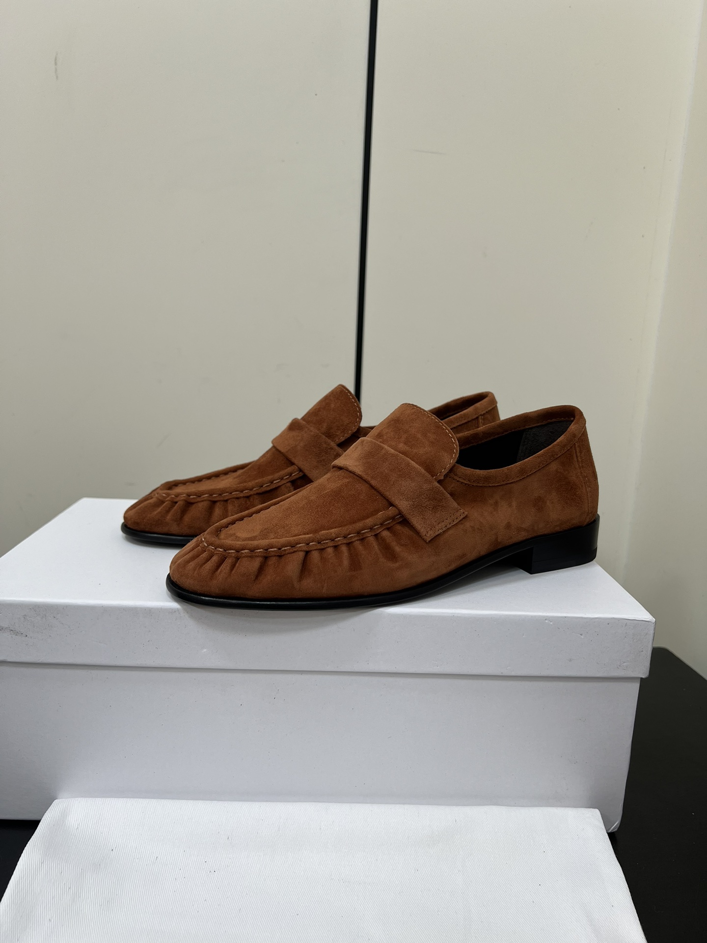这款鞋子是AAAAA 1:1 质量 (非常棒). 使用了和原版一模一样的材料. 商标部分也保持了和The Row一样. 图片拍摄是实物鞋子拍摄, 您所收到的实物保证和我们图片一模一样.