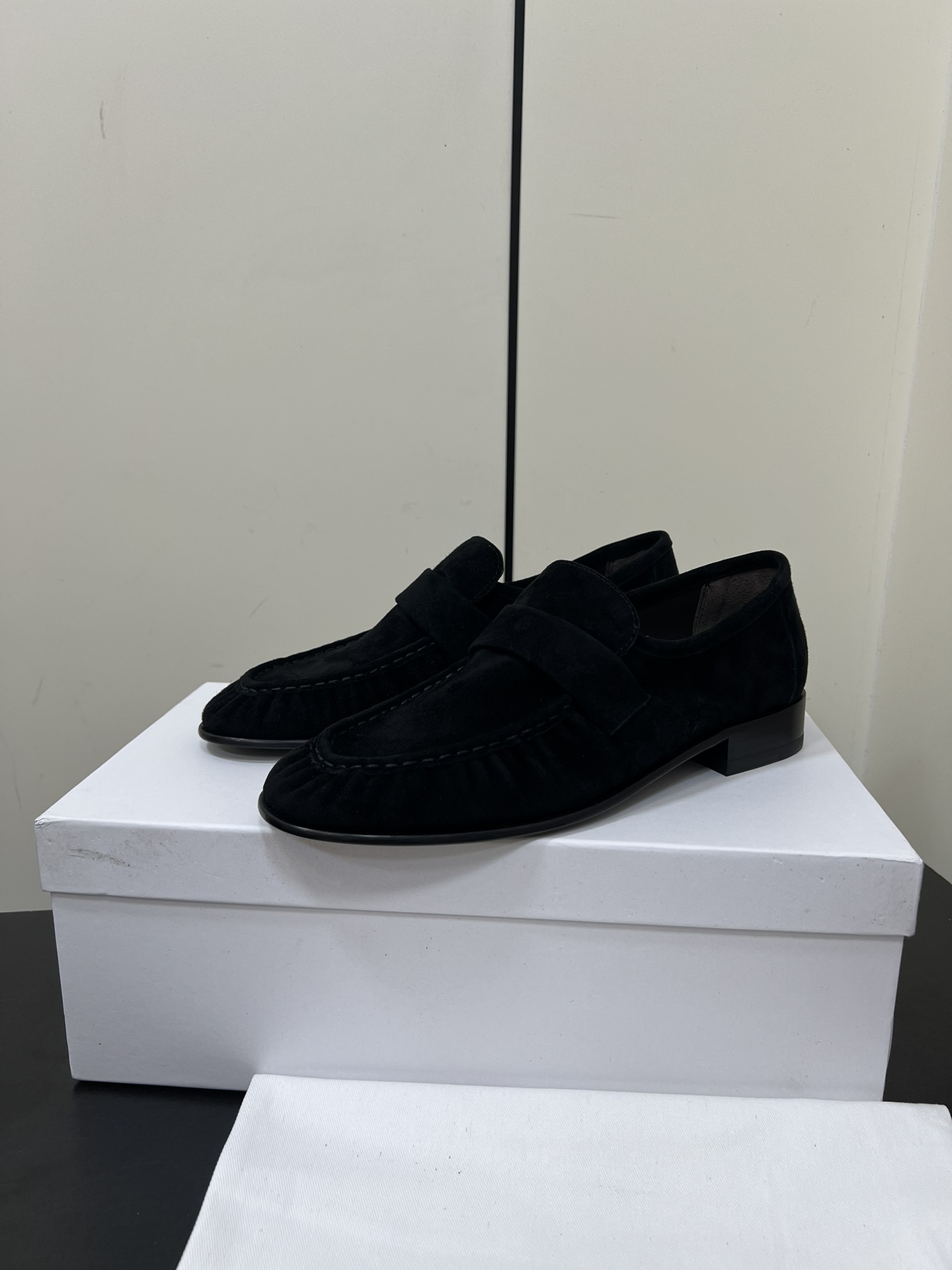 这款鞋子是AAAAA 1:1 质量 (非常棒). 使用了和原版一模一样的材料. 商标部分也保持了和The Row一样. 图片拍摄是实物鞋子拍摄, 您所收到的实物保证和我们图片一模一样.