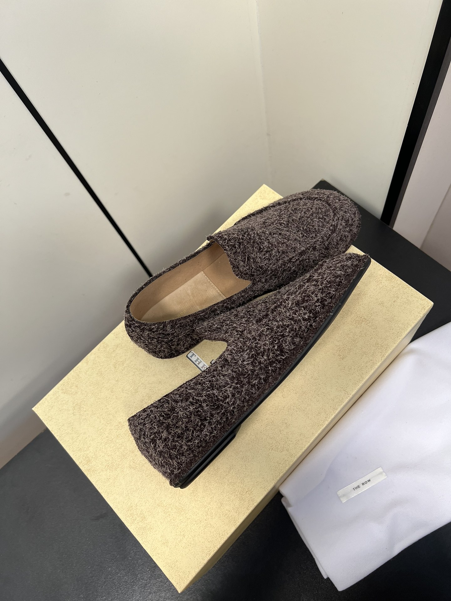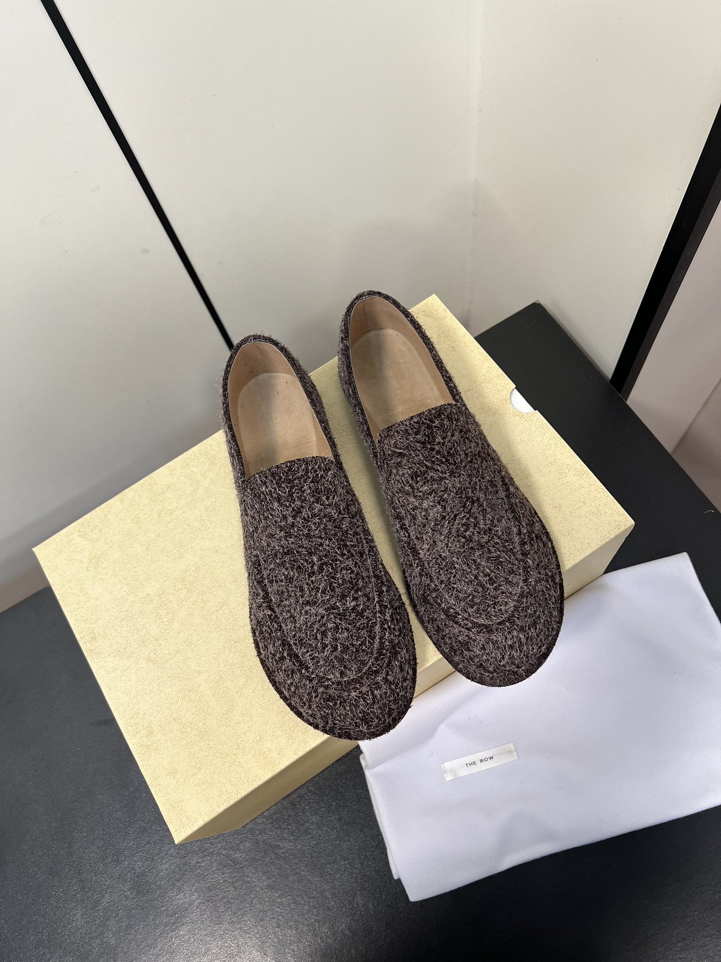 这款鞋子是AAAAA 1:1 质量 (非常棒). 使用了和原版一模一样的材料. 商标部分也保持了和The Row一样. 图片拍摄是实物鞋子拍摄, 您所收到的实物保证和我们图片一模一样.