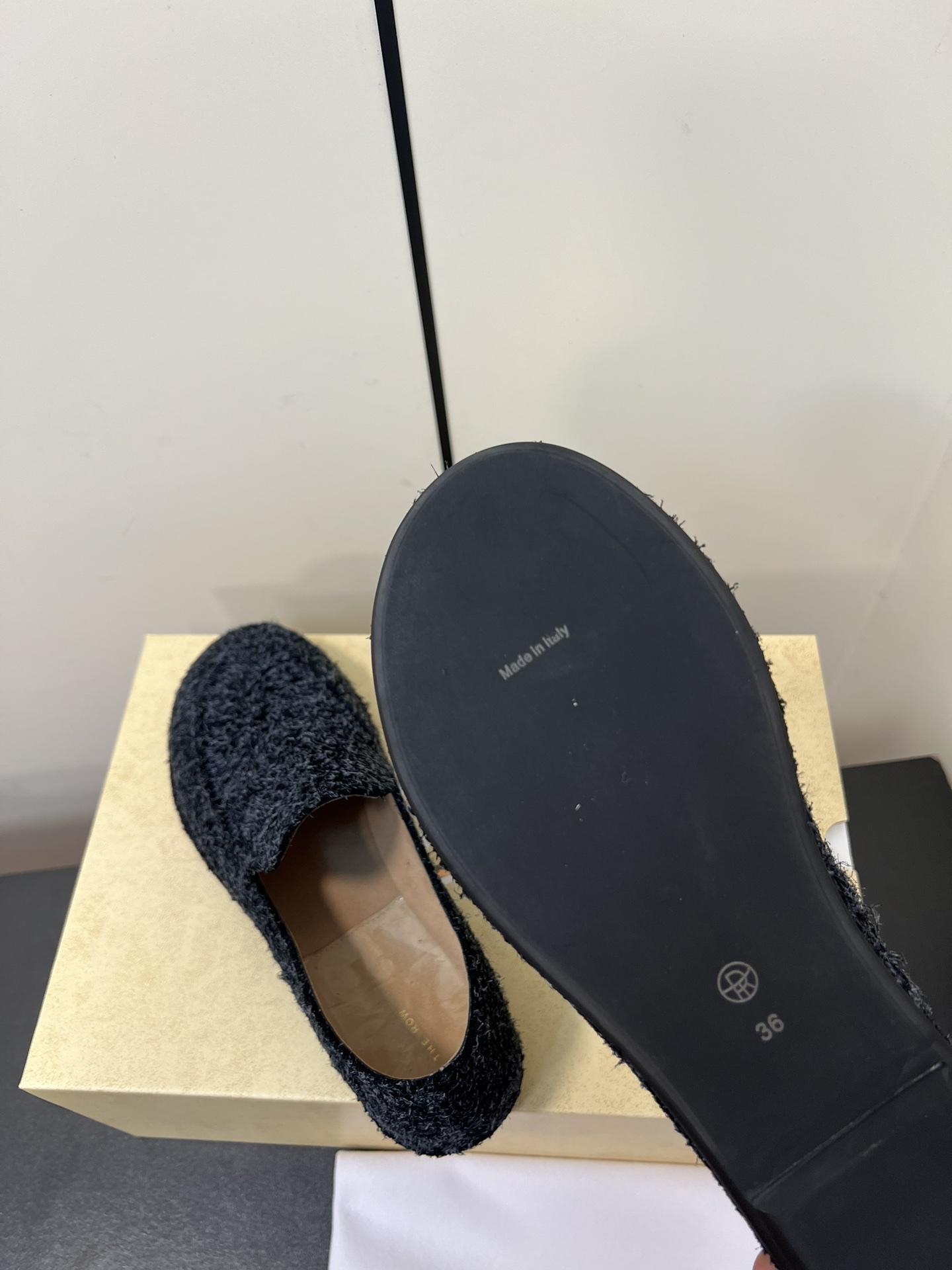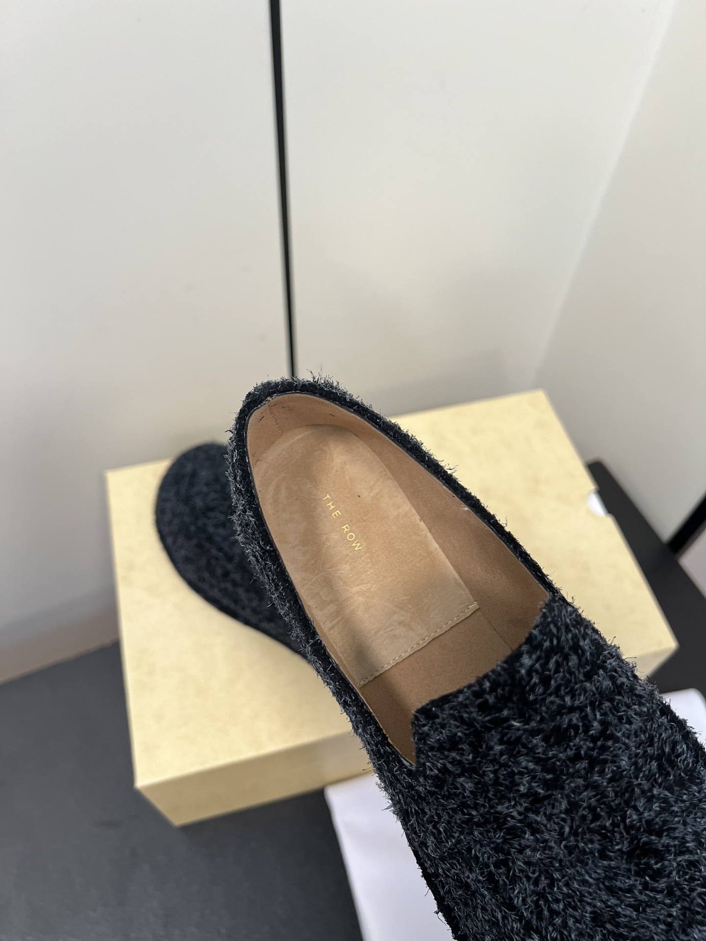 这款鞋子是AAAAA 1:1 质量 (非常棒). 使用了和原版一模一样的材料. 商标部分也保持了和The Row一样. 图片拍摄是实物鞋子拍摄, 您所收到的实物保证和我们图片一模一样.