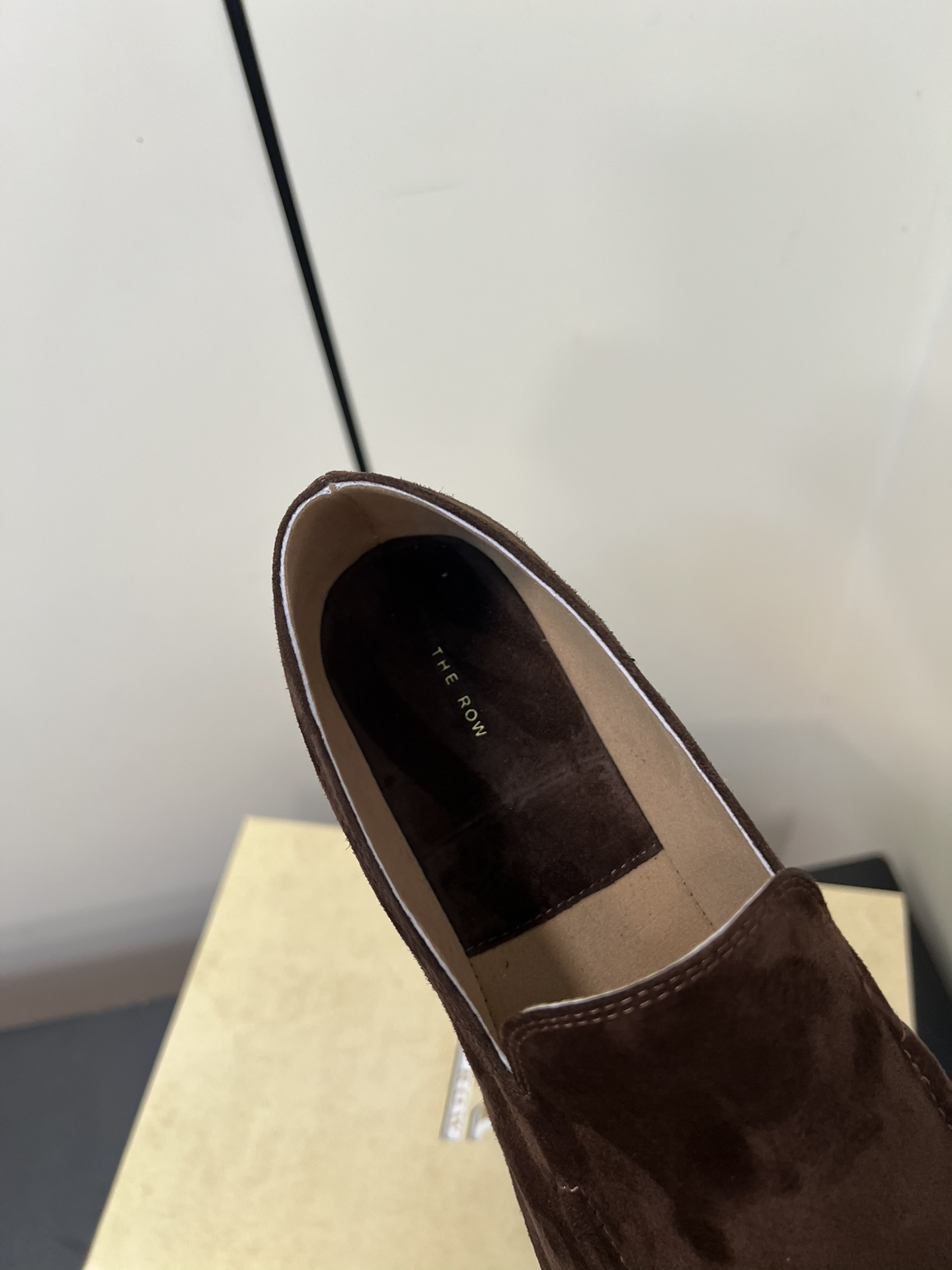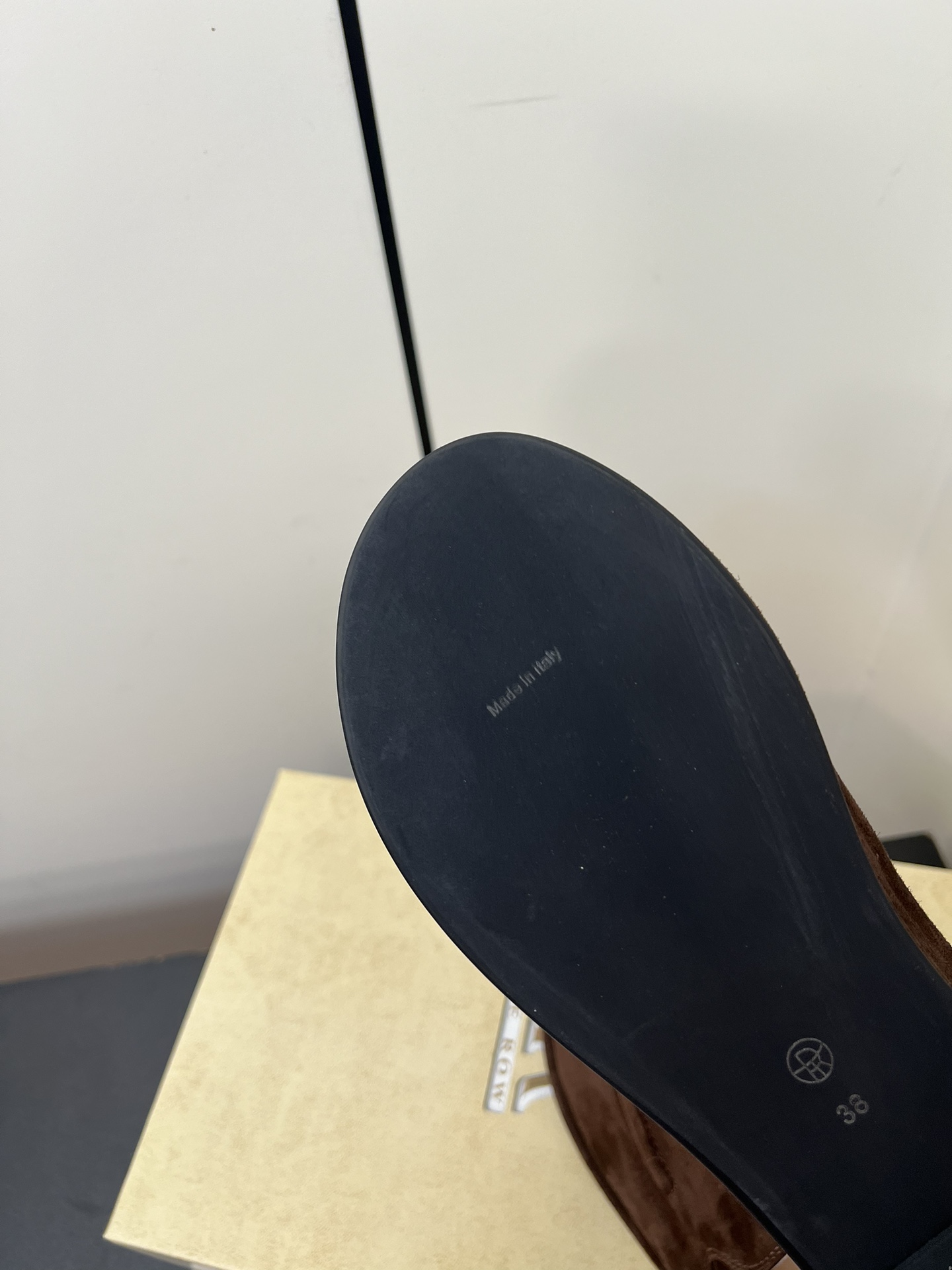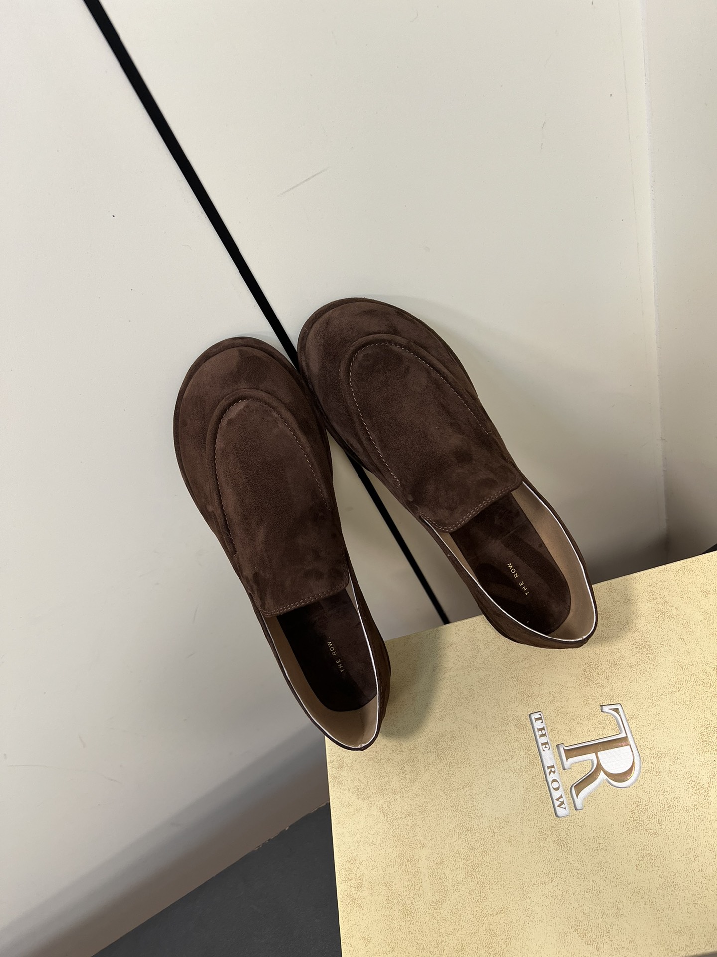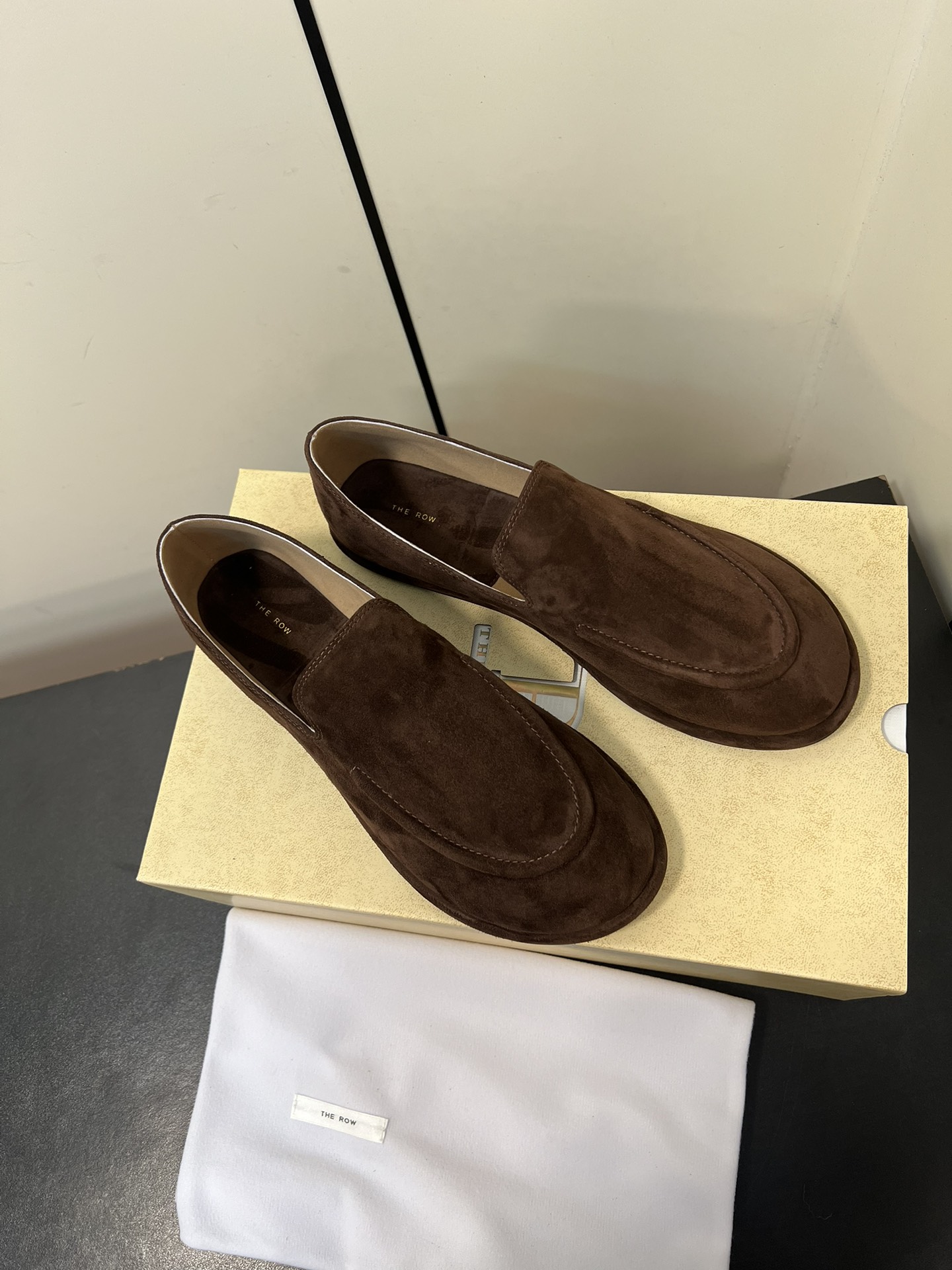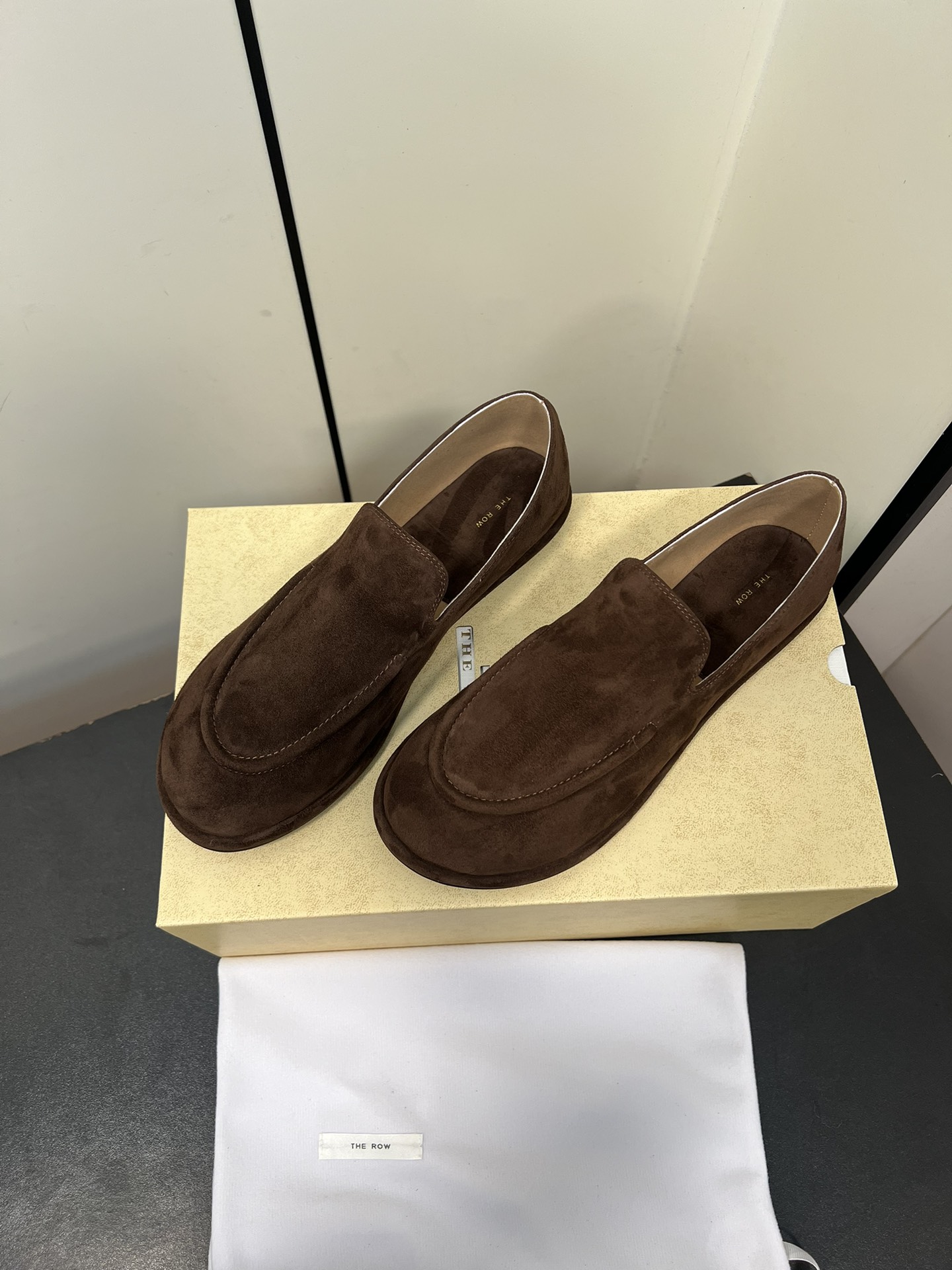 这款鞋子是AAAAA 1:1 质量 (非常棒). 使用了和原版一模一样的材料. 商标部分也保持了和The Row一样. 图片拍摄是实物鞋子拍摄, 您所收到的实物保证和我们图片一模一样.