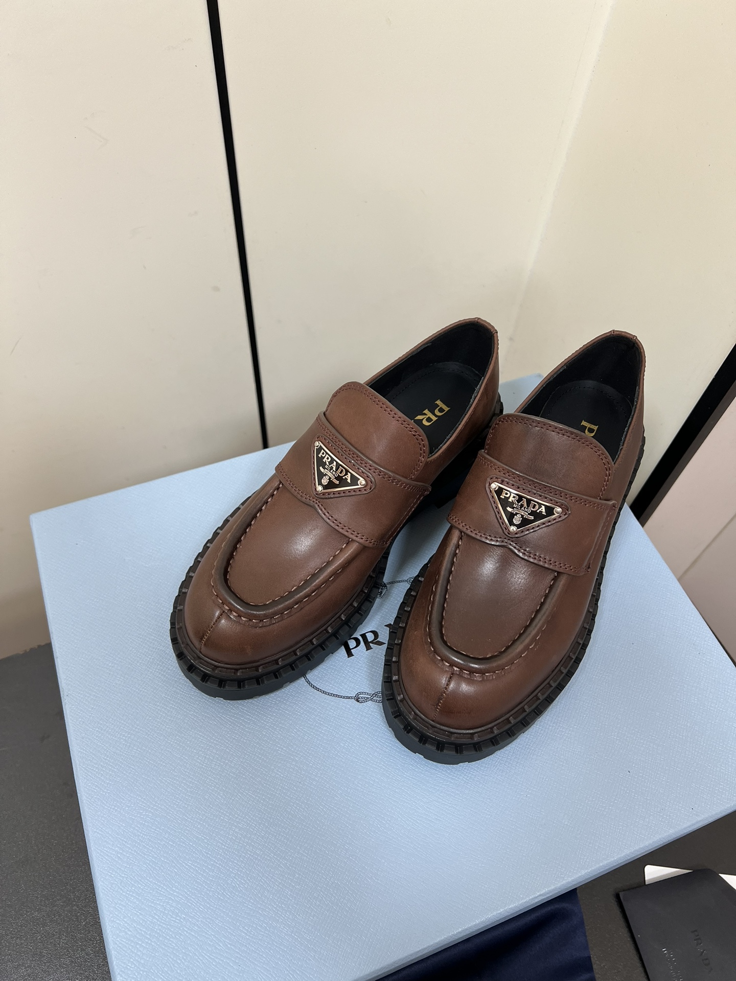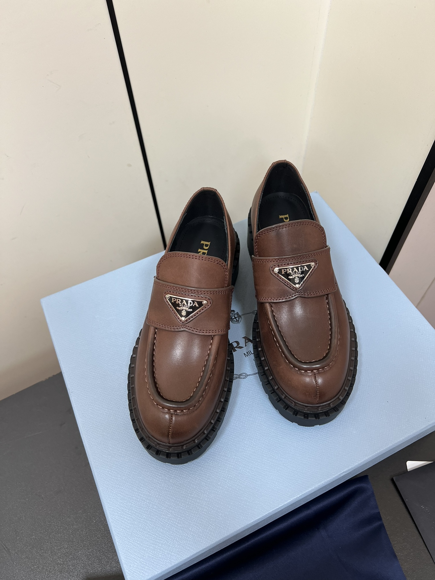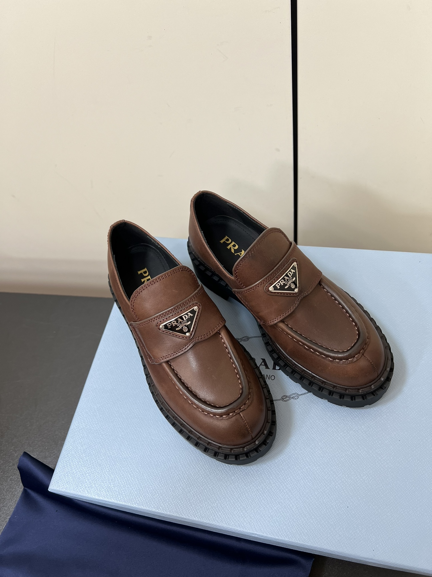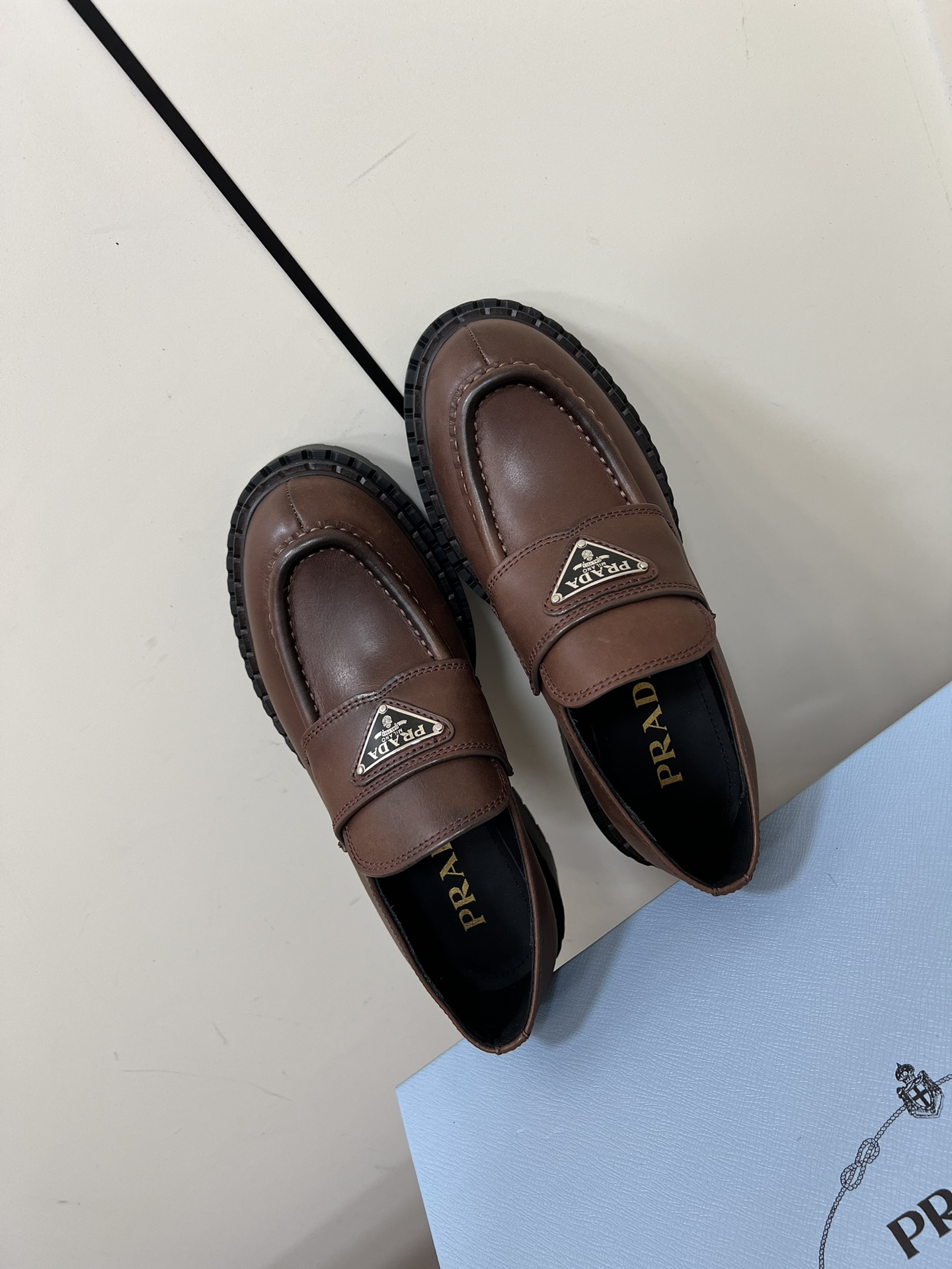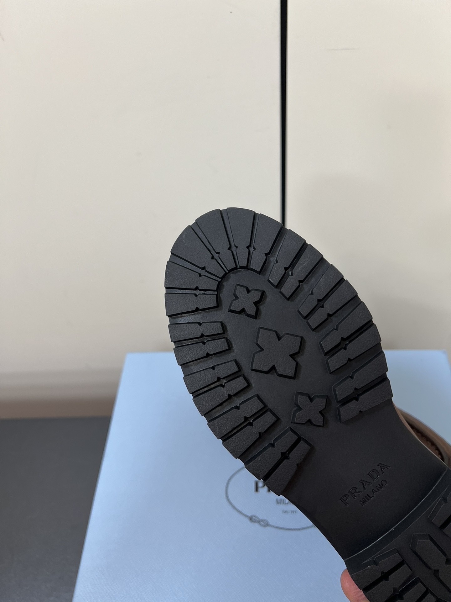 这款鞋子是AAAAA 1:1 质量 (非常棒). 使用了和原版一模一样的材料. 商标部分也保持了和普拉达/Prada一样. 图片拍摄是实物鞋子拍摄, 您所收到的实物保证和我们图片一模一样.