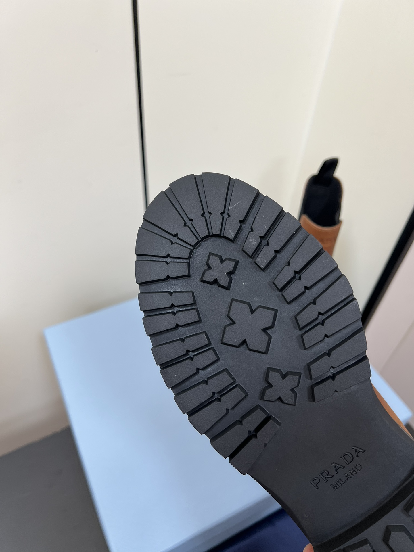 这款鞋子是AAAAA 1:1 质量 (非常棒). 使用了和原版一模一样的材料. 商标部分也保持了和普拉达/Prada一样. 图片拍摄是实物鞋子拍摄, 您所收到的实物保证和我们图片一模一样.