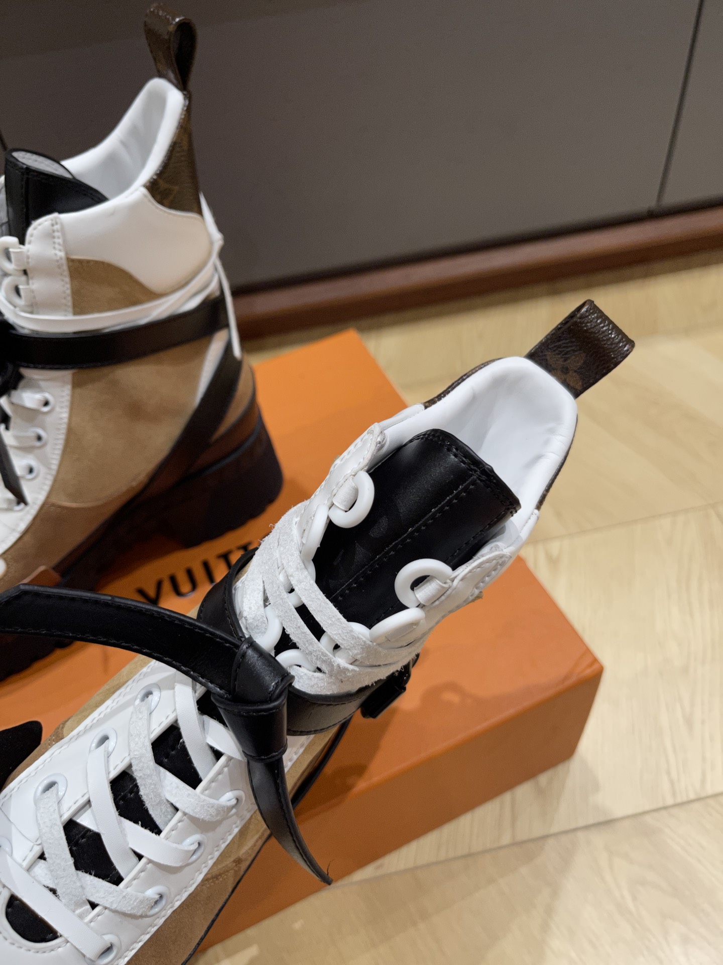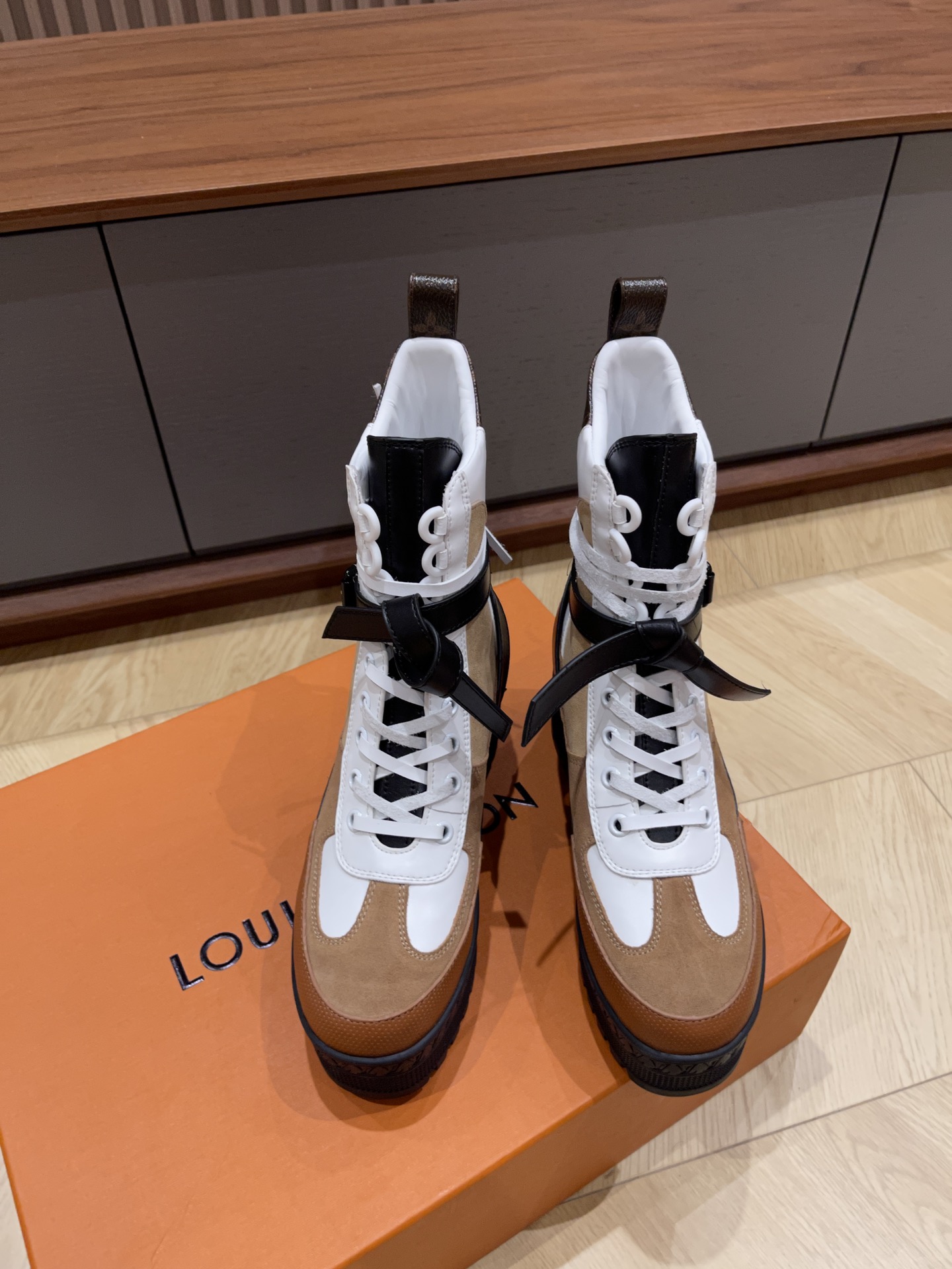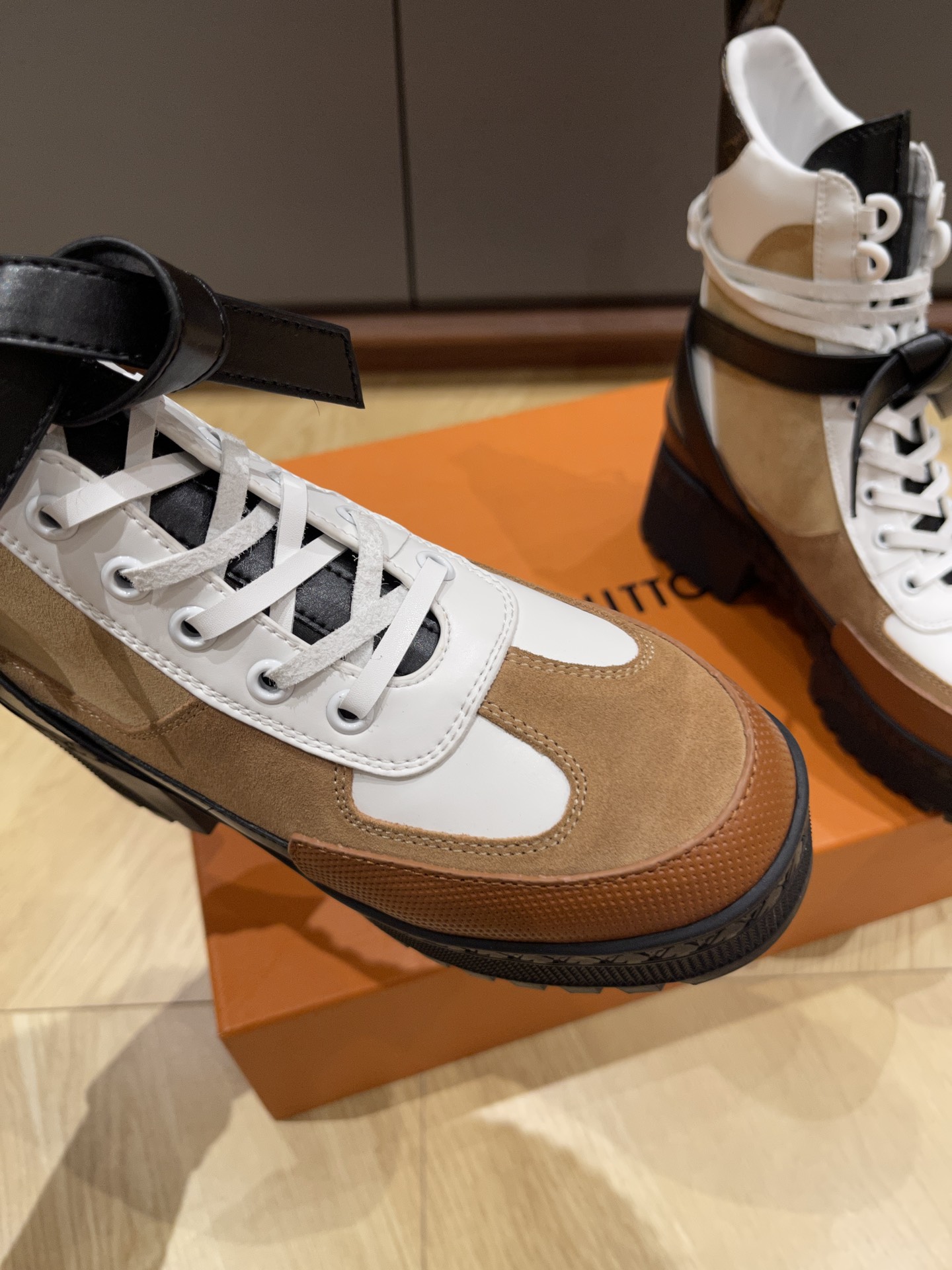 这款鞋子是AAAAA 1:1 质量 (非常棒). 使用了和原版一模一样的材料. 商标部分也保持了和路易威登/Louis Vuitton一样. 图片拍摄是实物鞋子拍摄, 您所收到的实物保证和我们图片一模一样.