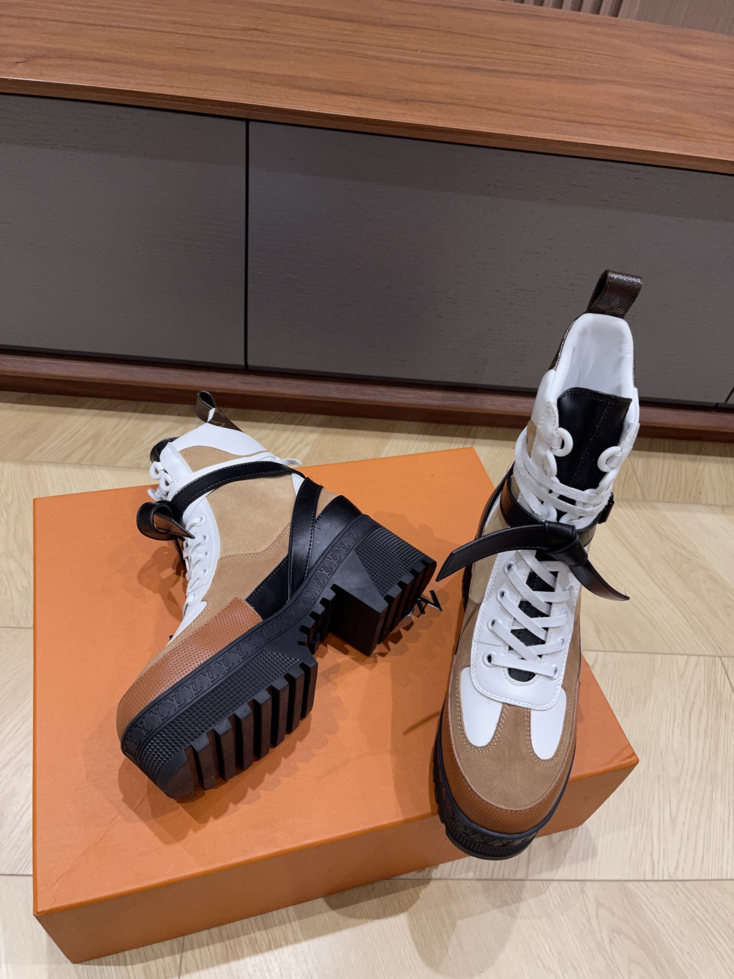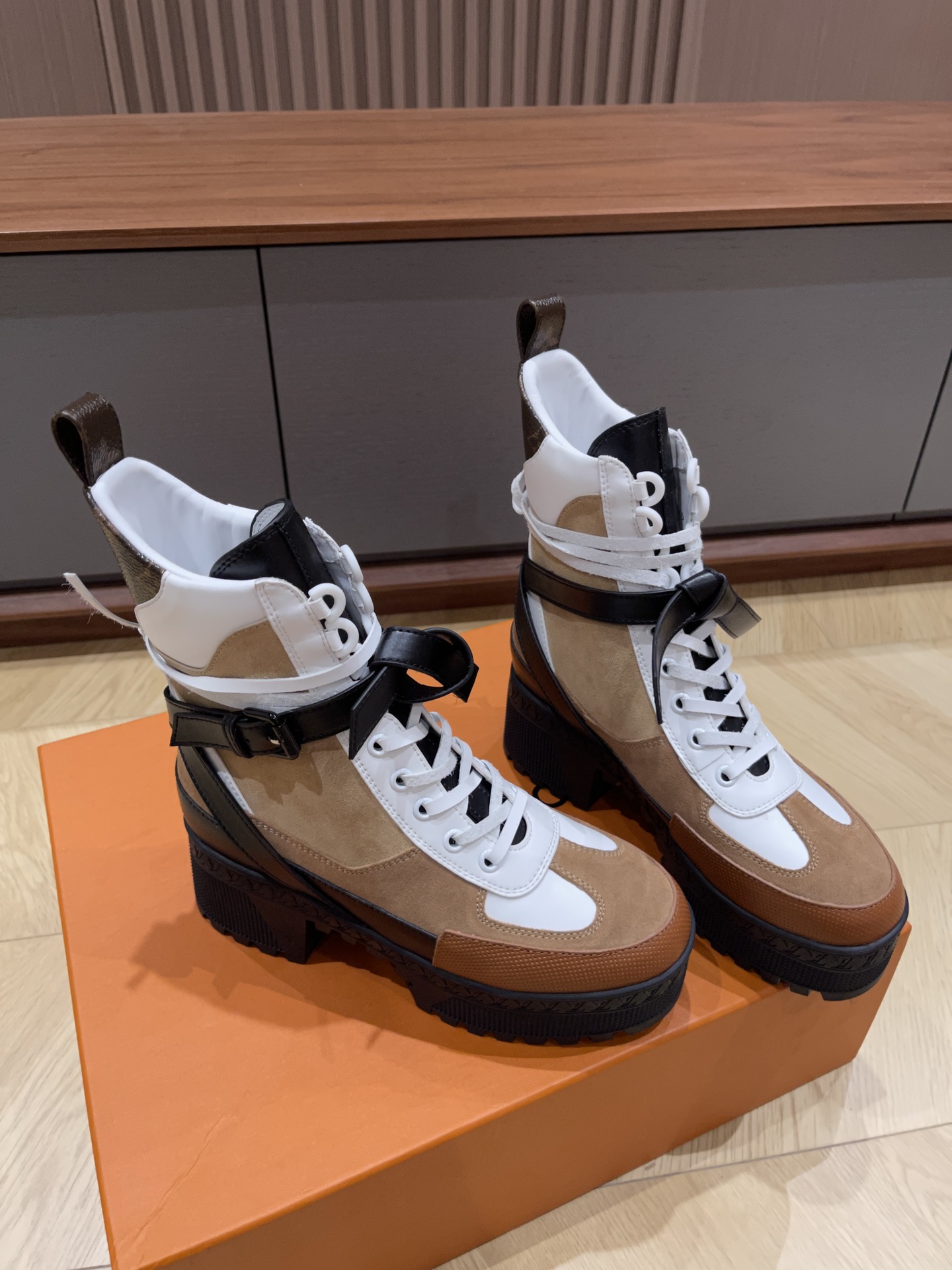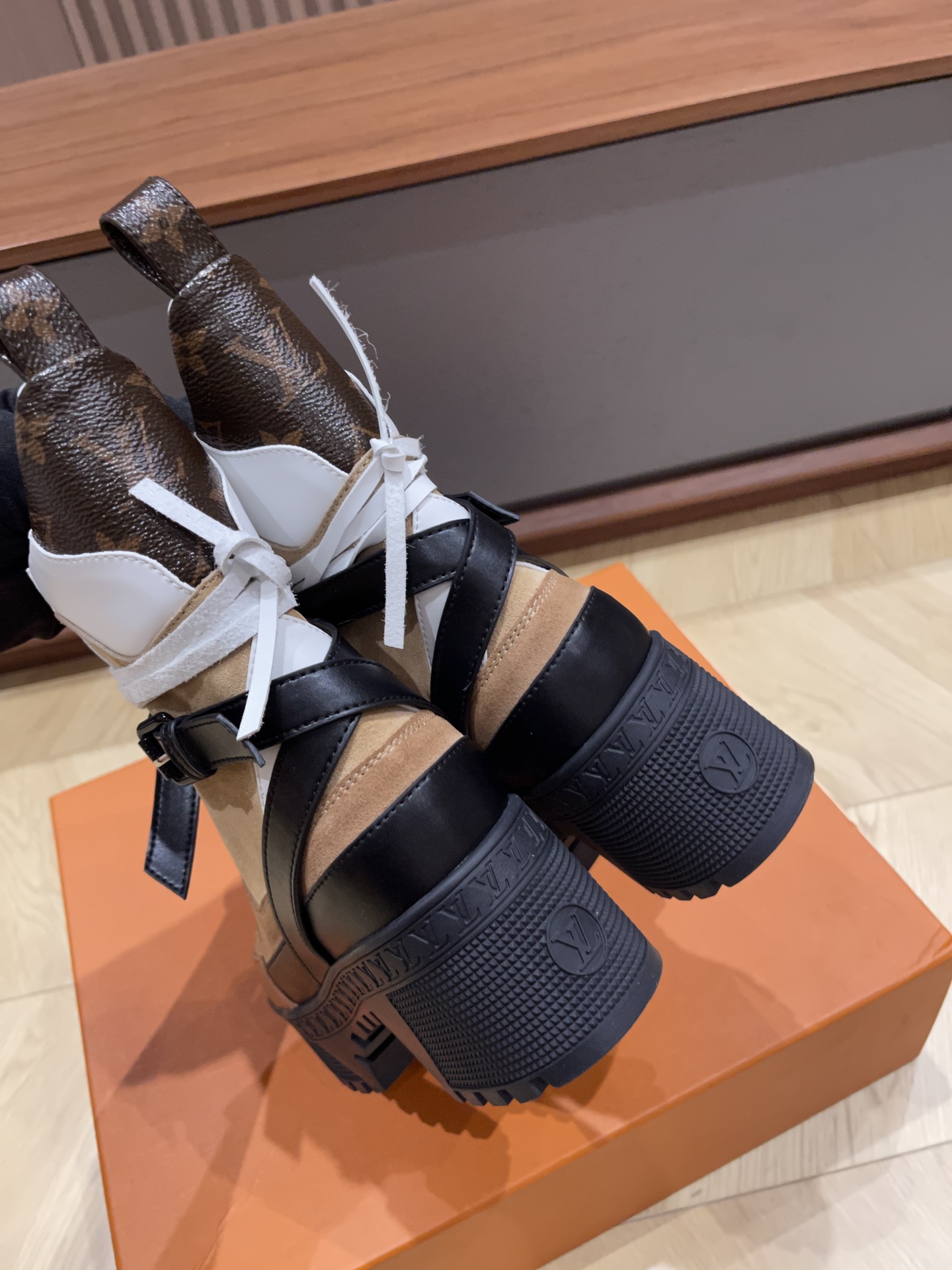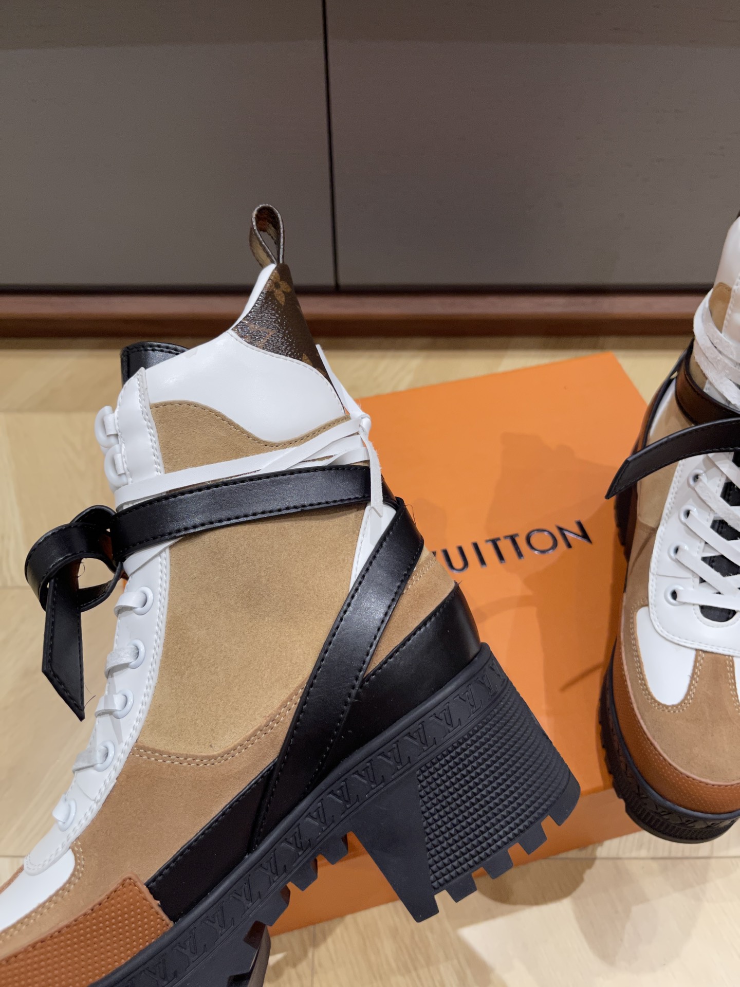 这款鞋子是AAAAA 1:1 质量 (非常棒). 使用了和原版一模一样的材料. 商标部分也保持了和路易威登/Louis Vuitton一样. 图片拍摄是实物鞋子拍摄, 您所收到的实物保证和我们图片一模一样.