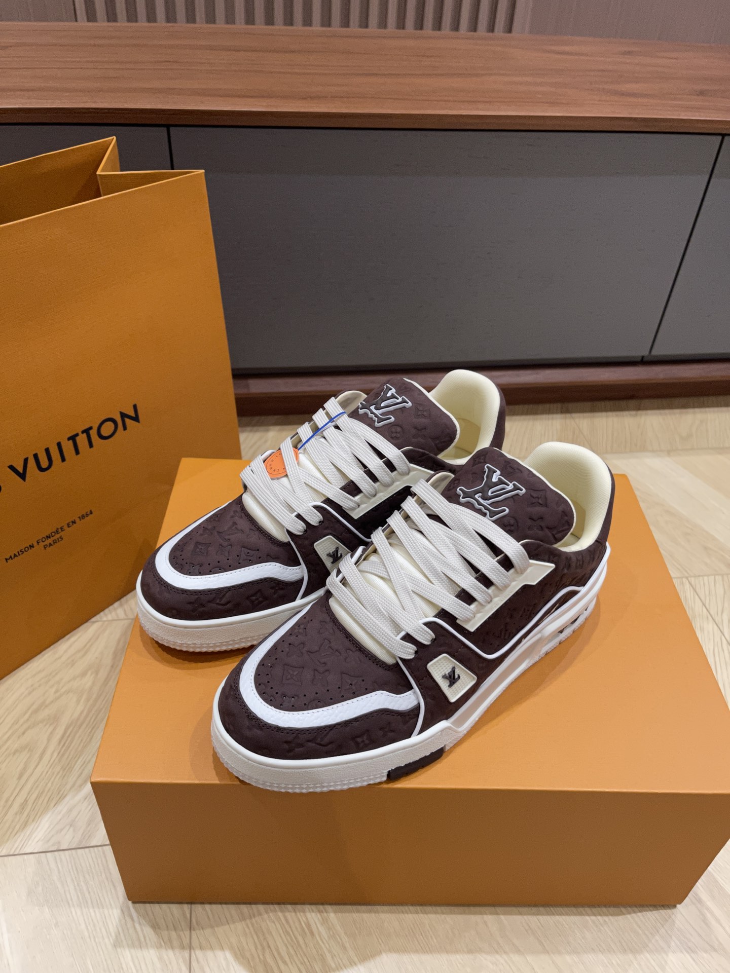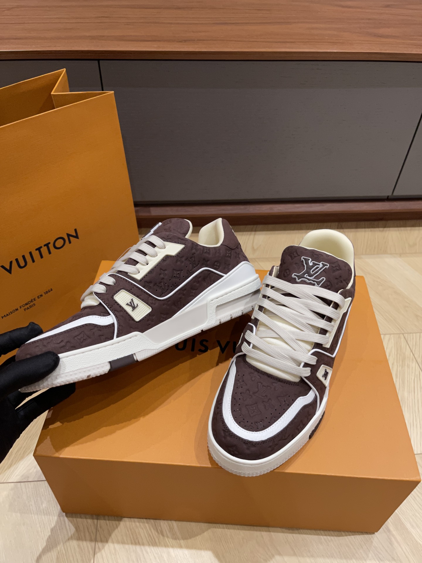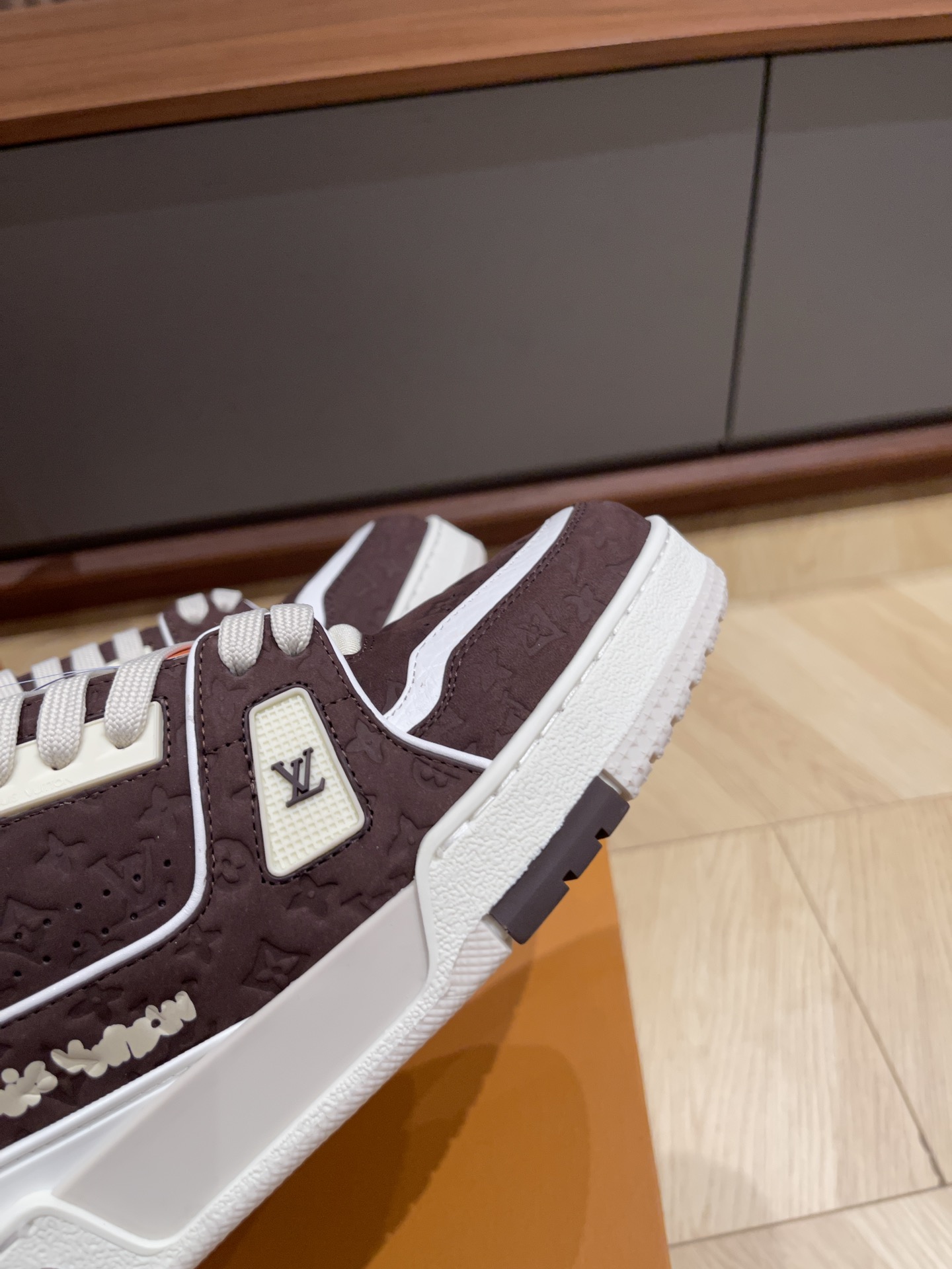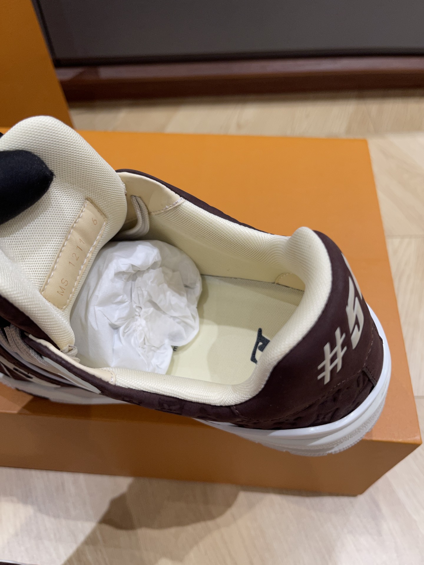这款鞋子是AAAAA 1:1 质量 (非常棒). 使用了和原版一模一样的材料. 商标部分也保持了和路易威登/Louis Vuitton一样. 图片拍摄是实物鞋子拍摄, 您所收到的实物保证和我们图片一模一样.