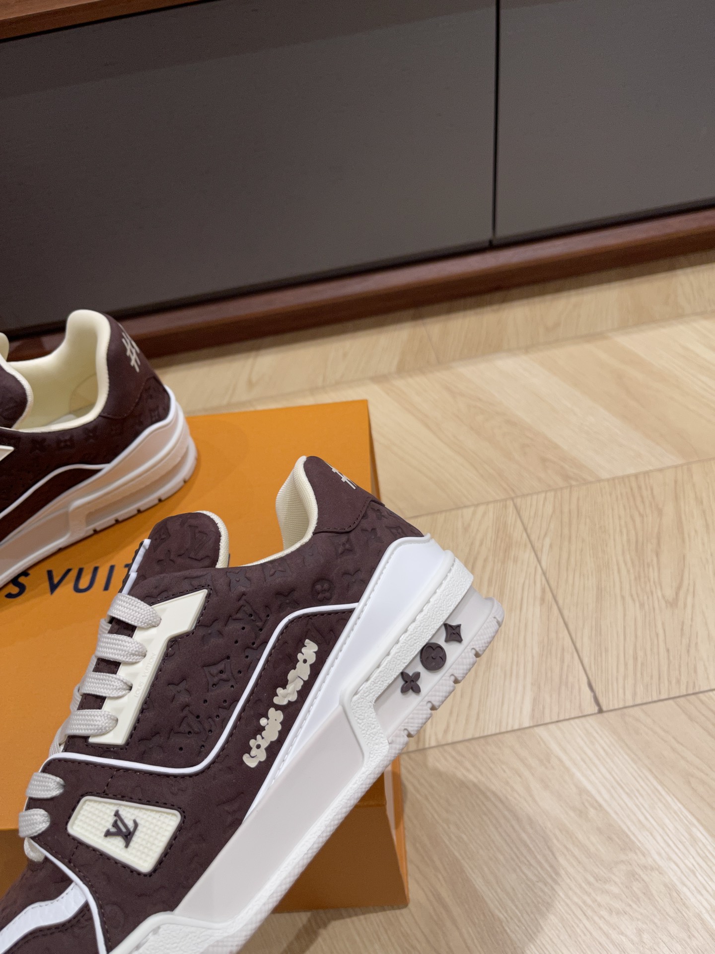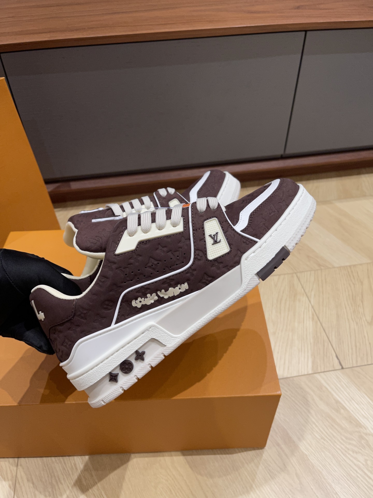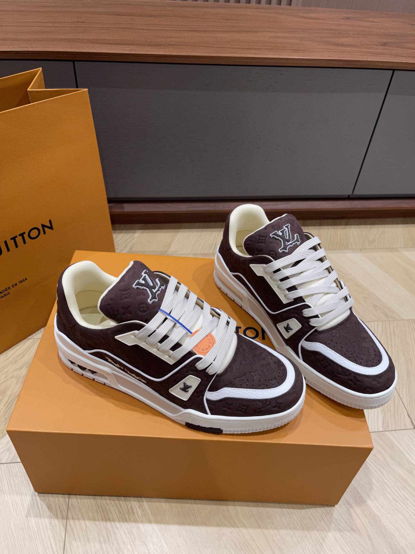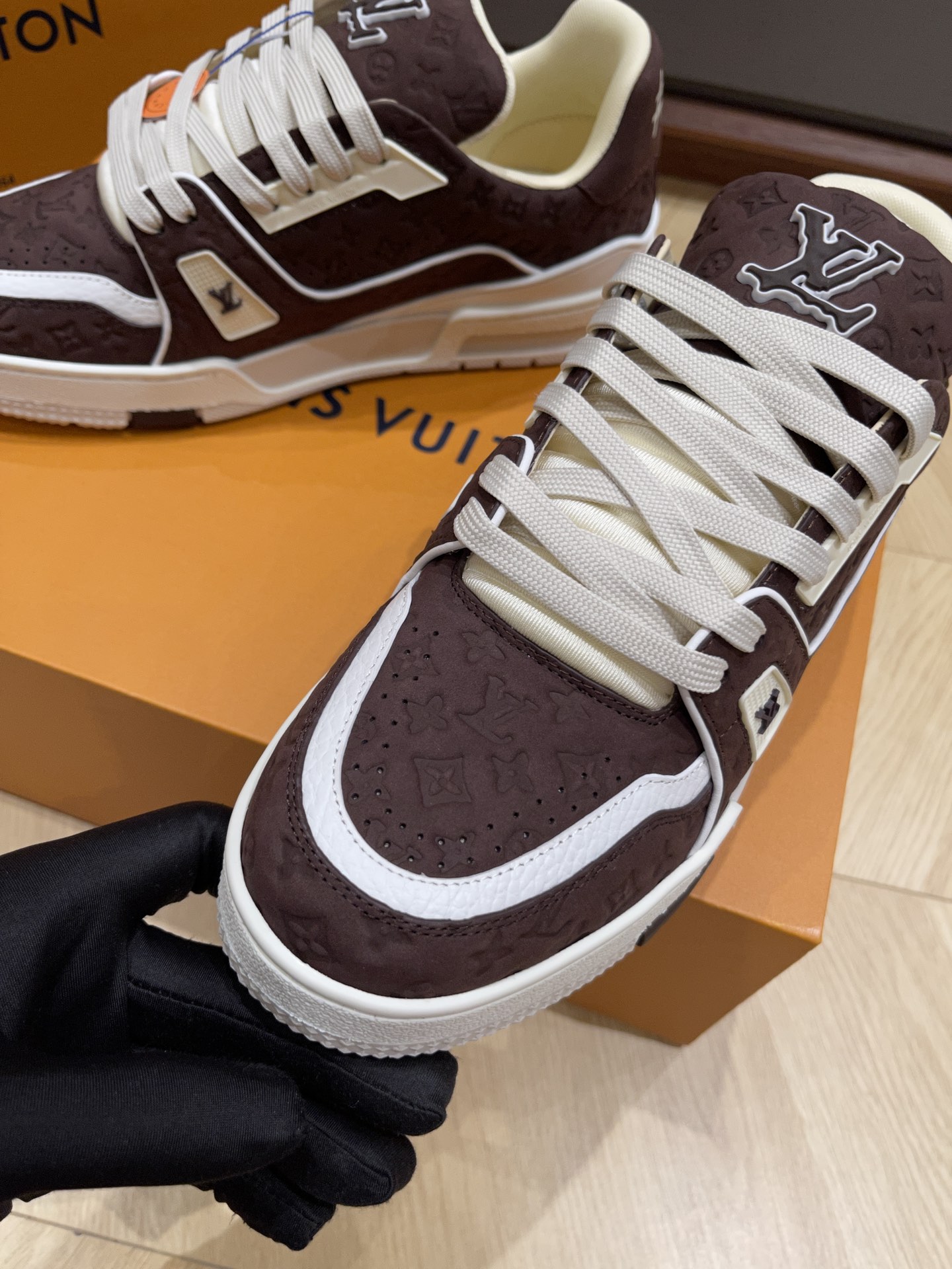 这款鞋子是AAAAA 1:1 质量 (非常棒). 使用了和原版一模一样的材料. 商标部分也保持了和路易威登/Louis Vuitton一样. 图片拍摄是实物鞋子拍摄, 您所收到的实物保证和我们图片一模一样.