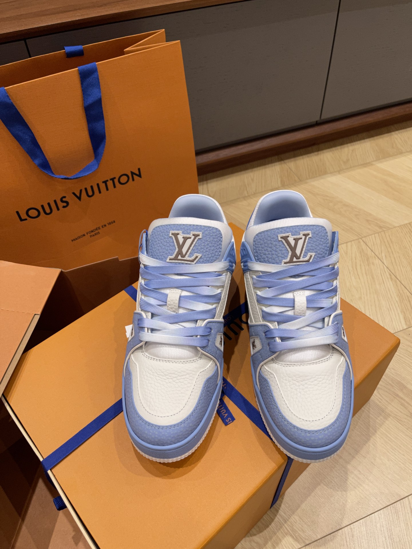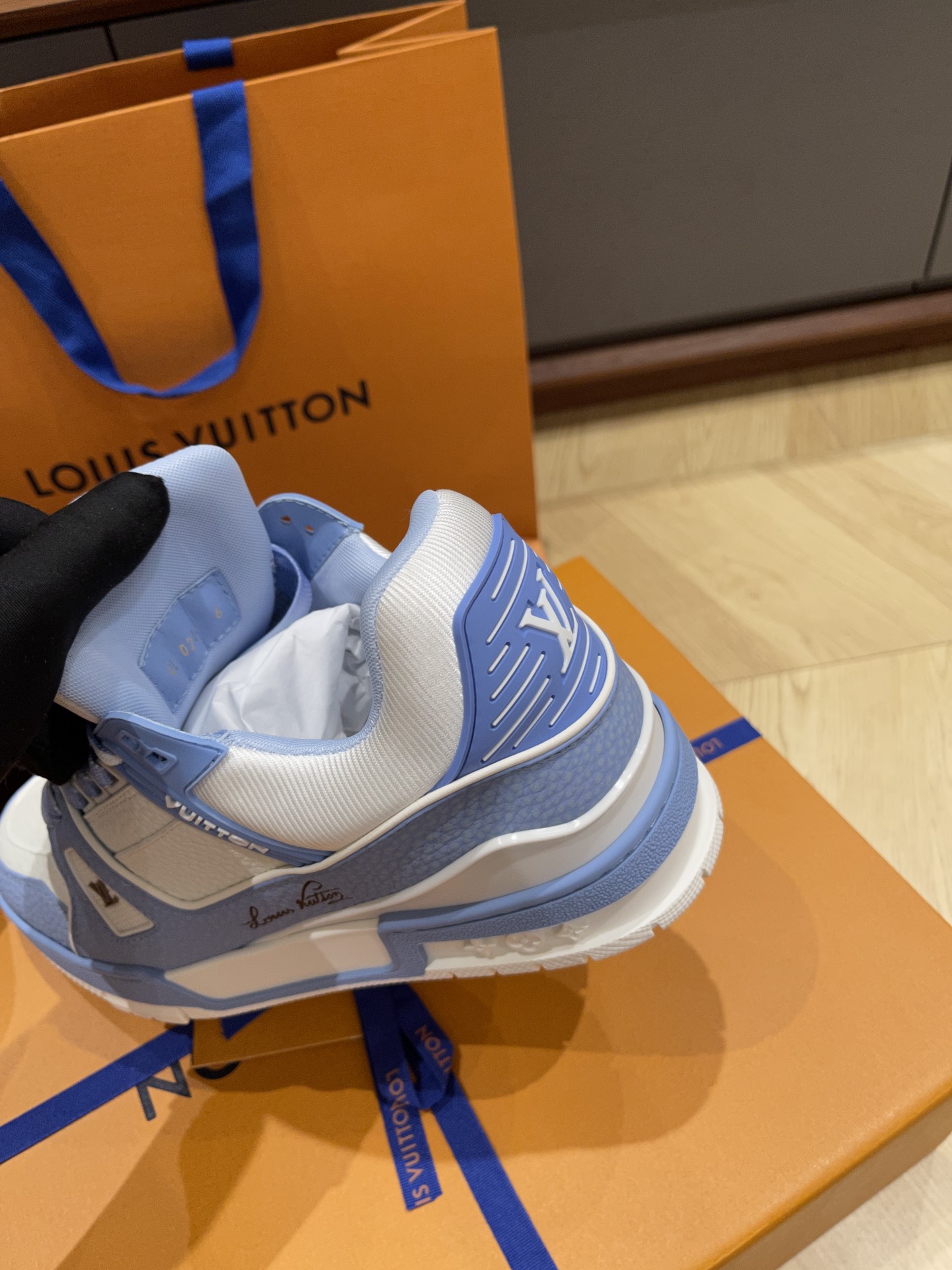这款鞋子是AAAAA 1:1 质量 (非常棒). 使用了和原版一模一样的材料. 商标部分也保持了和路易威登/Louis Vuitton一样. 图片拍摄是实物鞋子拍摄, 您所收到的实物保证和我们图片一模一样.