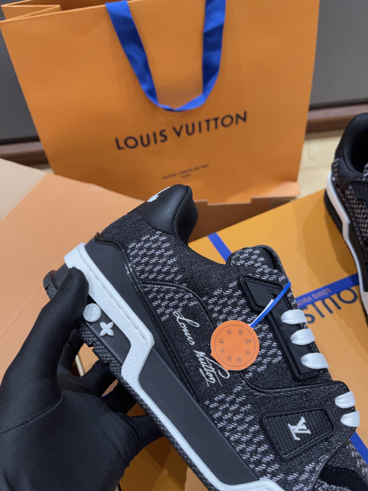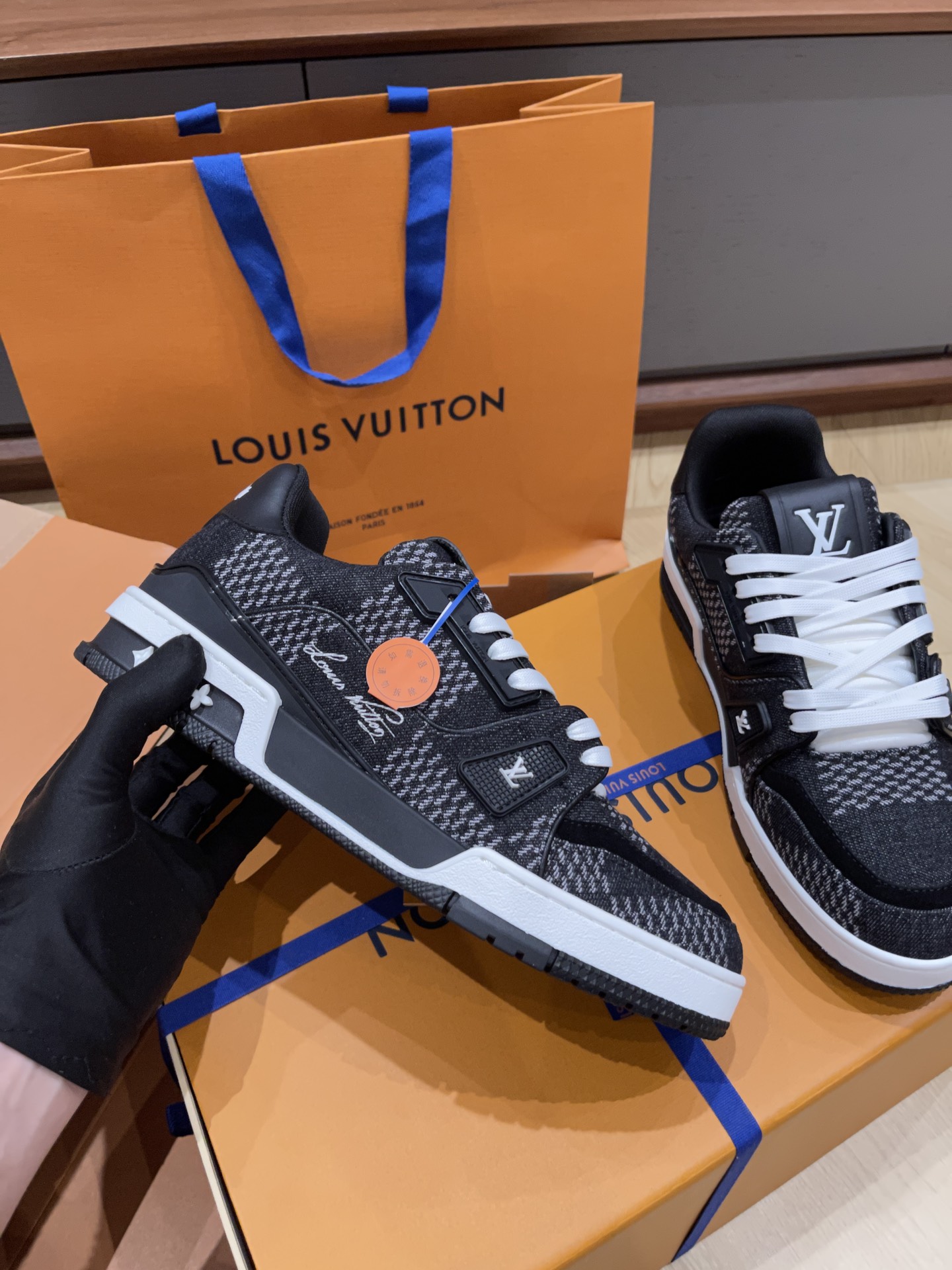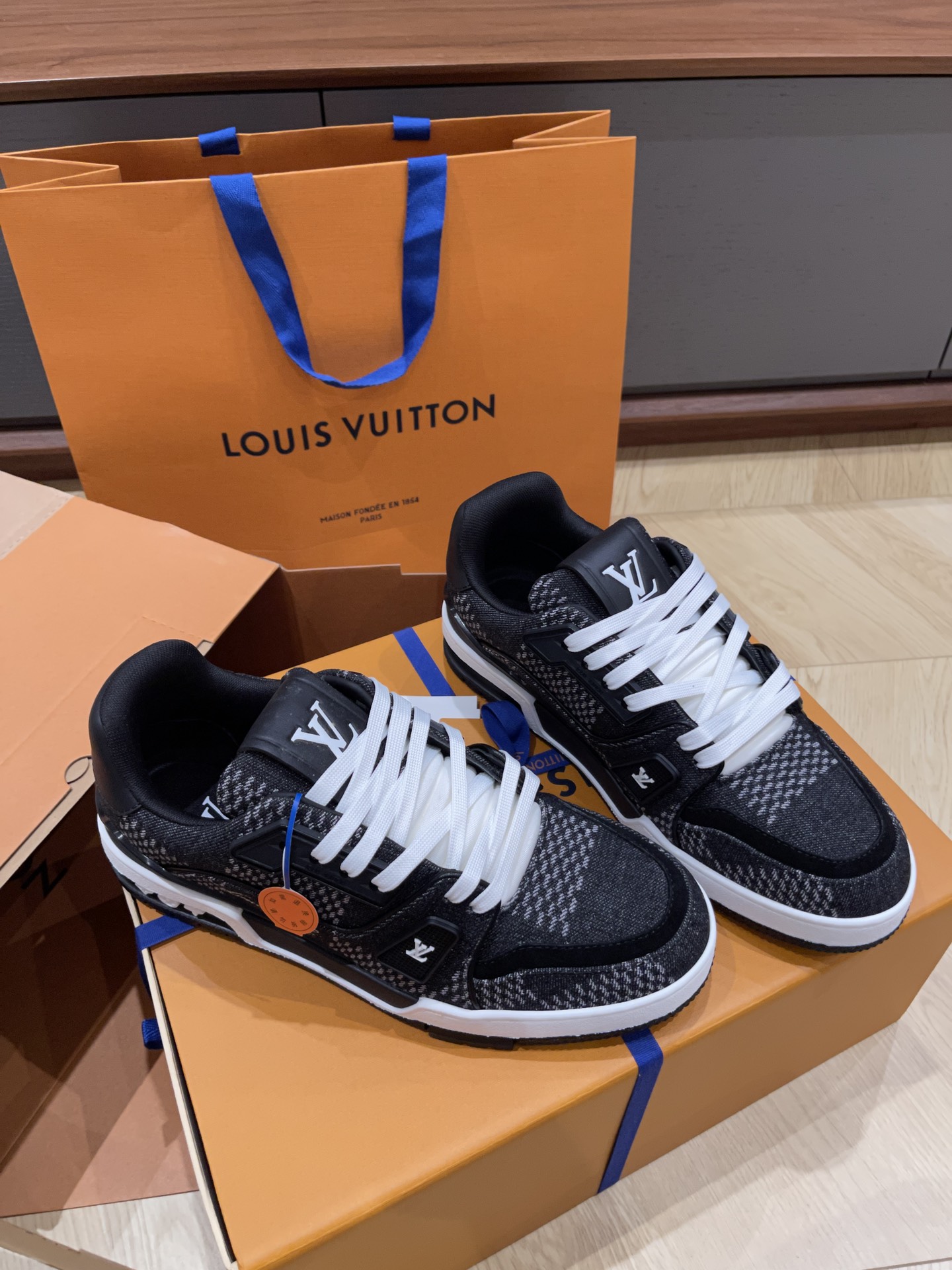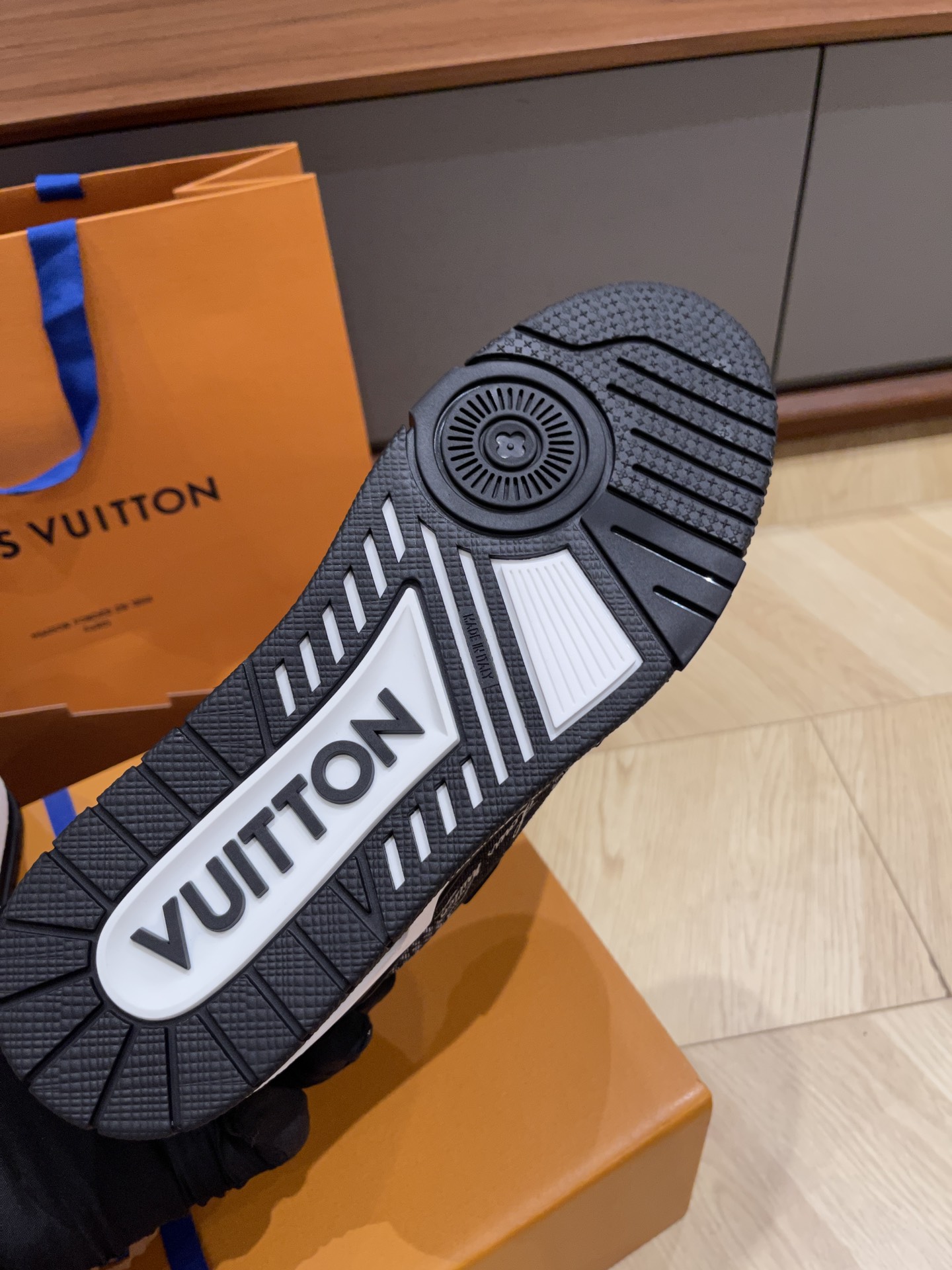 这款鞋子是AAAAA 1:1 质量 (非常棒). 使用了和原版一模一样的材料. 商标部分也保持了和路易威登/Louis Vuitton一样. 图片拍摄是实物鞋子拍摄, 您所收到的实物保证和我们图片一模一样.