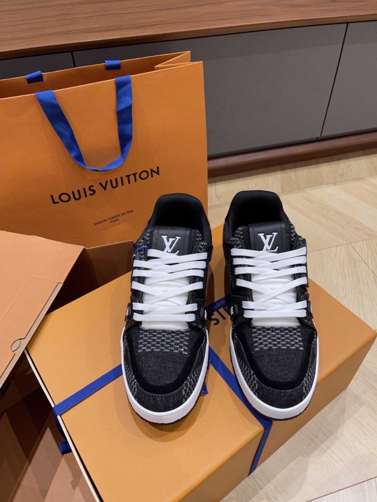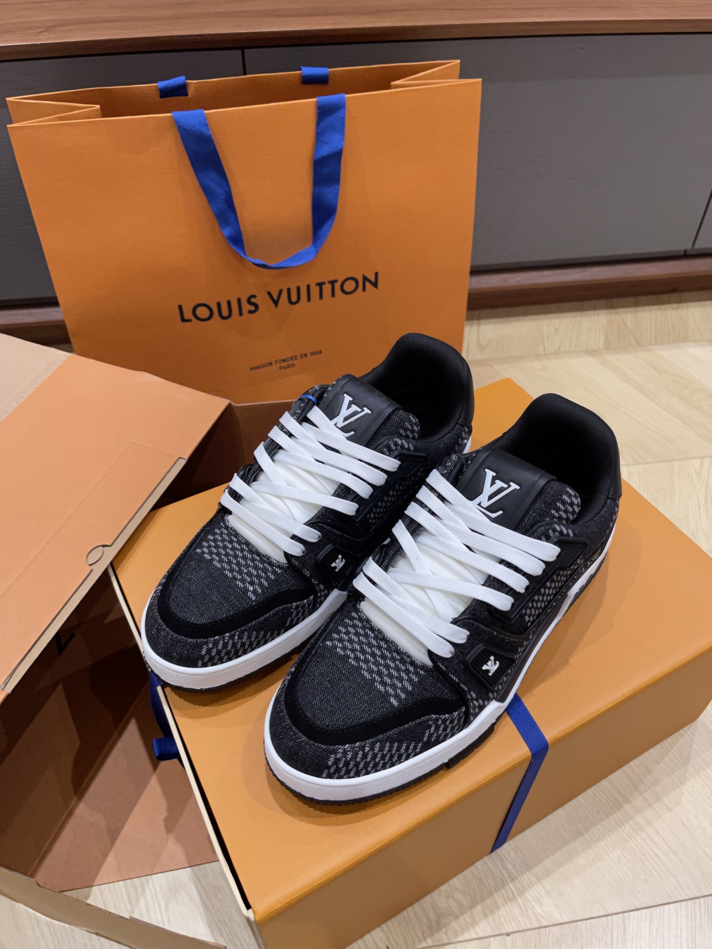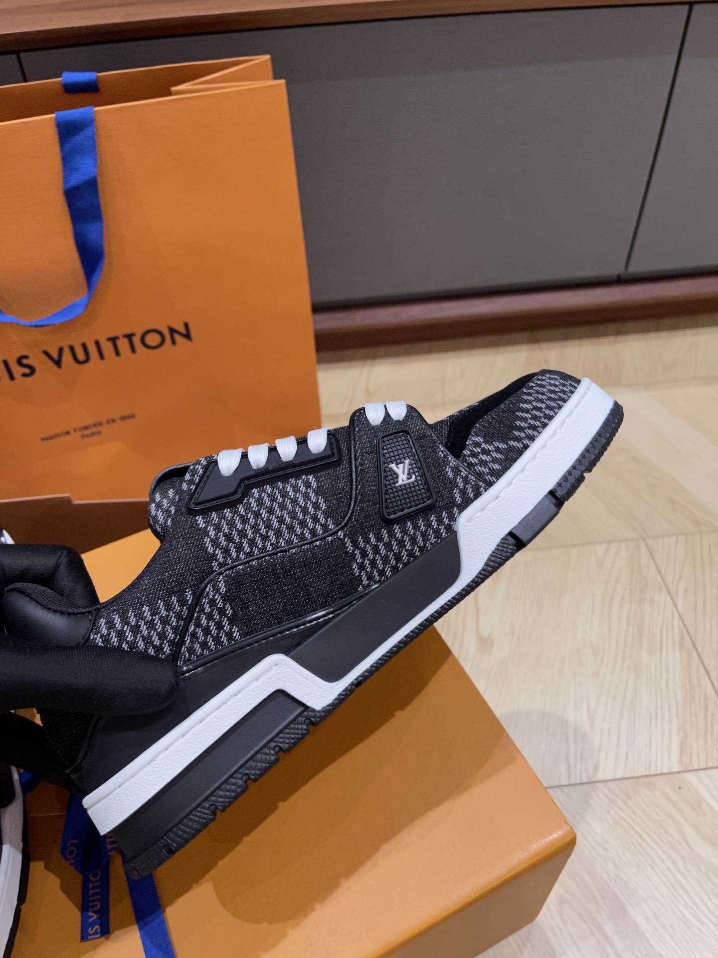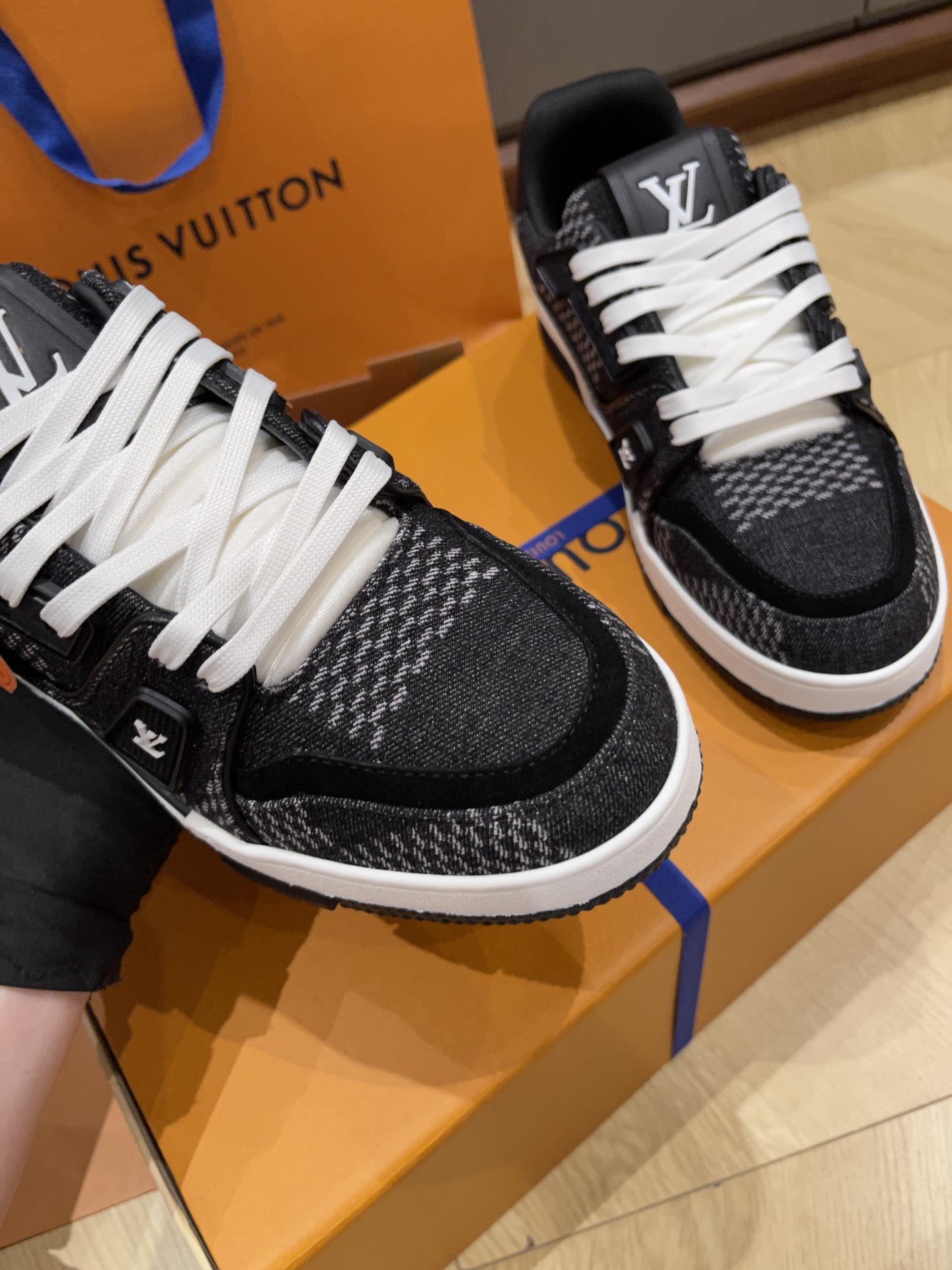 这款鞋子是AAAAA 1:1 质量 (非常棒). 使用了和原版一模一样的材料. 商标部分也保持了和路易威登/Louis Vuitton一样. 图片拍摄是实物鞋子拍摄, 您所收到的实物保证和我们图片一模一样.
