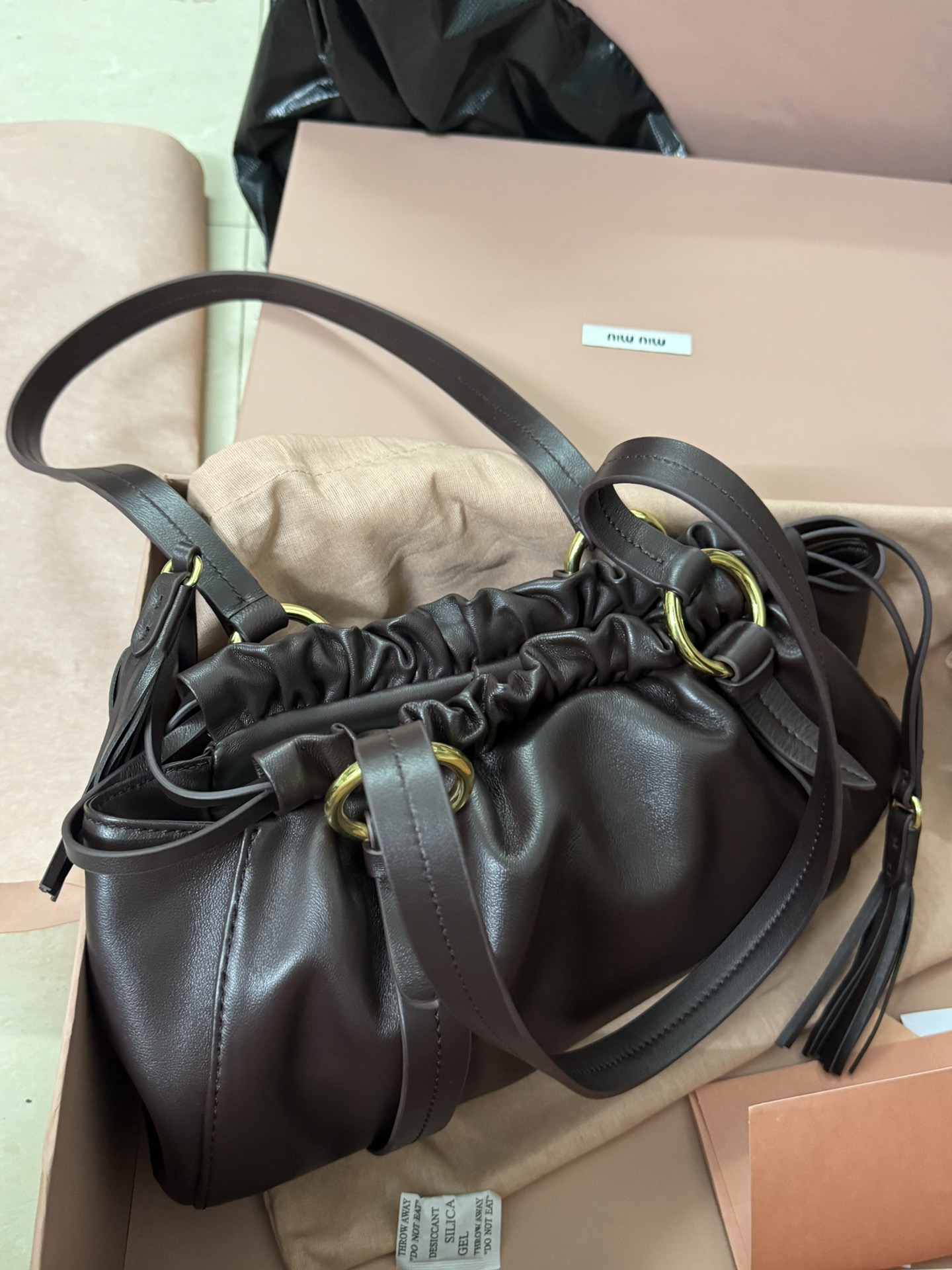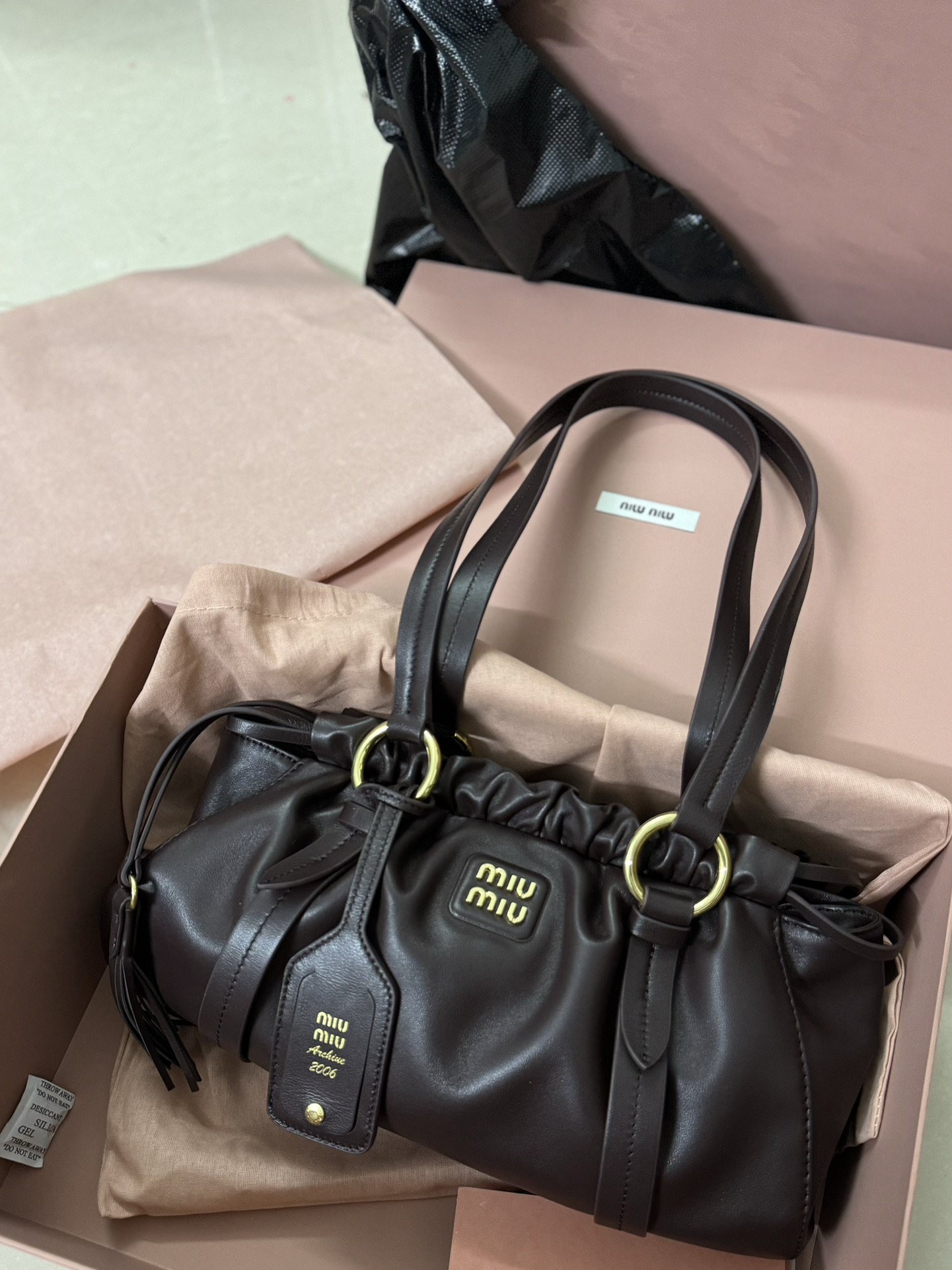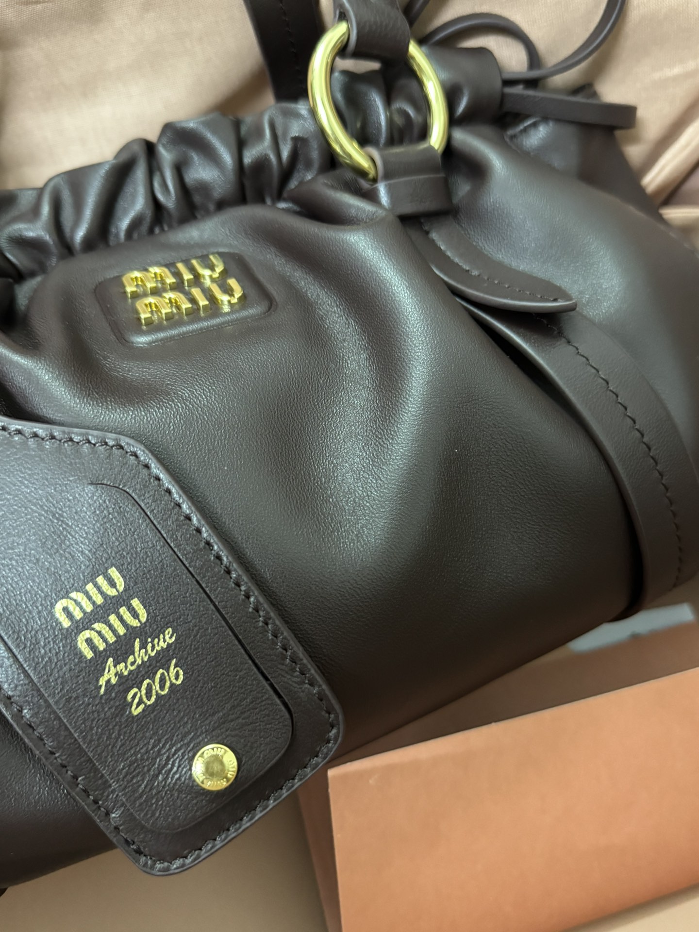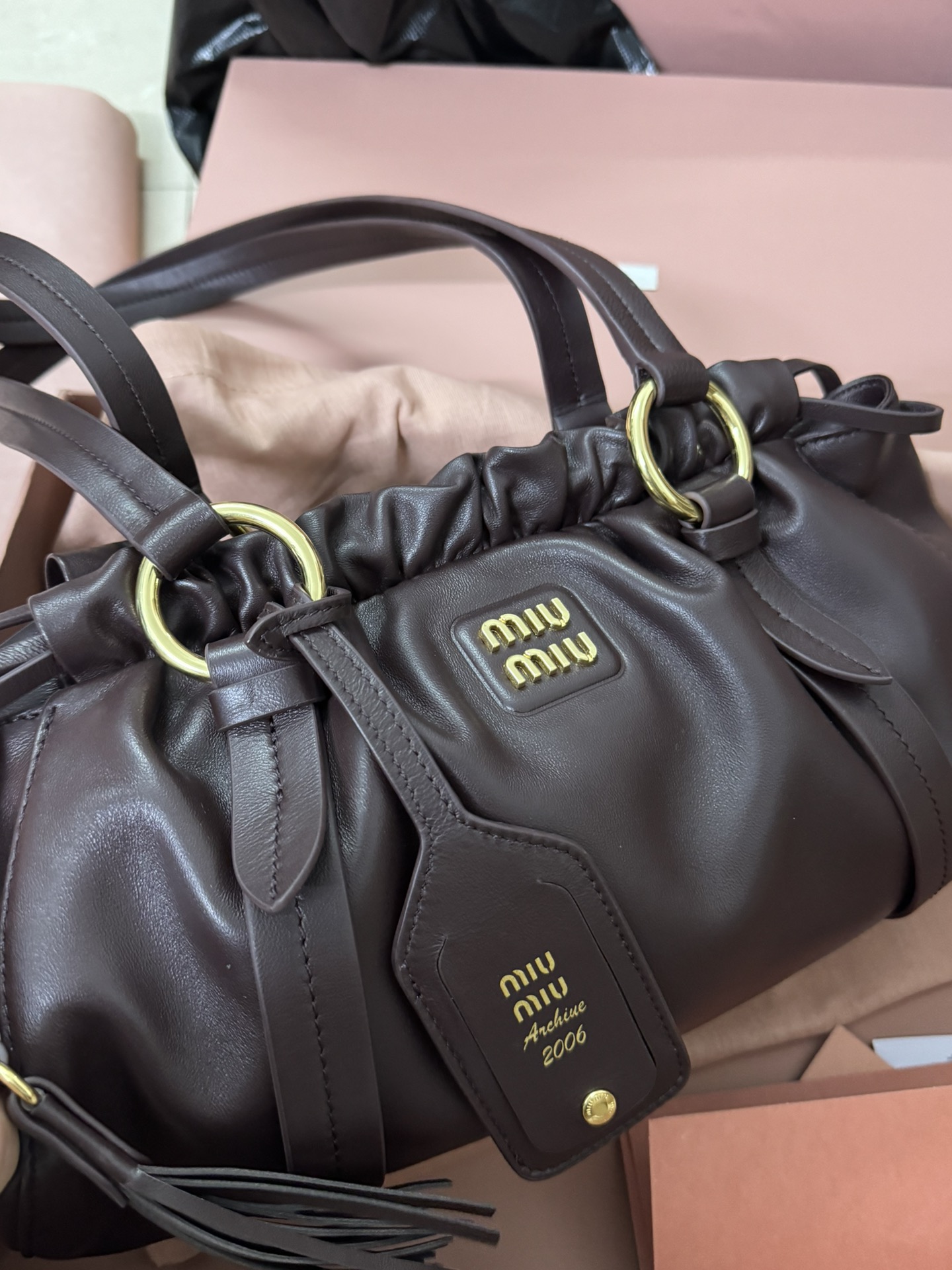这款包包是AAAAA 1:1 质量 (非常棒). 使用了和原版一模一样的材料. 商标部分也保持了和缪缪/Miu Miu一样. 图片拍摄是实物包包拍摄, 您所收到的实物保证和我们图片一模一样.
