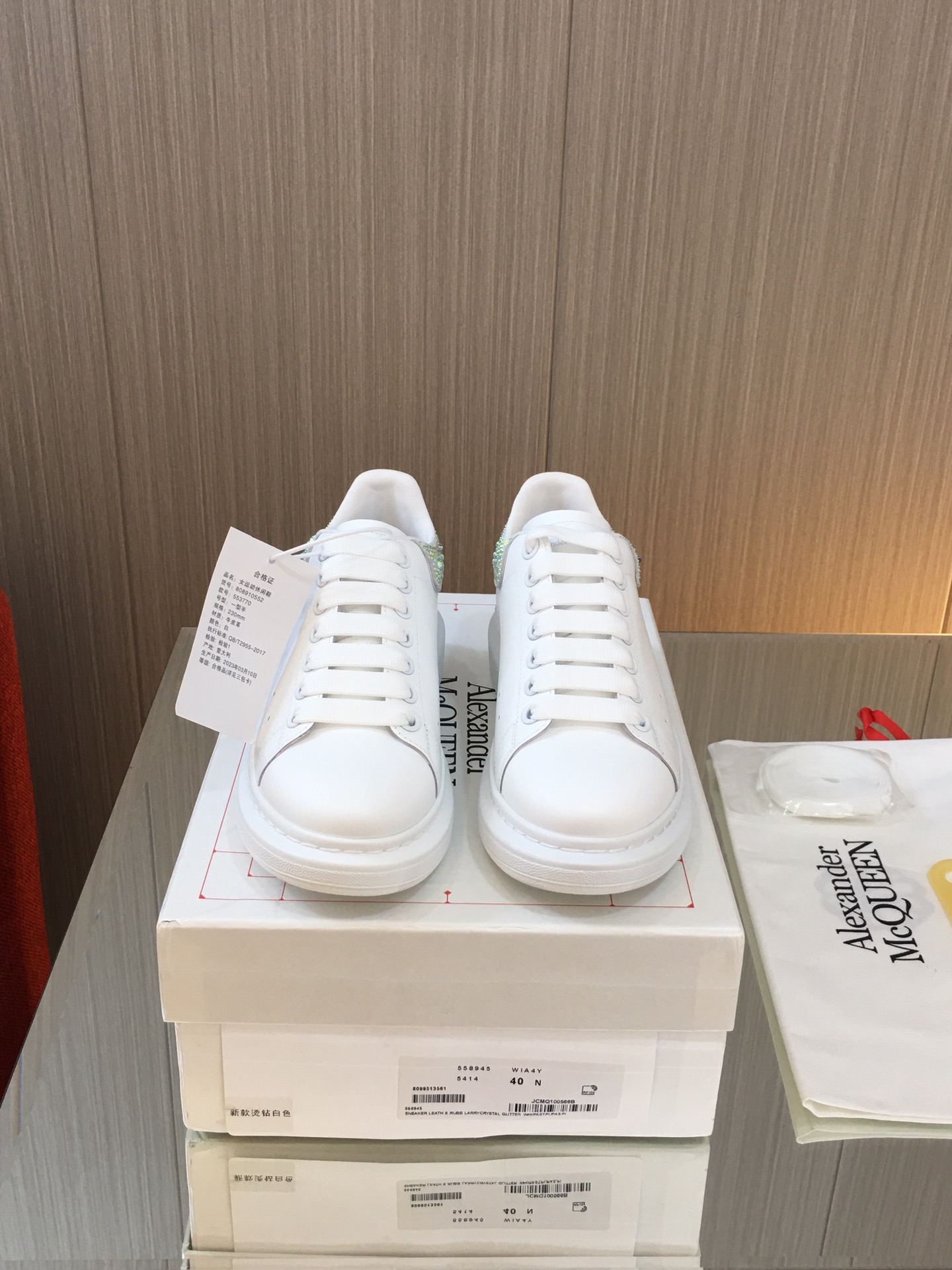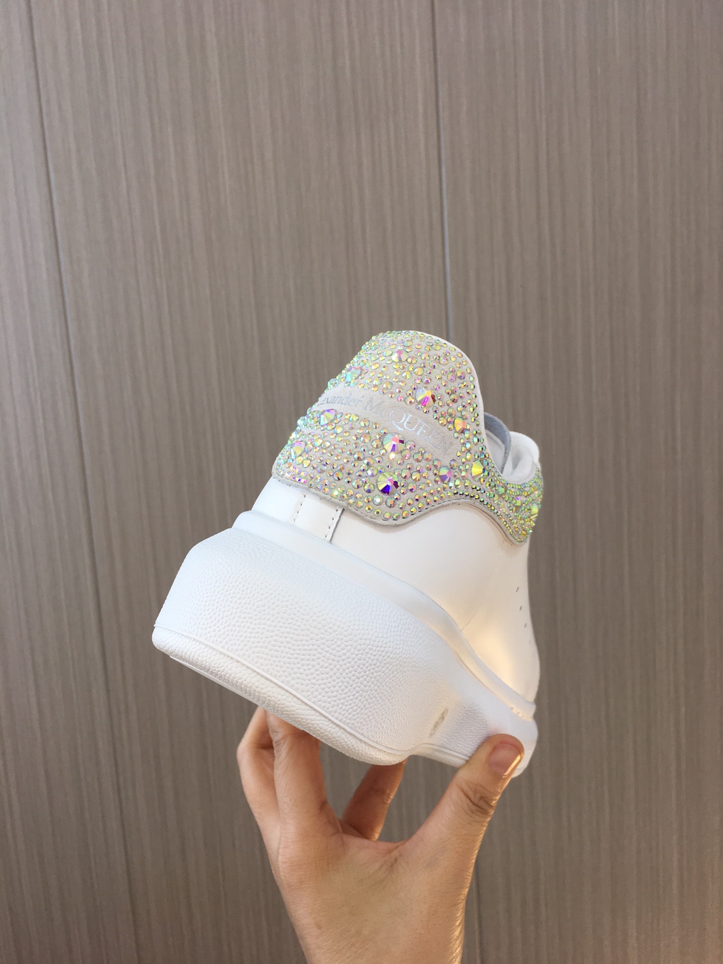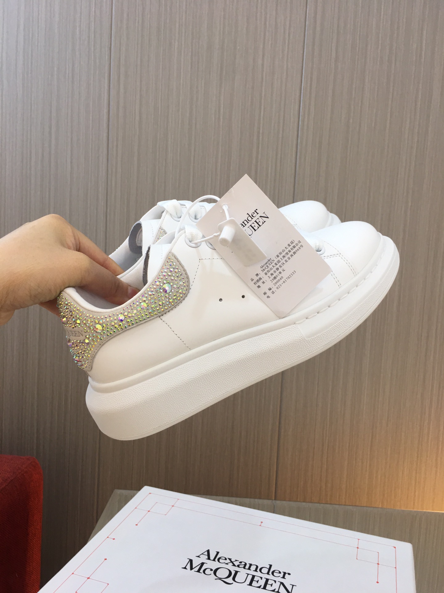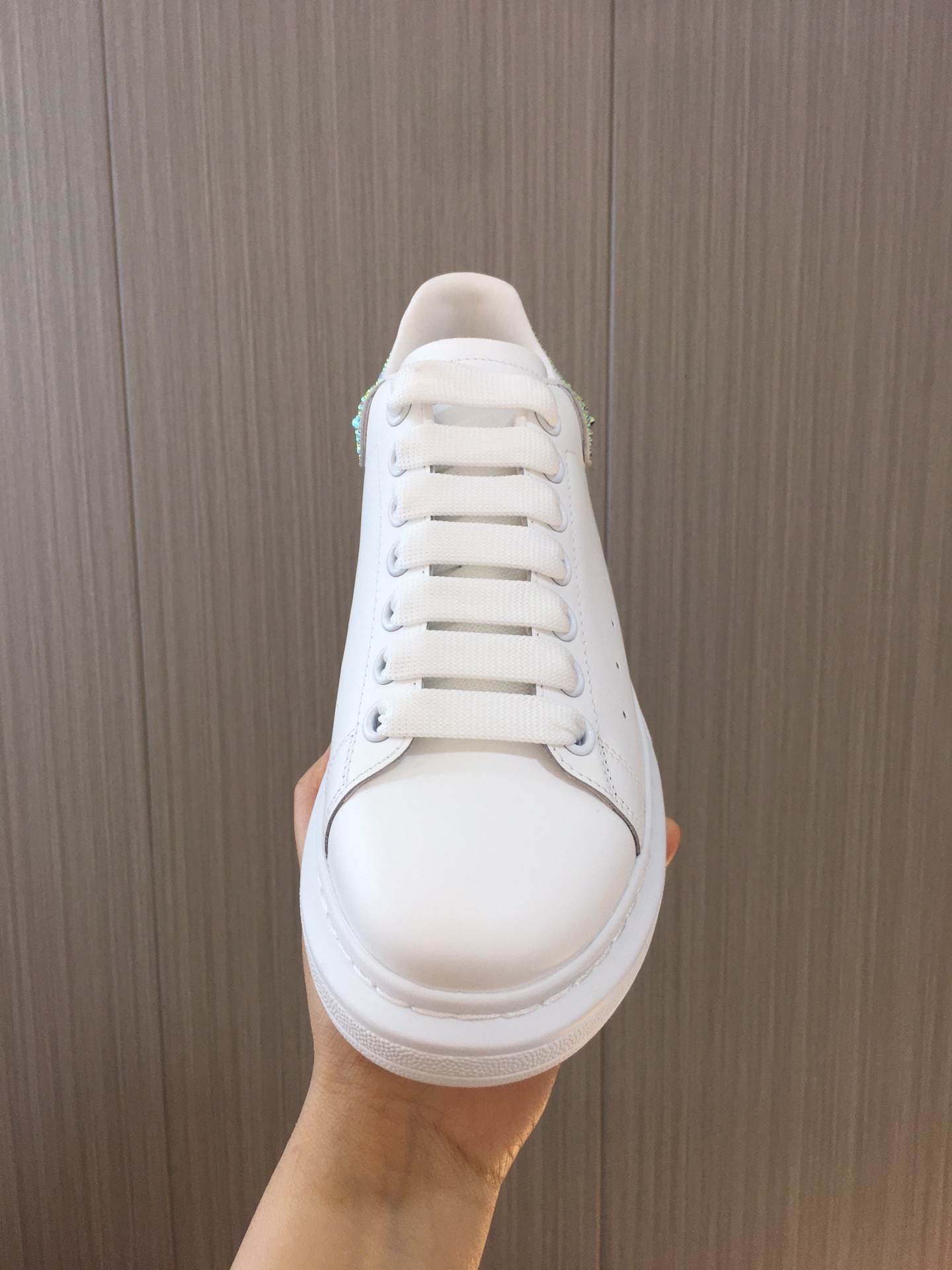 这款鞋子是AAAAA 1:1 质量 (非常棒). 使用了和原版一模一样的材料. 商标部分也保持了和亚历山大·麦昆/McQueen一样. 图片拍摄是实物鞋子拍摄, 您所收到的实物保证和我们图片一模一样.