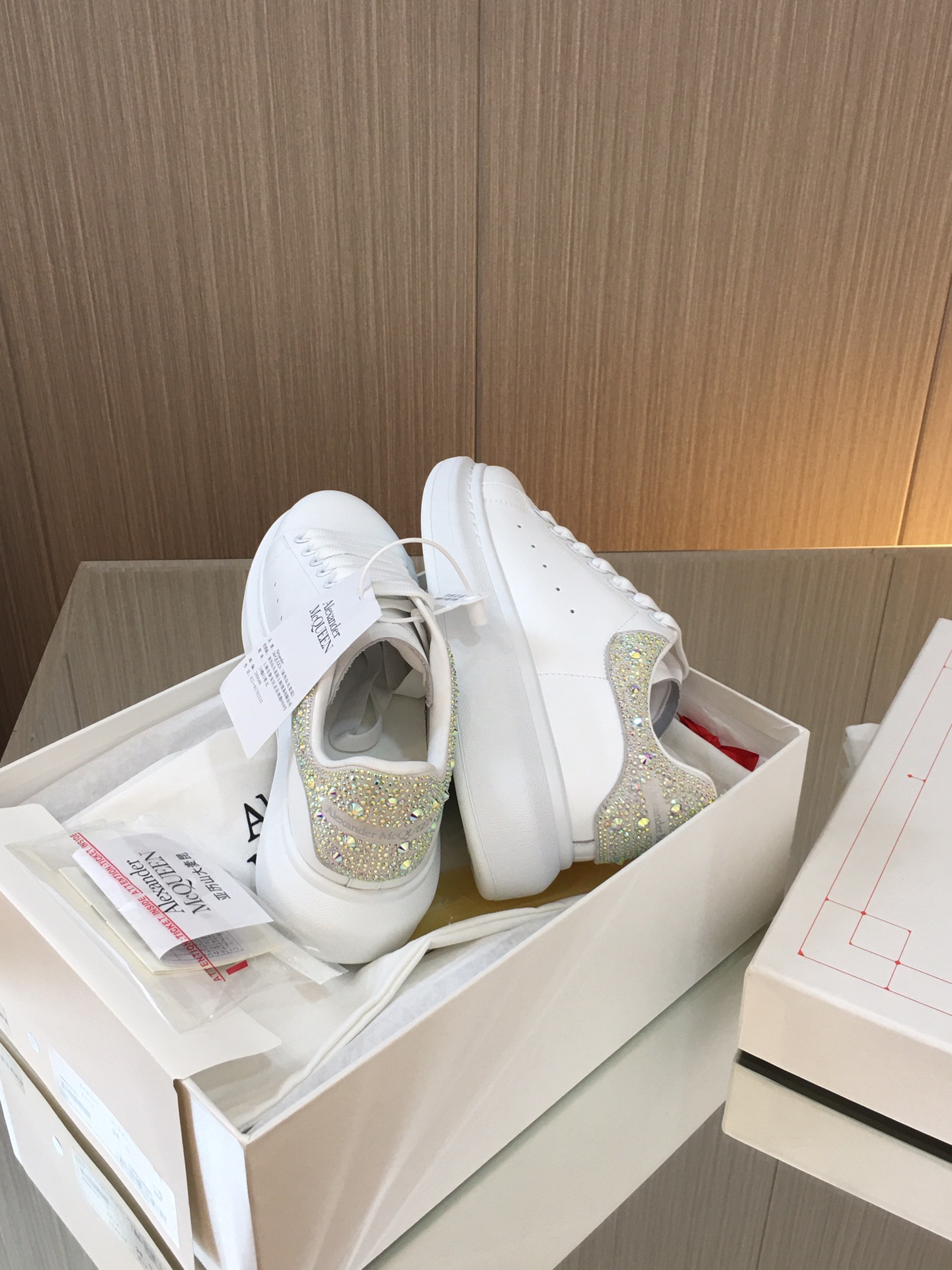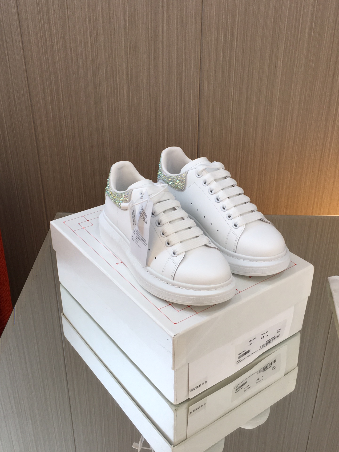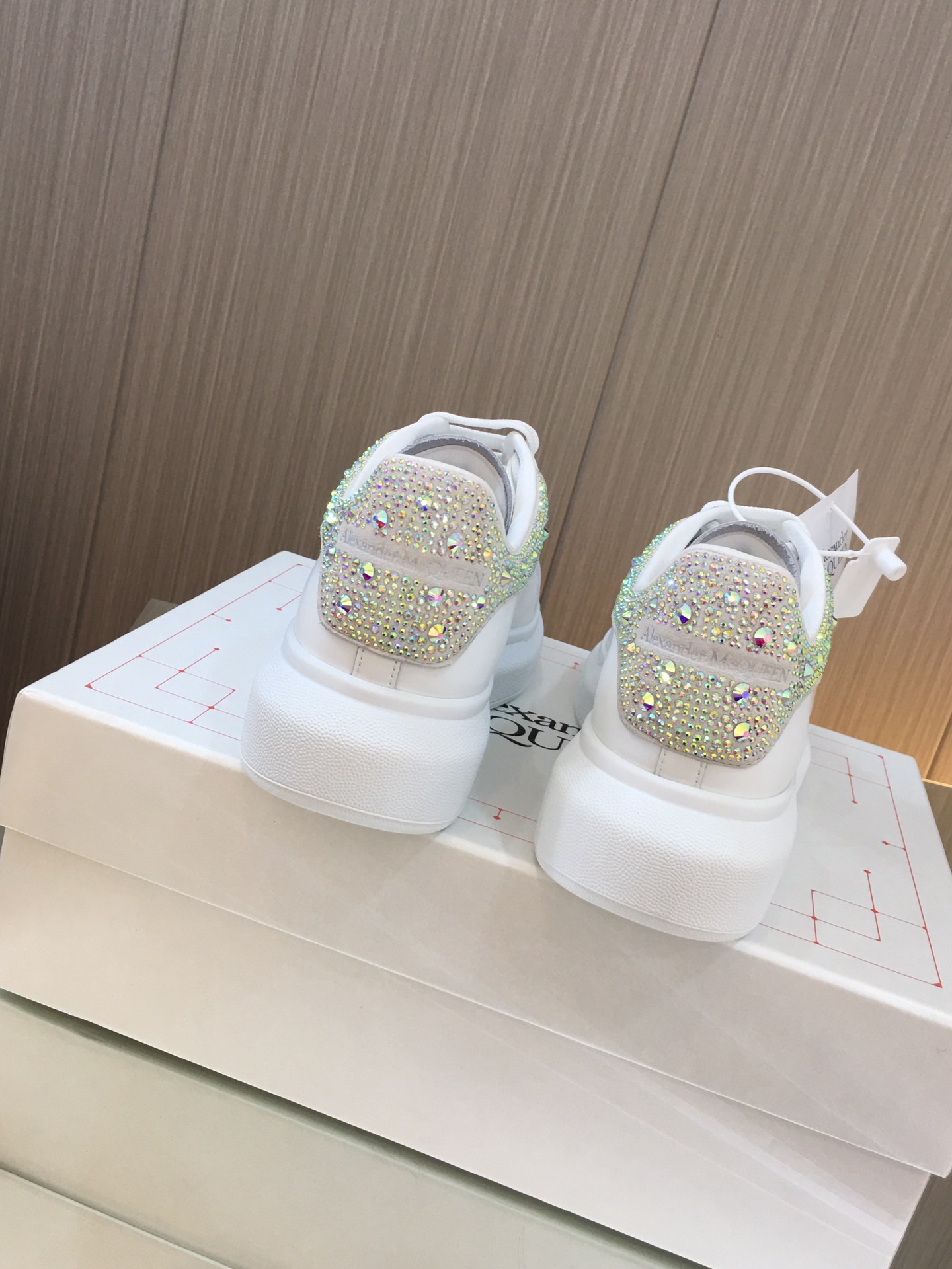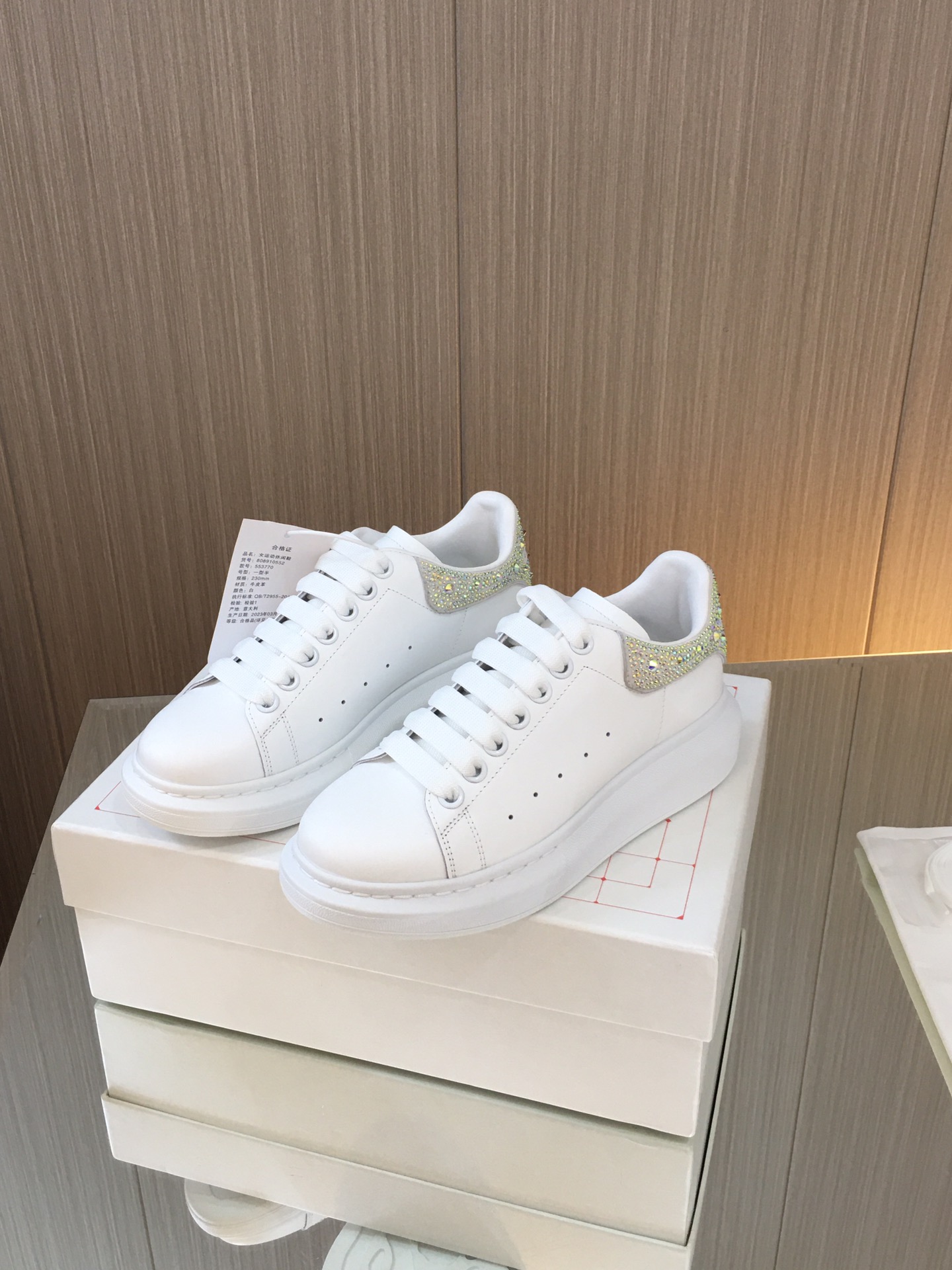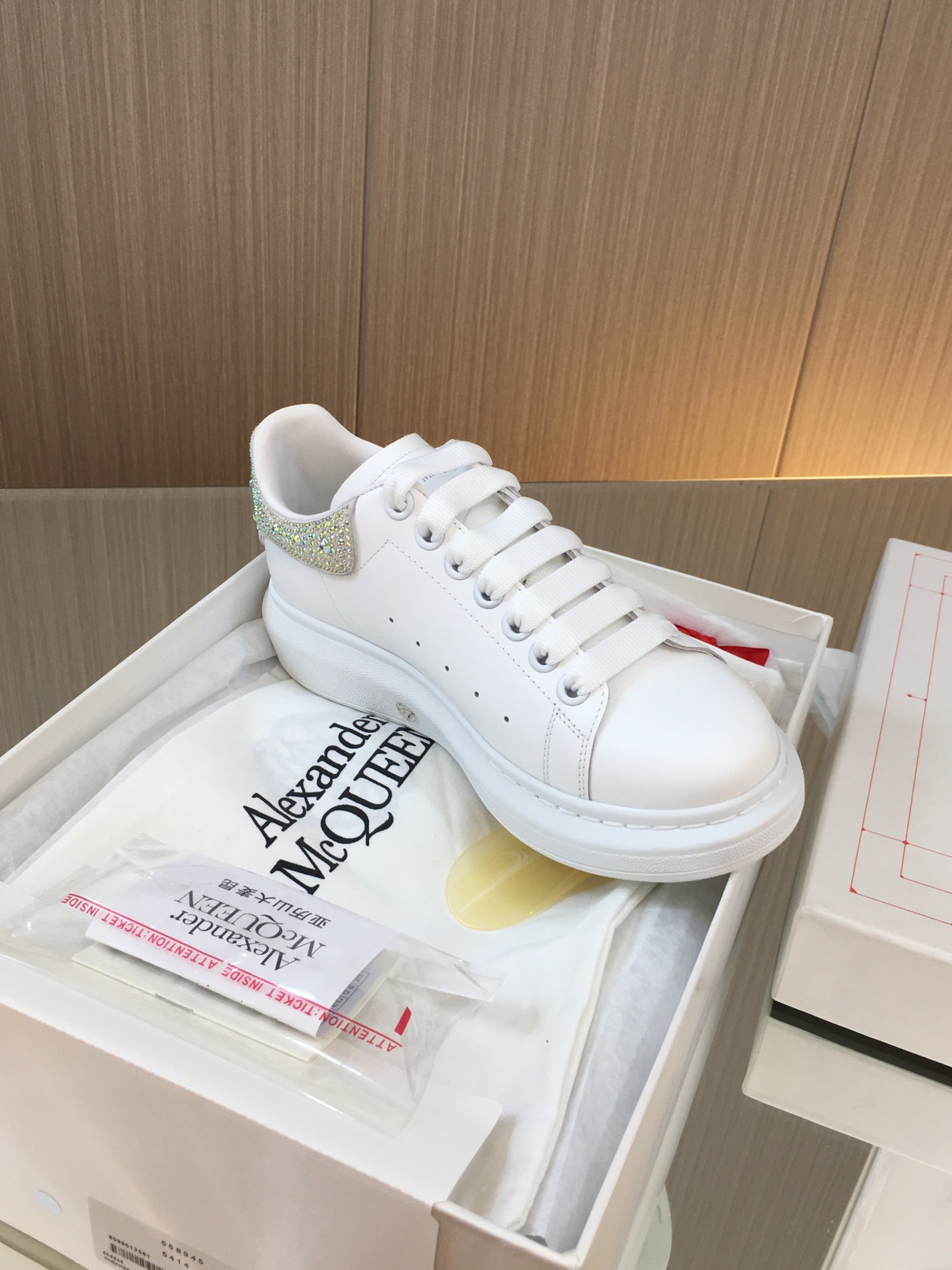 这款鞋子是AAAAA 1:1 质量 (非常棒). 使用了和原版一模一样的材料. 商标部分也保持了和亚历山大·麦昆/McQueen一样. 图片拍摄是实物鞋子拍摄, 您所收到的实物保证和我们图片一模一样.