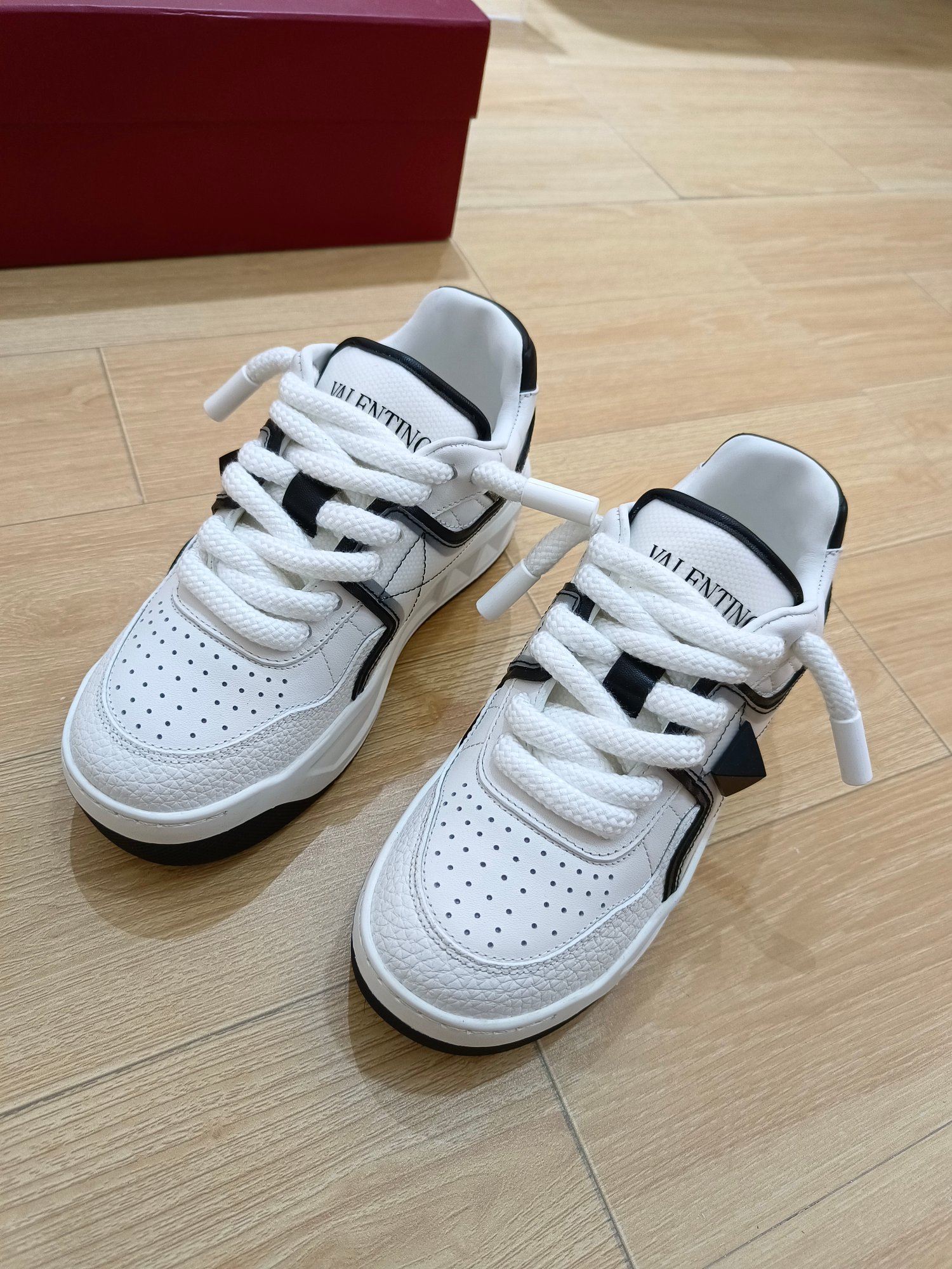 这款鞋子是AAAAA 1:1 质量 (非常棒). 使用了和原版一模一样的材料. 商标部分也保持了和华伦天奴/Valentino一样. 图片拍摄是实物鞋子拍摄, 您所收到的实物保证和我们图片一模一样.