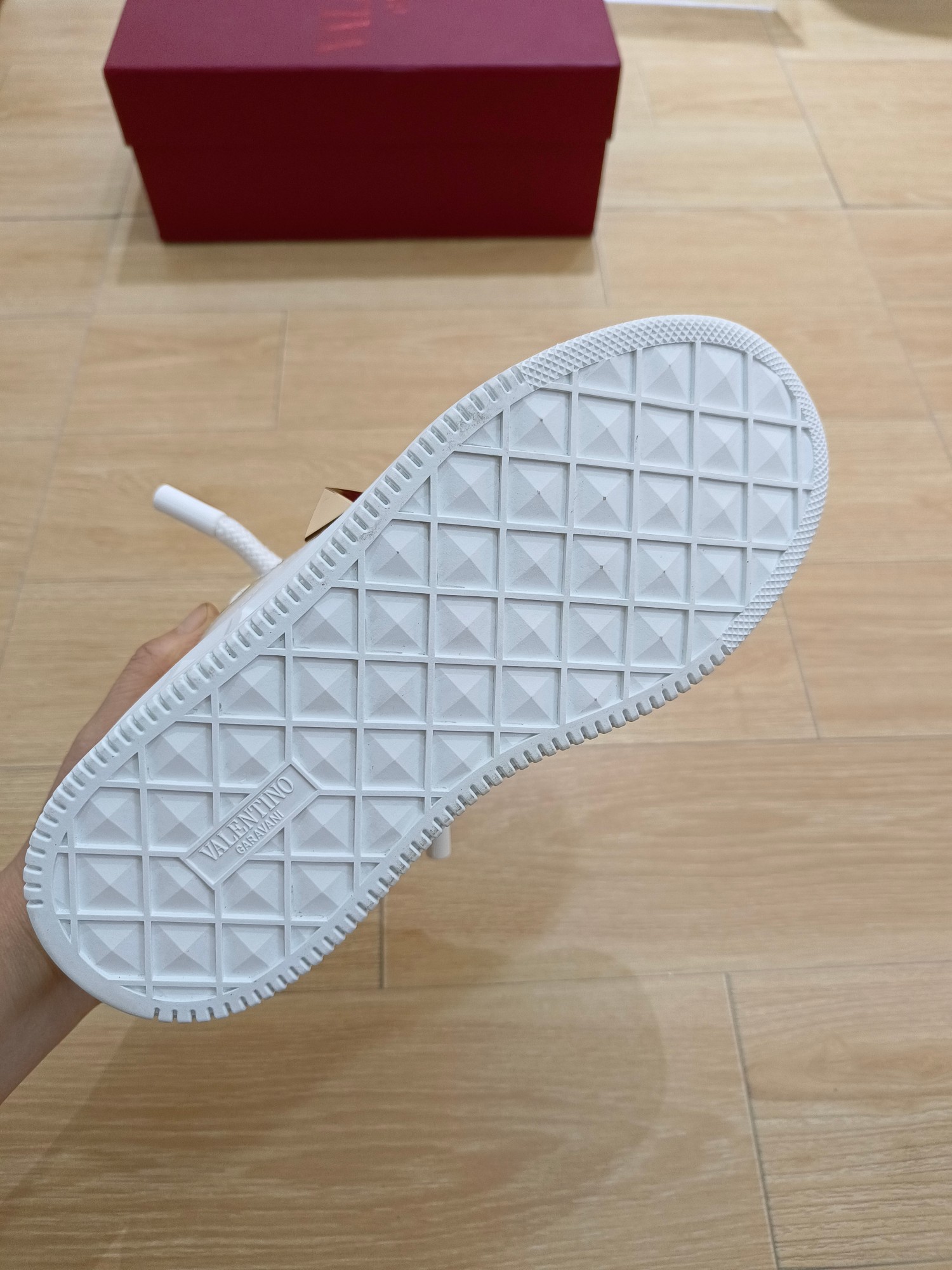 这款鞋子是AAAAA 1:1 质量 (非常棒). 使用了和原版一模一样的材料. 商标部分也保持了和华伦天奴/Valentino一样. 图片拍摄是实物鞋子拍摄, 您所收到的实物保证和我们图片一模一样.
