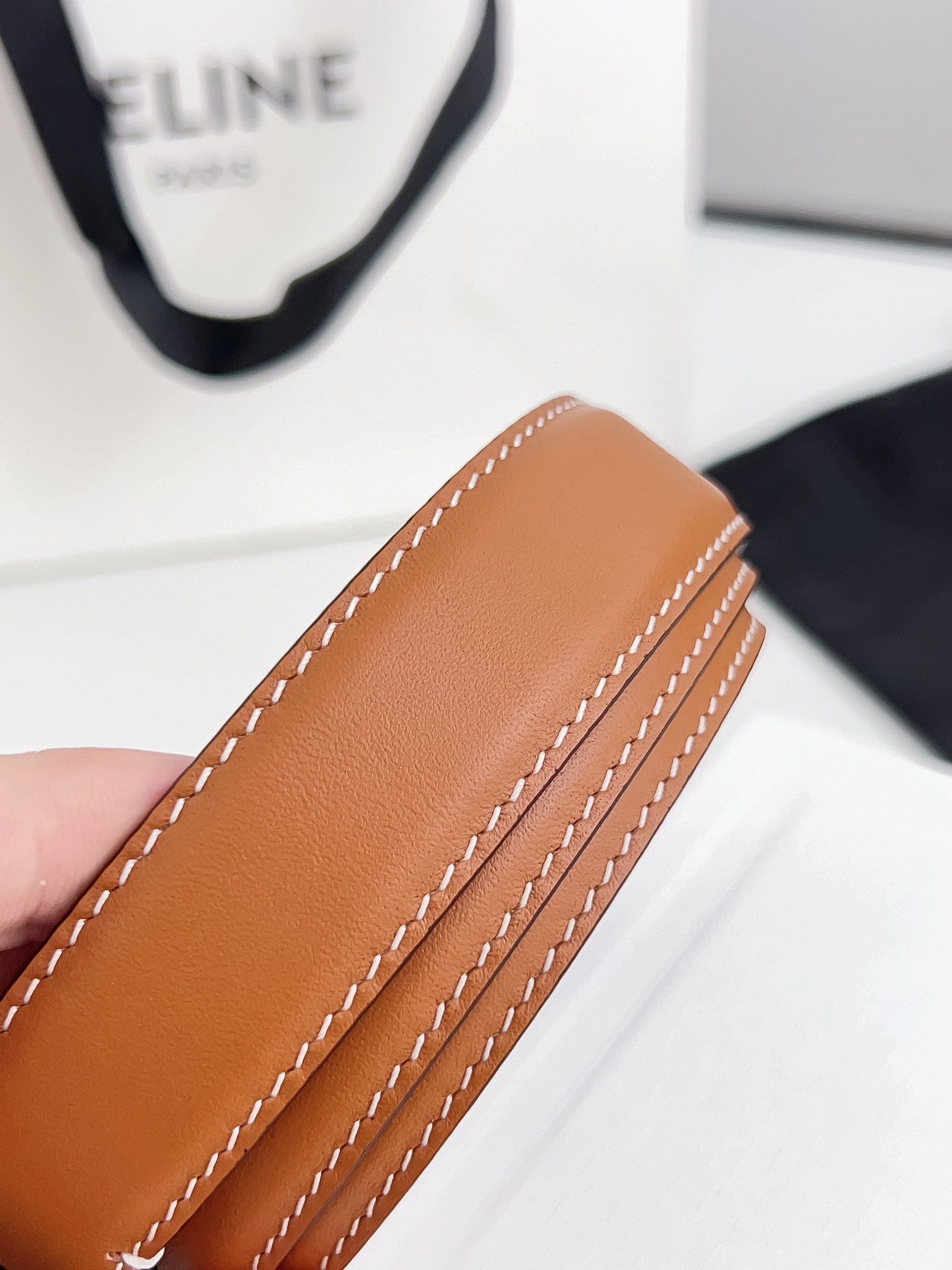 这款皮带是AAAAA 1:1 质量 (非常棒). 使用了和原版一模一样的材料. 商标部分也保持了和思琳/Celine一样. 图片拍摄是实物皮带拍摄, 您所收到的实物保证和我们图片一模一样.