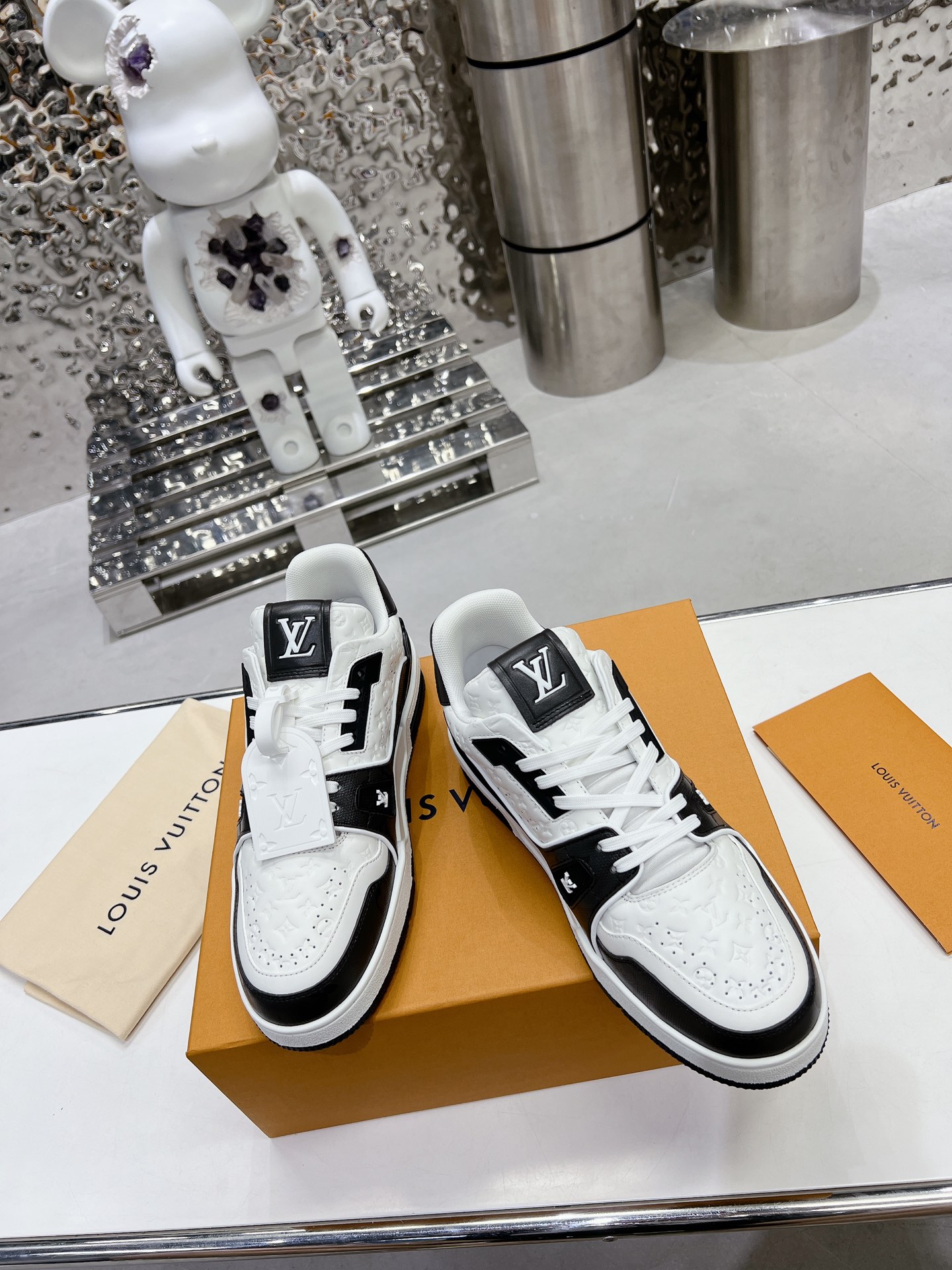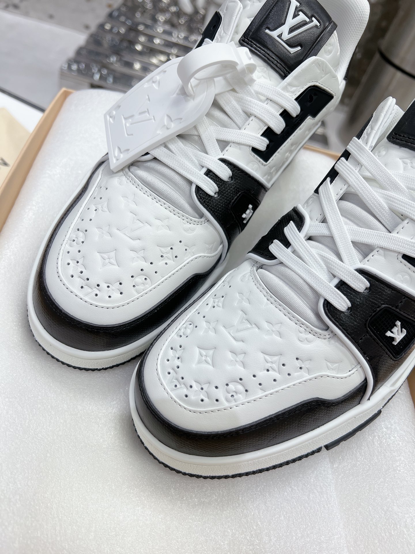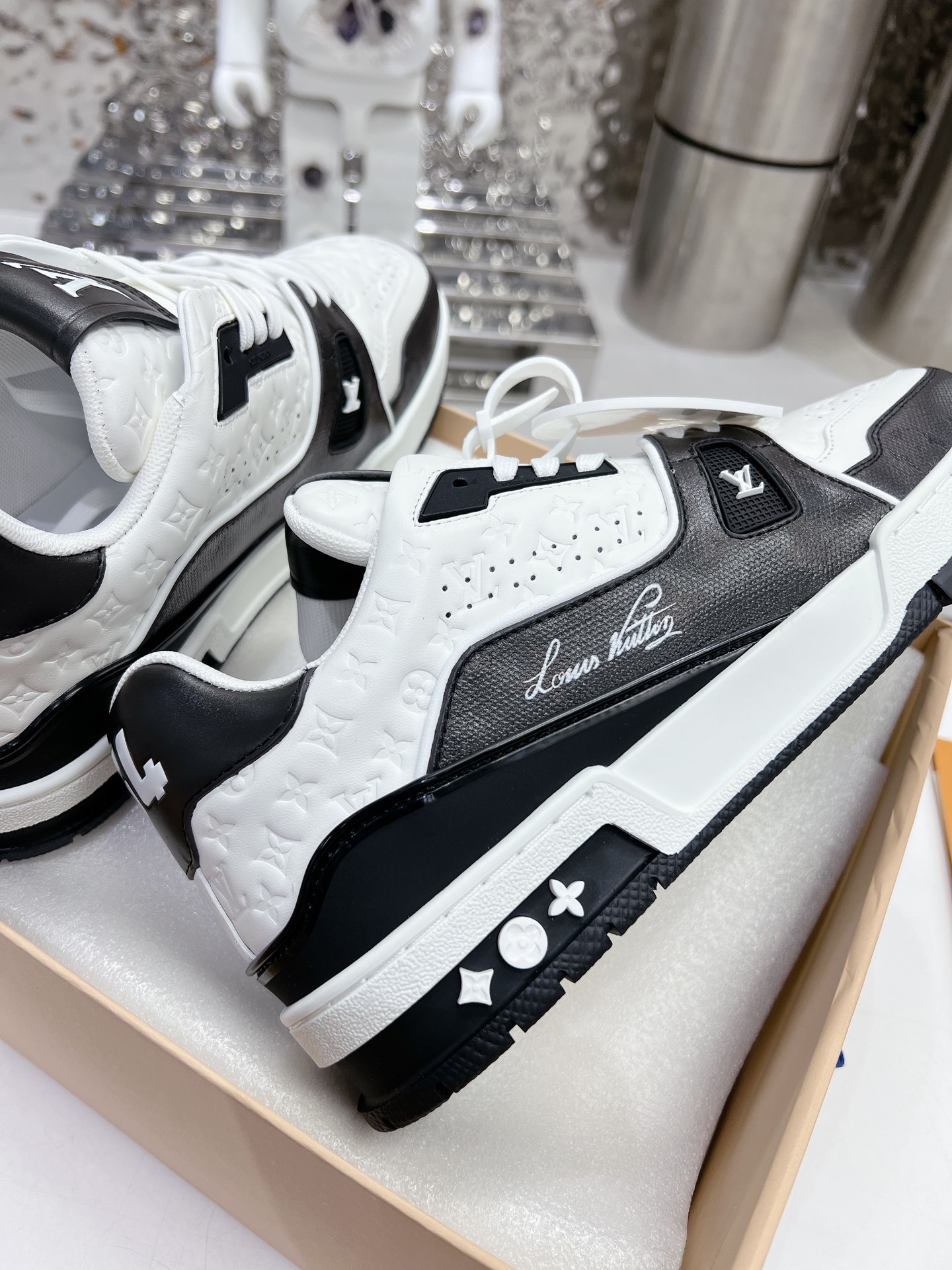 这款鞋子是AAAAA 1:1 质量 (非常棒). 使用了和原版一模一样的材料. 商标部分也保持了和路易威登/Louis Vuitton一样. 图片拍摄是实物鞋子拍摄, 您所收到的实物保证和我们图片一模一样.