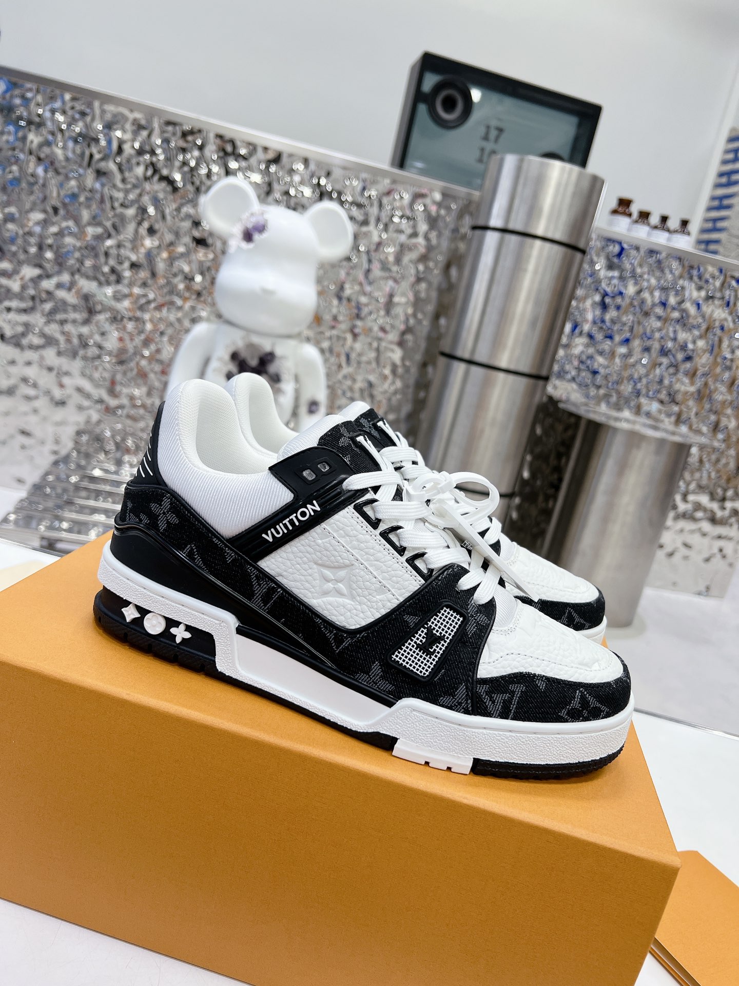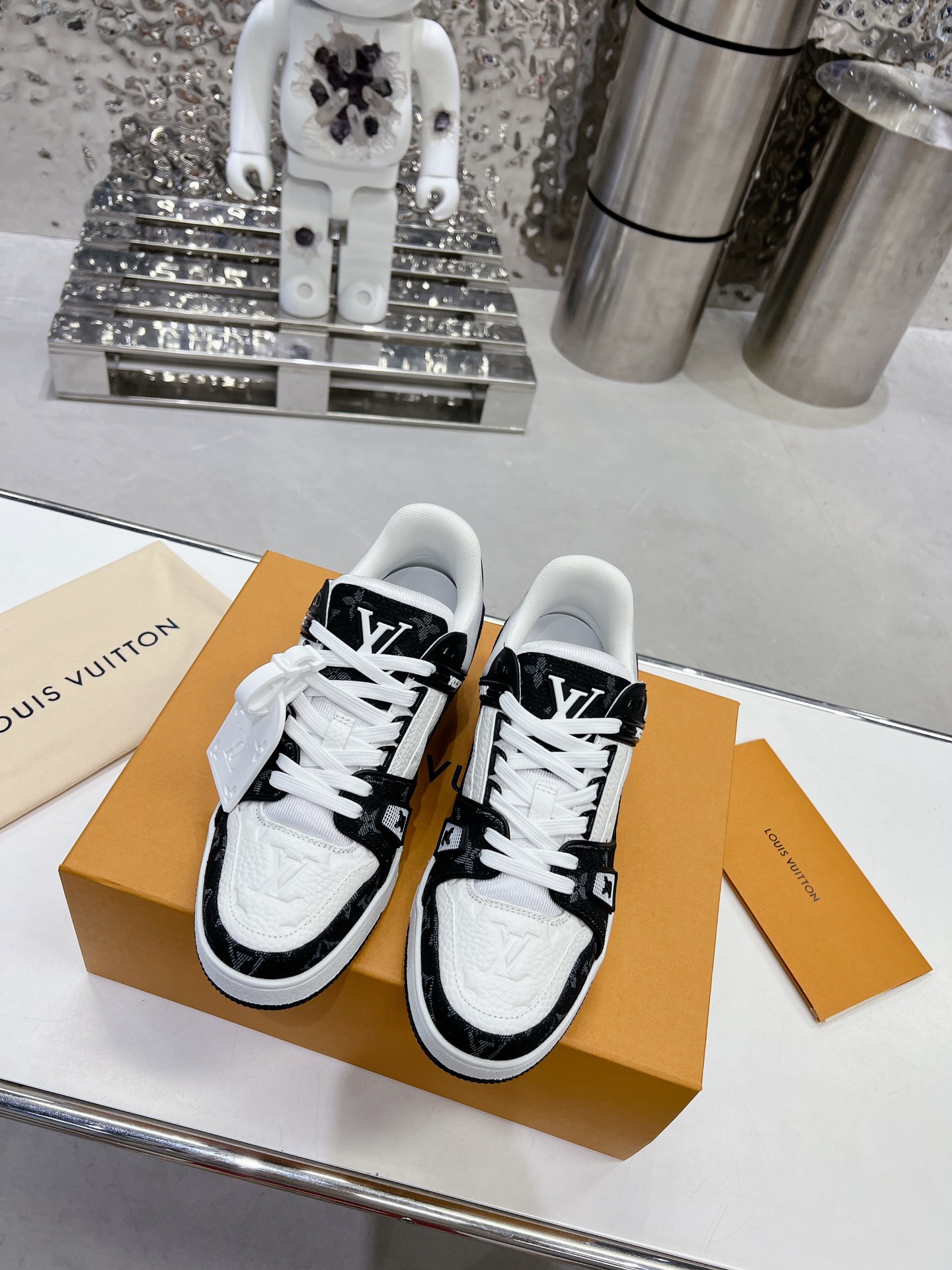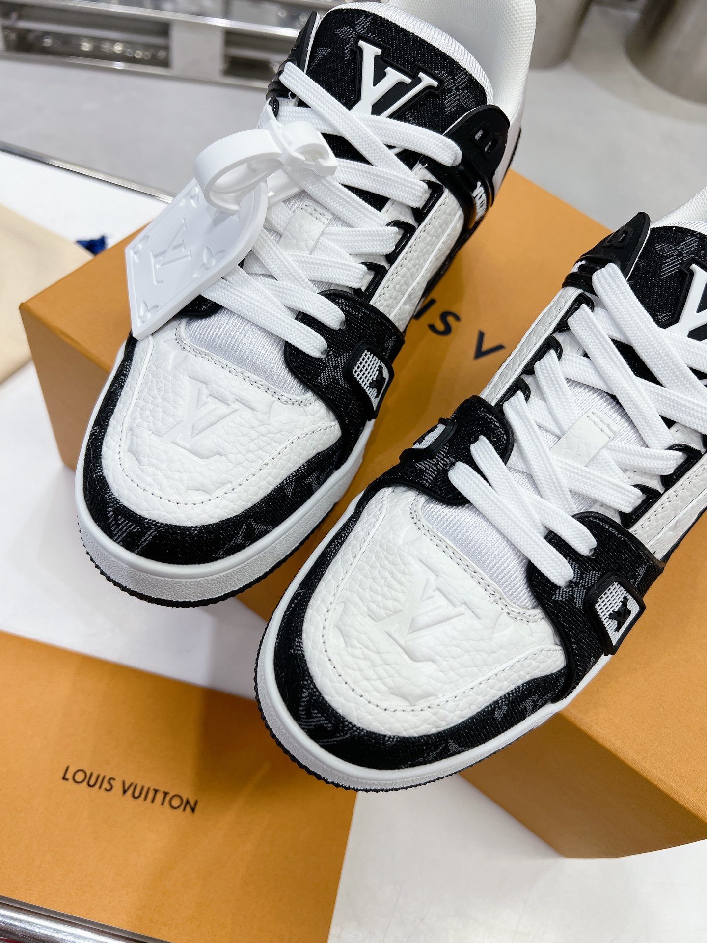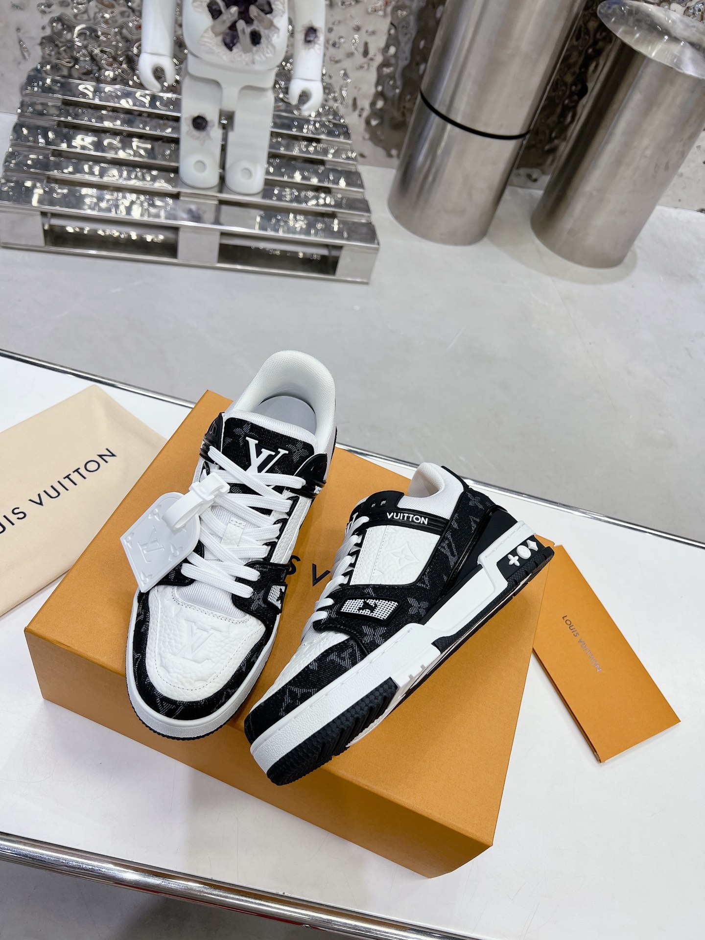 这款鞋子是AAAAA 1:1 质量 (非常棒). 使用了和原版一模一样的材料. 商标部分也保持了和路易威登/Louis Vuitton一样. 图片拍摄是实物鞋子拍摄, 您所收到的实物保证和我们图片一模一样.
