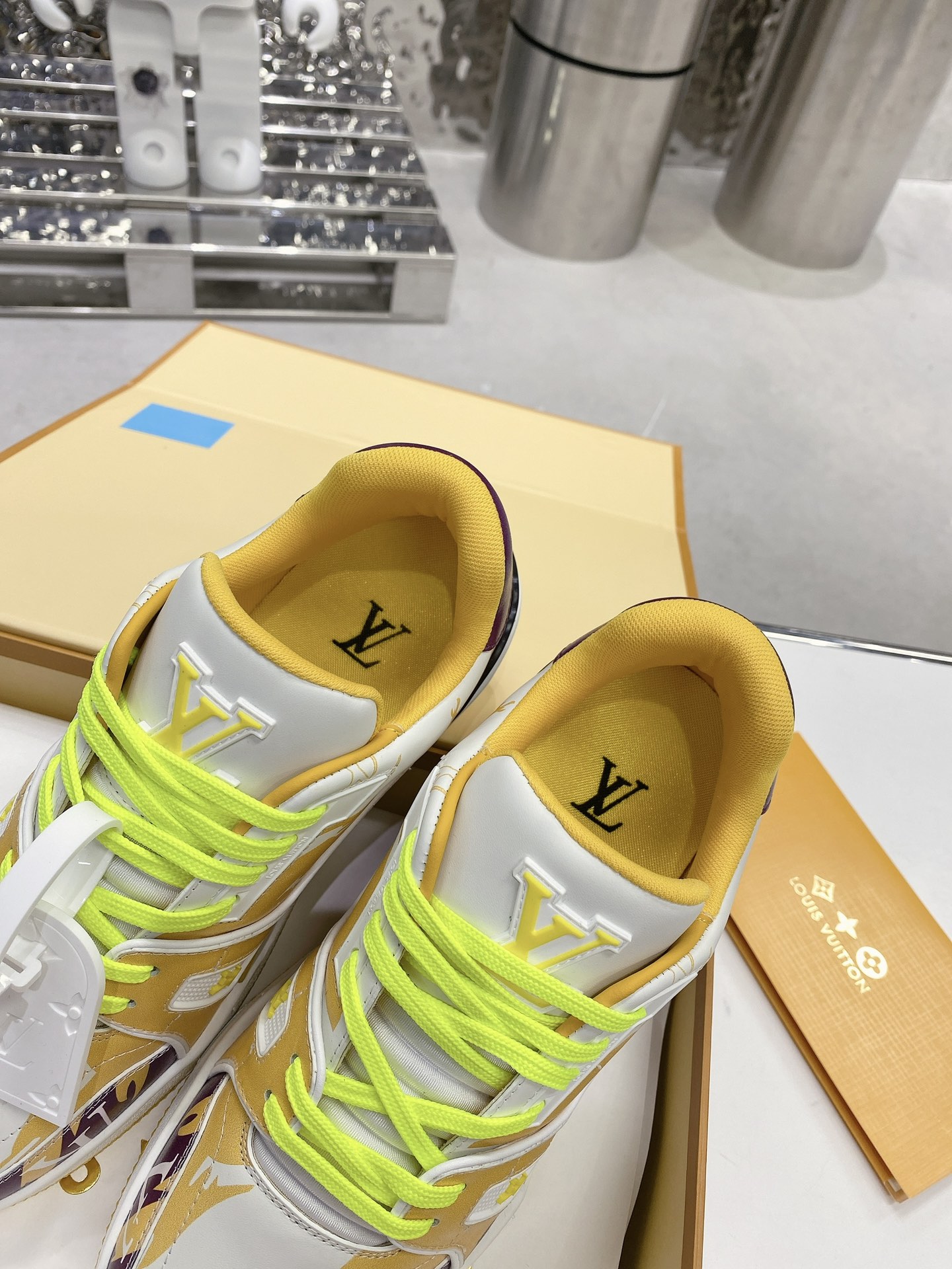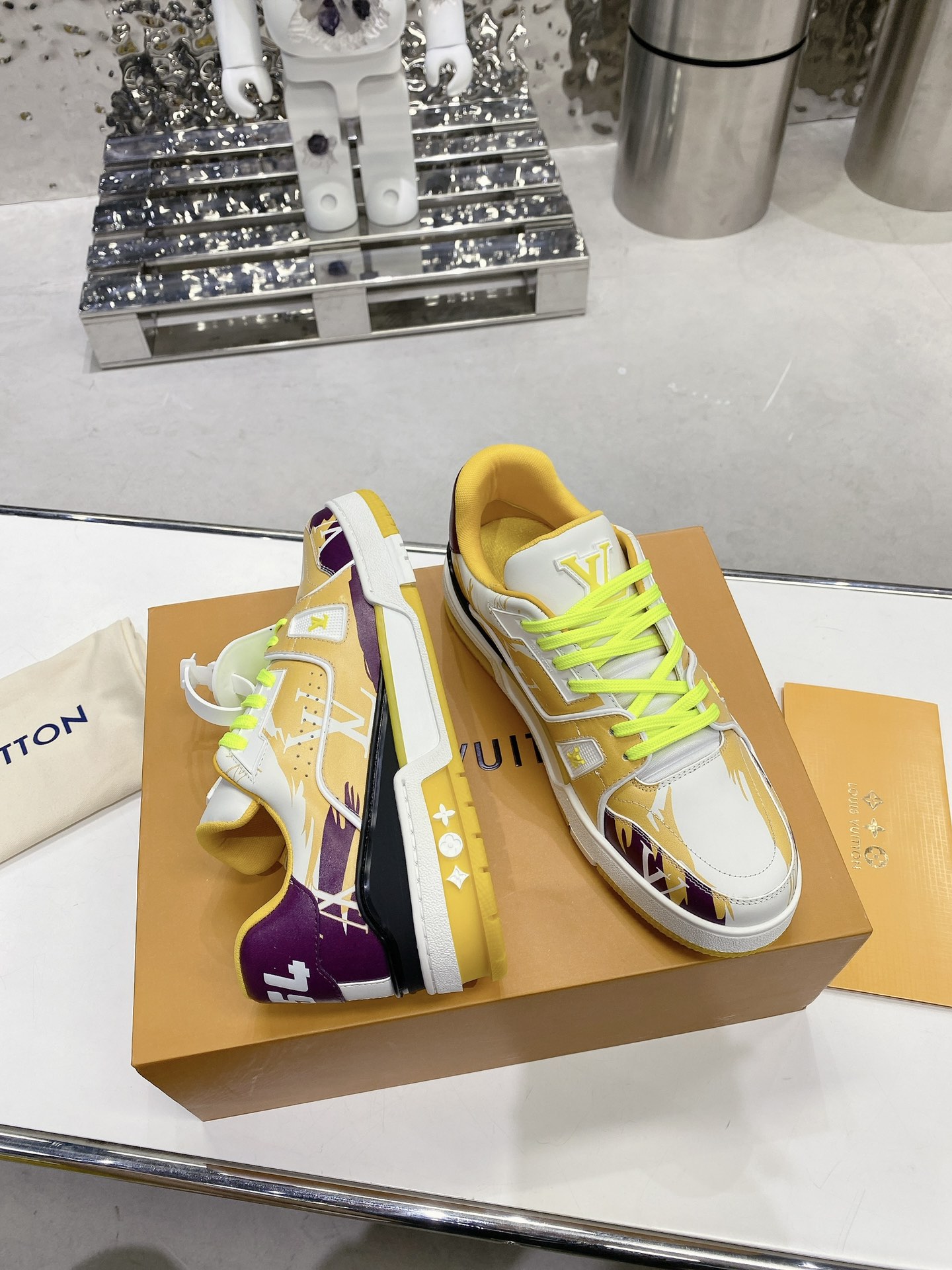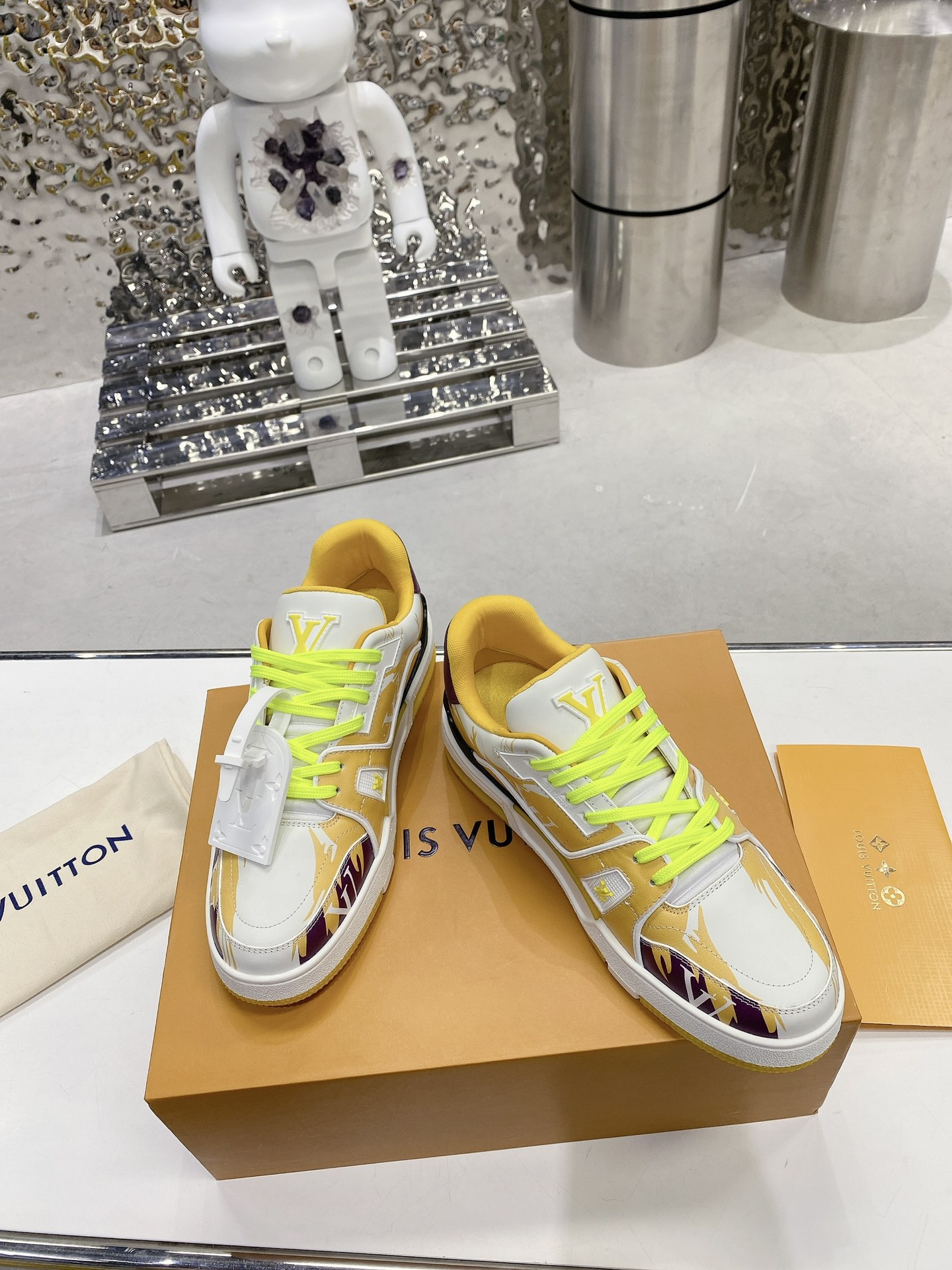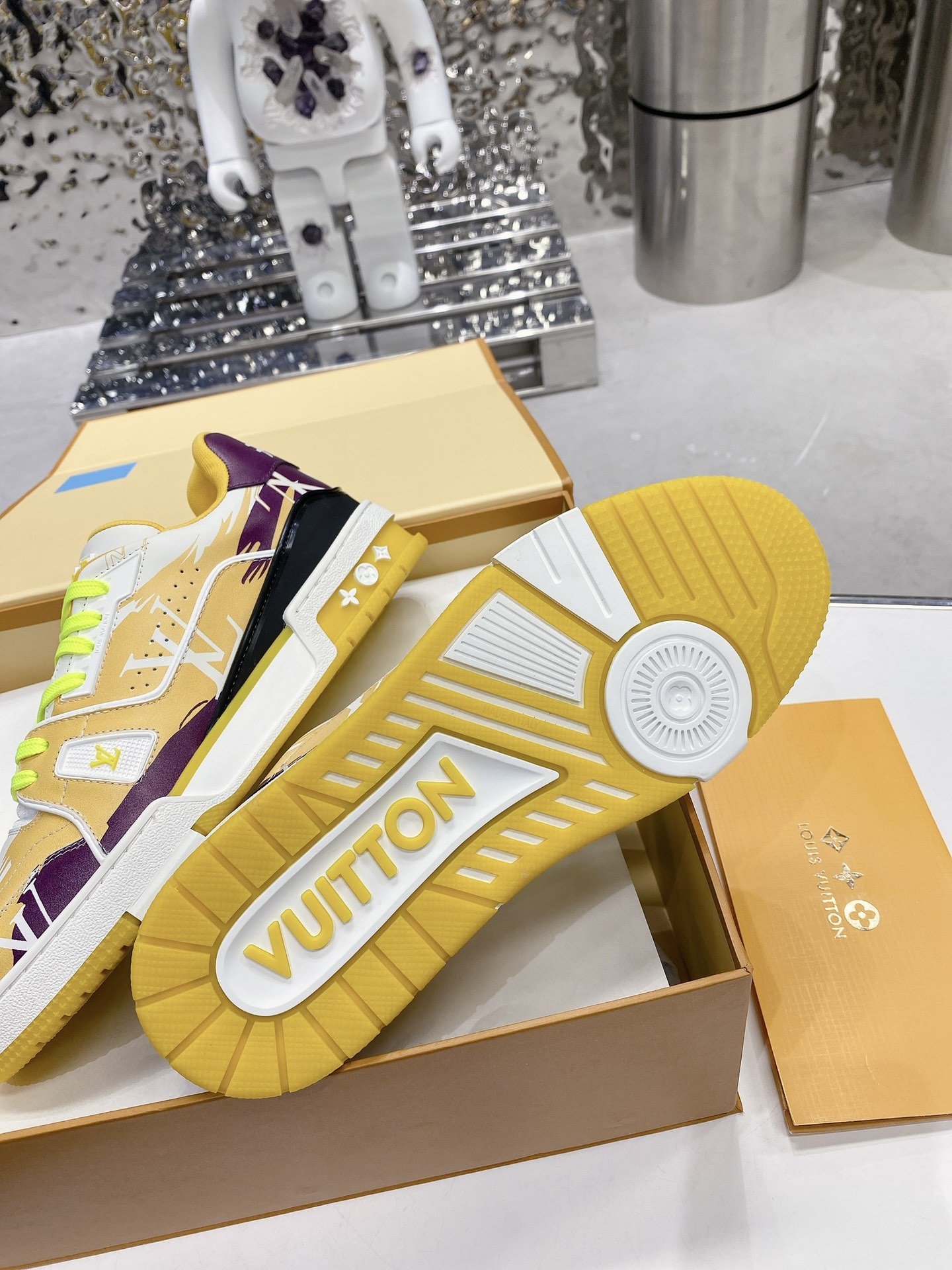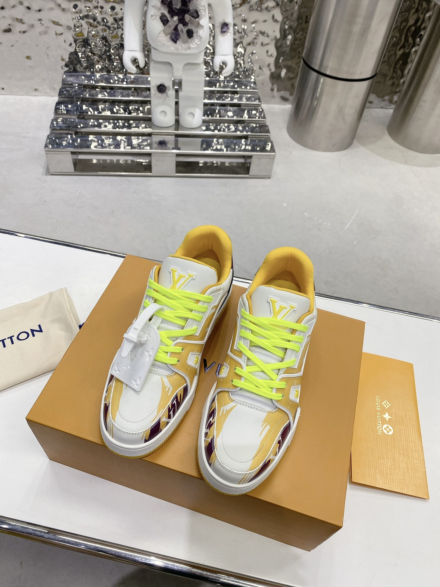 这款鞋子是AAAAA 1:1 质量 (非常棒). 使用了和原版一模一样的材料. 商标部分也保持了和路易威登/Louis Vuitton一样. 图片拍摄是实物鞋子拍摄, 您所收到的实物保证和我们图片一模一样.