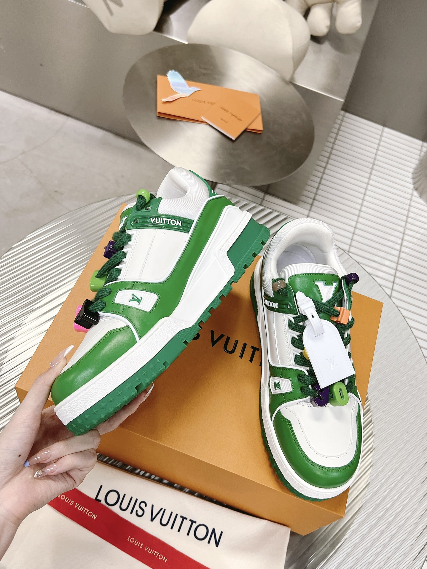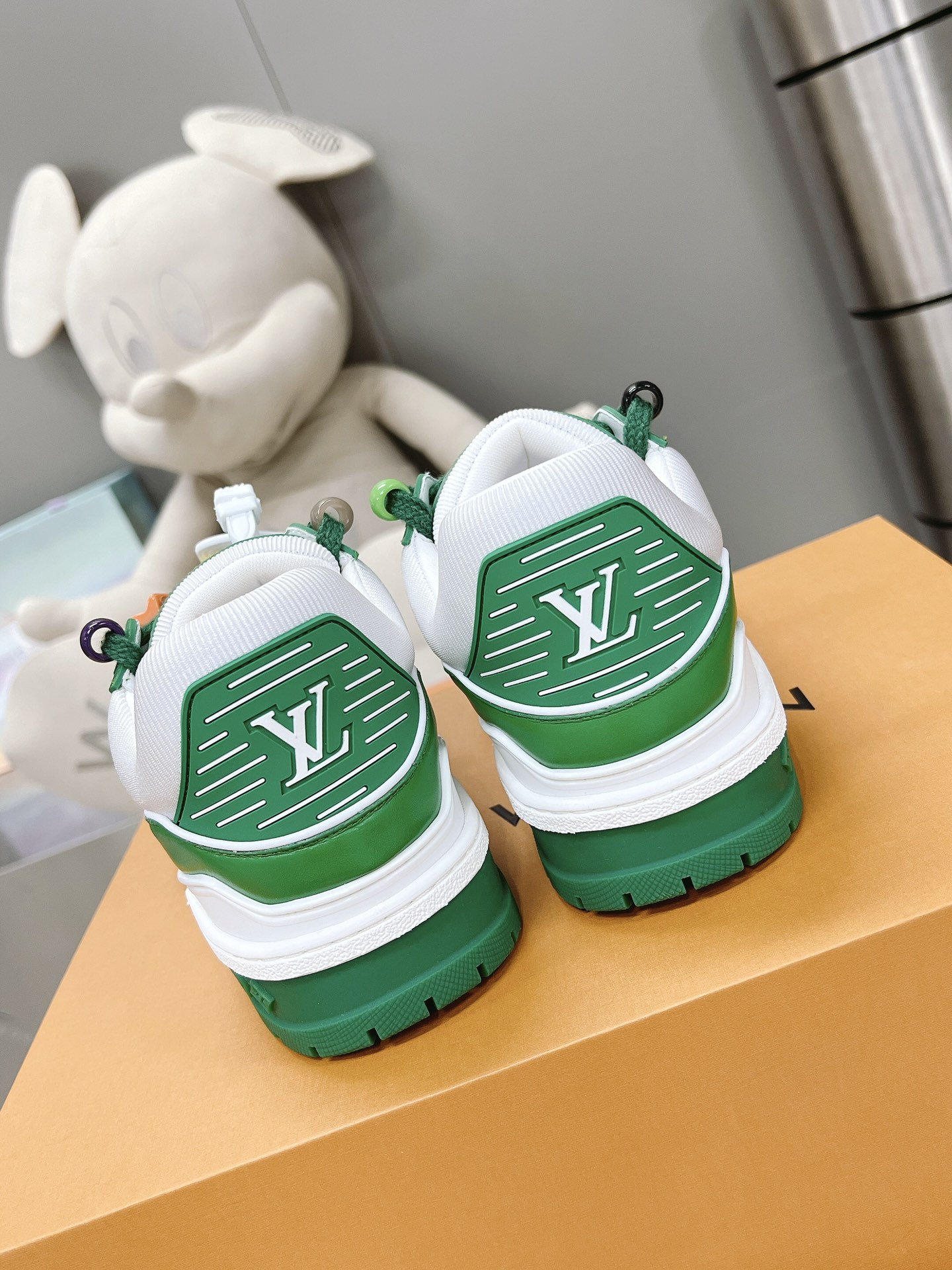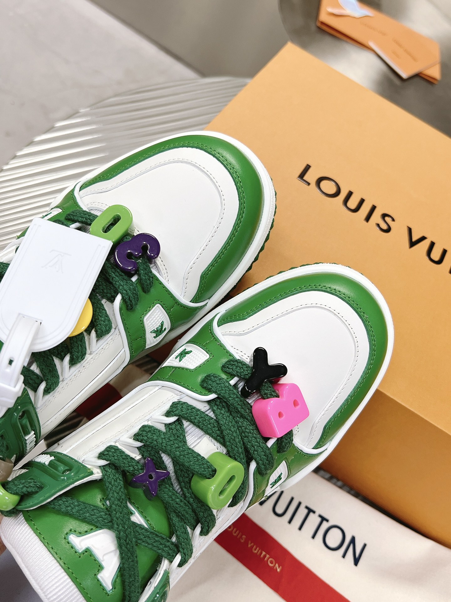 这款鞋子是AAAAA 1:1 质量 (非常棒). 使用了和原版一模一样的材料. 商标部分也保持了和路易威登/Louis Vuitton一样. 图片拍摄是实物鞋子拍摄, 您所收到的实物保证和我们图片一模一样.