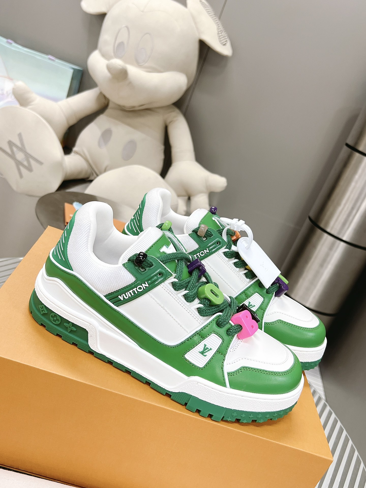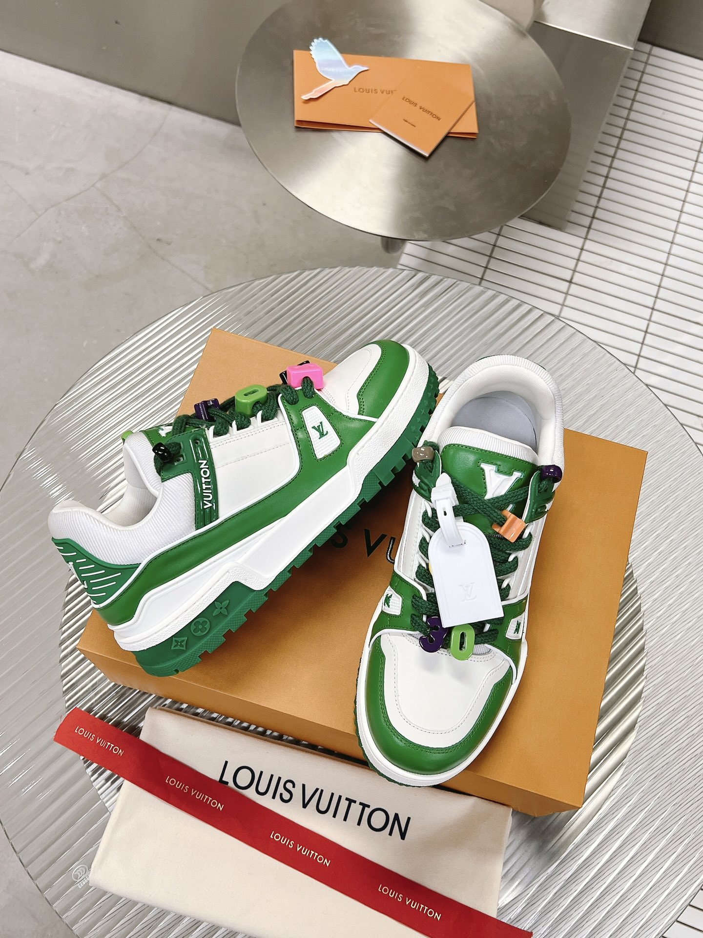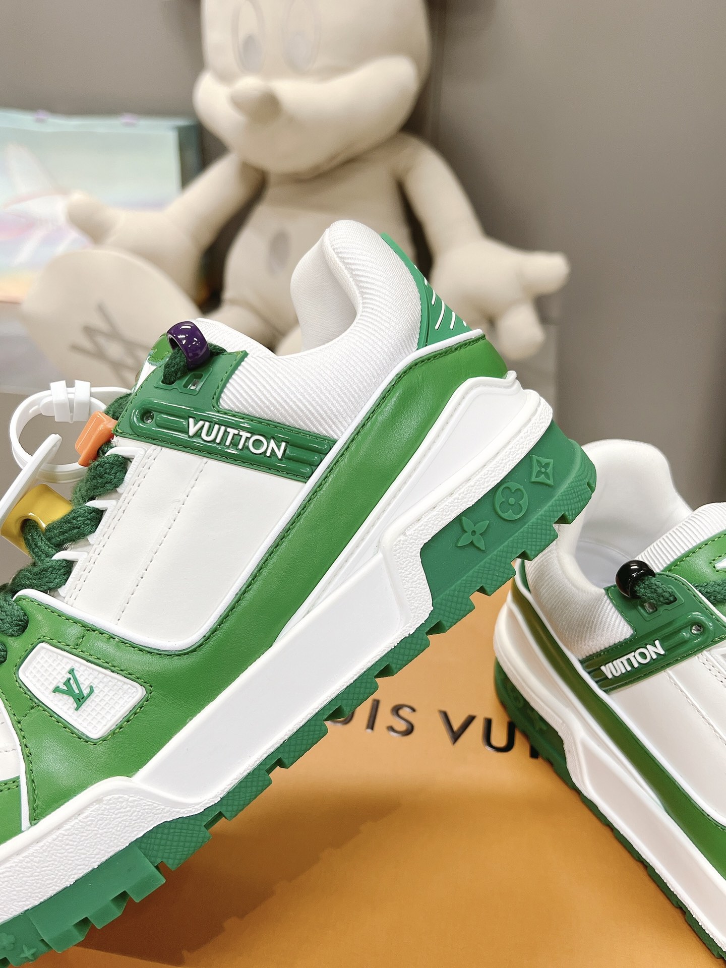这款鞋子是AAAAA 1:1 质量 (非常棒). 使用了和原版一模一样的材料. 商标部分也保持了和路易威登/Louis Vuitton一样. 图片拍摄是实物鞋子拍摄, 您所收到的实物保证和我们图片一模一样.