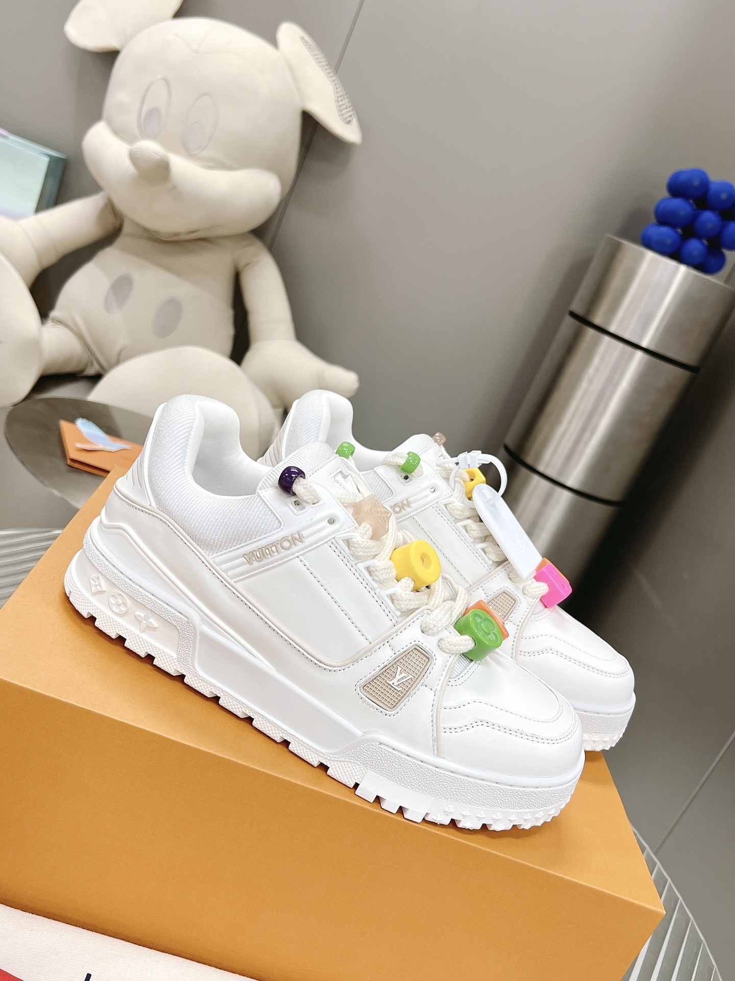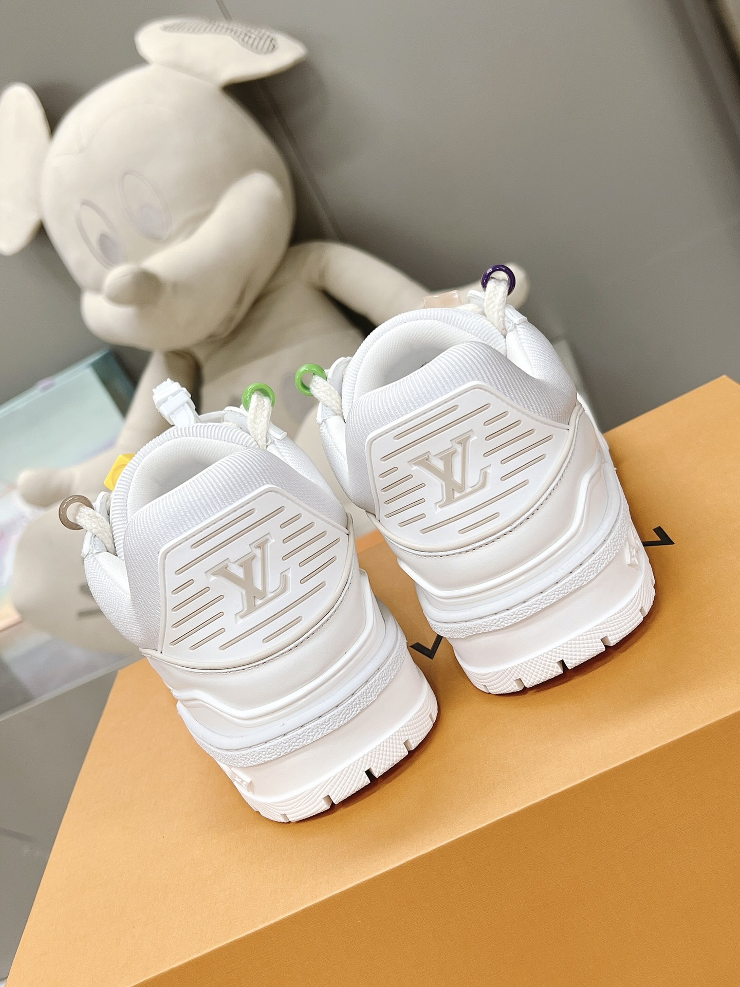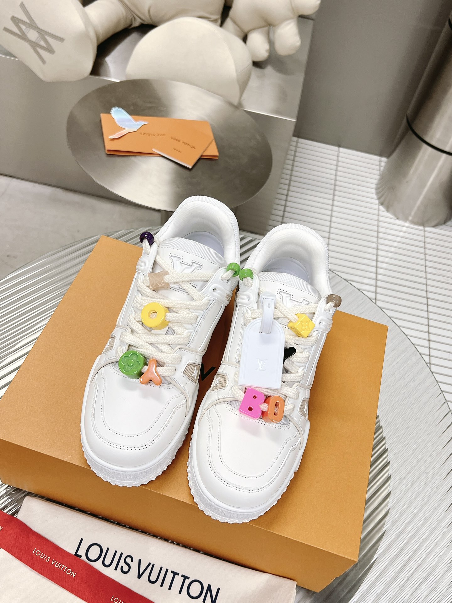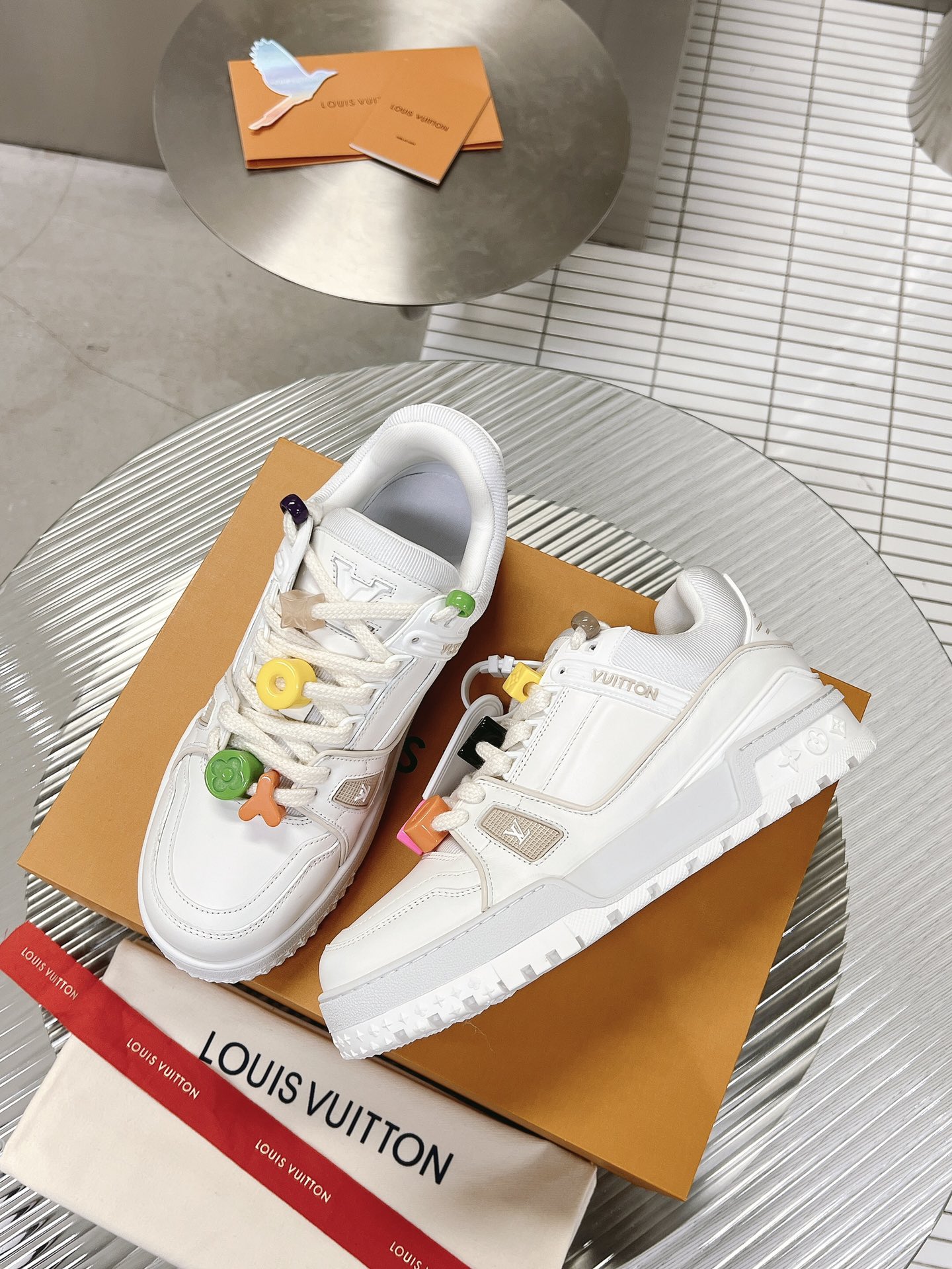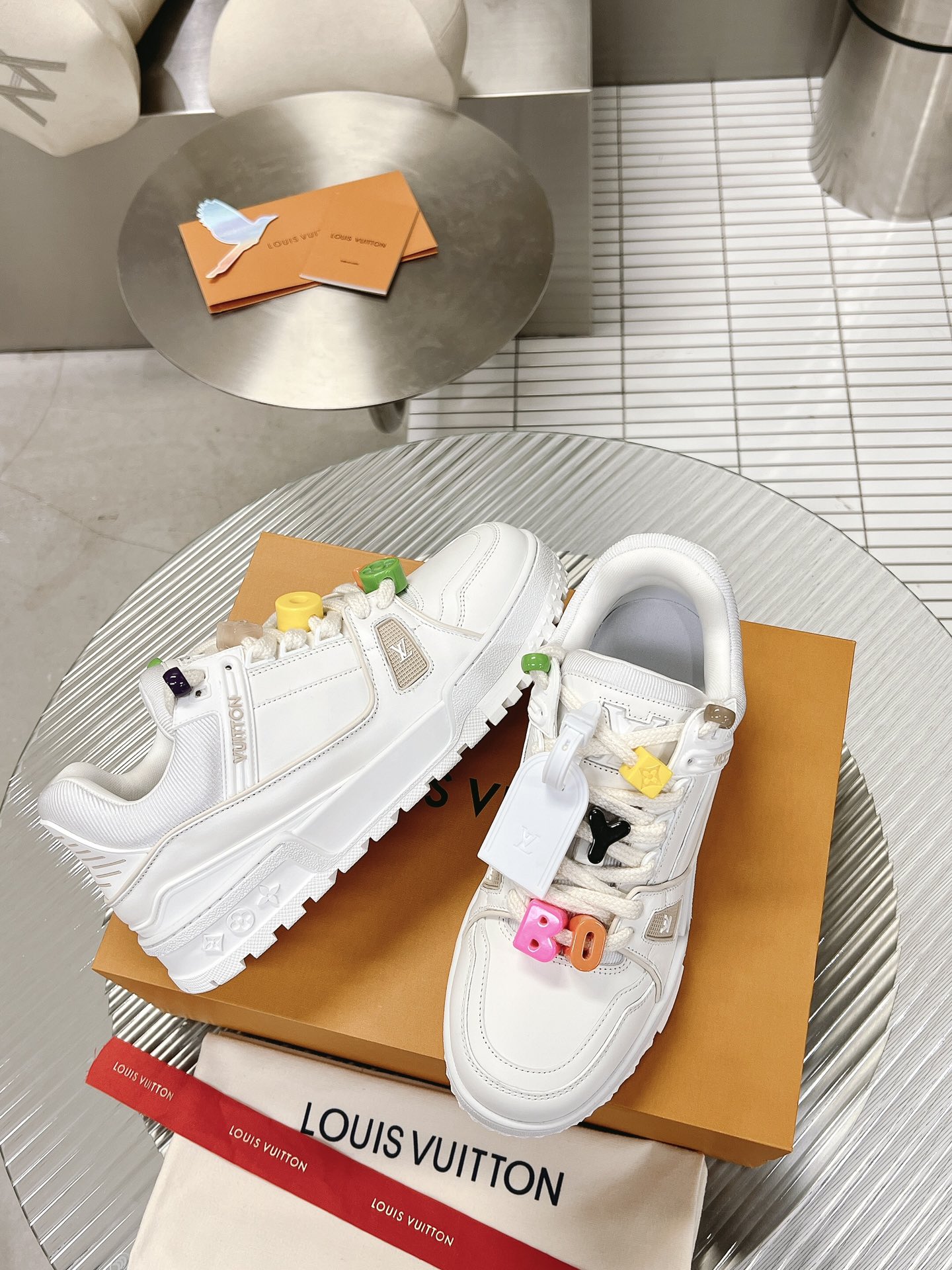 这款鞋子是AAAAA 1:1 质量 (非常棒). 使用了和原版一模一样的材料. 商标部分也保持了和路易威登/Louis Vuitton一样. 图片拍摄是实物鞋子拍摄, 您所收到的实物保证和我们图片一模一样.