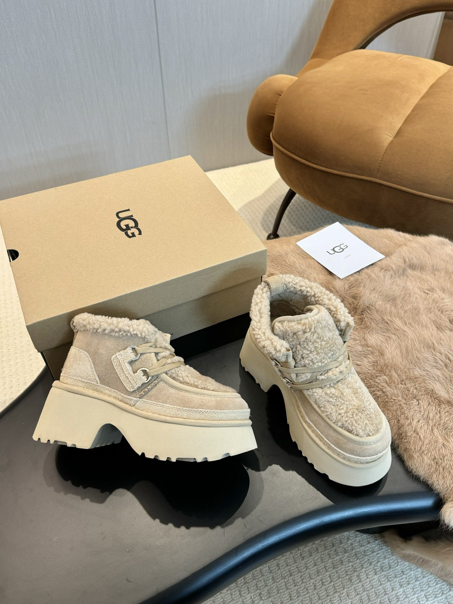 这款鞋子是AAAAA 1:1 质量 (非常棒). 使用了和原版一模一样的材料. 商标部分也保持了和UGG雪地靴一样. 图片拍摄是实物鞋子拍摄, 您所收到的实物保证和我们图片一模一样.