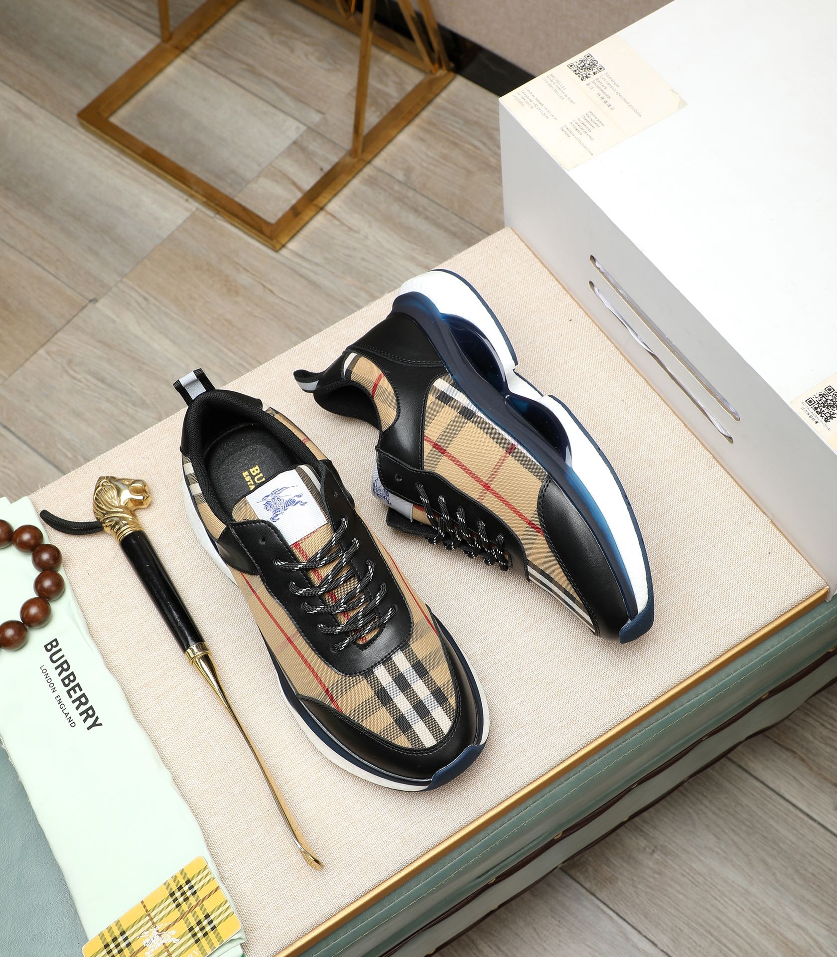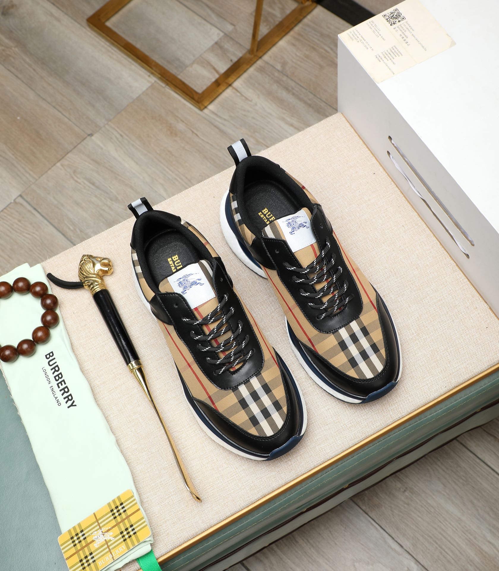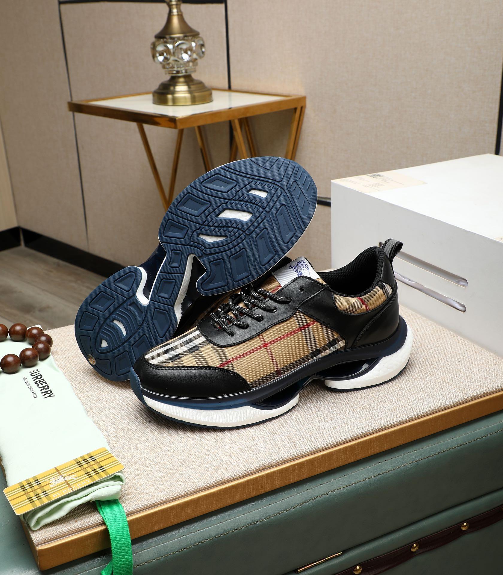 这款鞋子是AAAAA 1:1 质量 (非常棒). 使用了和原版一模一样的材料. 商标部分也保持了和巴宝莉/Burberry一样. 图片拍摄是实物鞋子拍摄, 您所收到的实物保证和我们图片一模一样.
