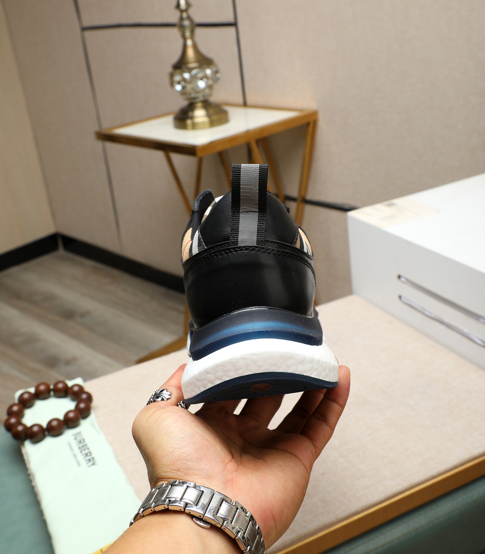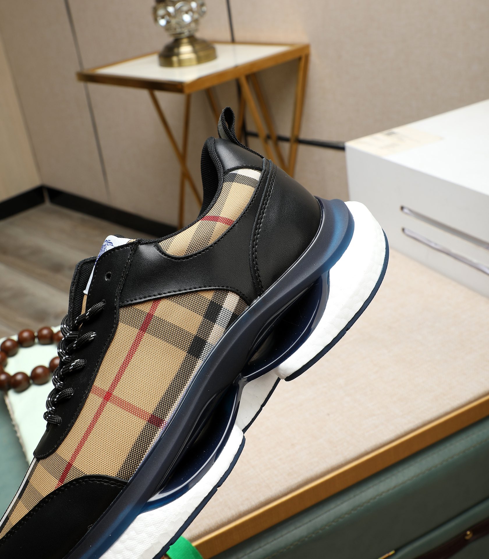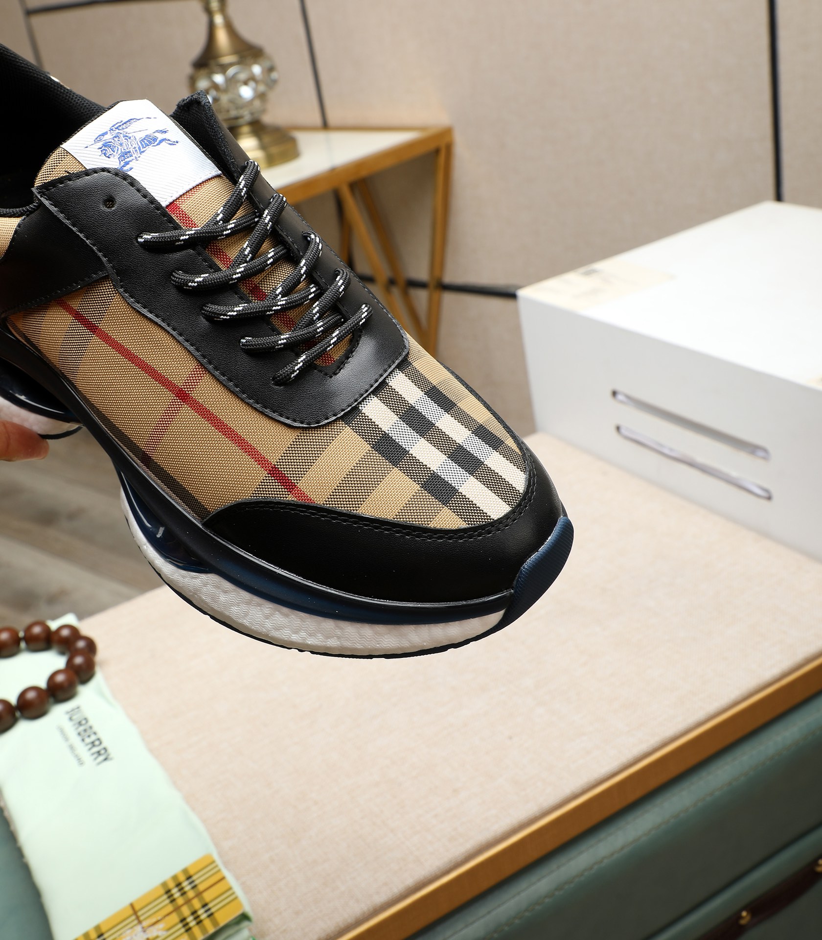 这款鞋子是AAAAA 1:1 质量 (非常棒). 使用了和原版一模一样的材料. 商标部分也保持了和巴宝莉/Burberry一样. 图片拍摄是实物鞋子拍摄, 您所收到的实物保证和我们图片一模一样.