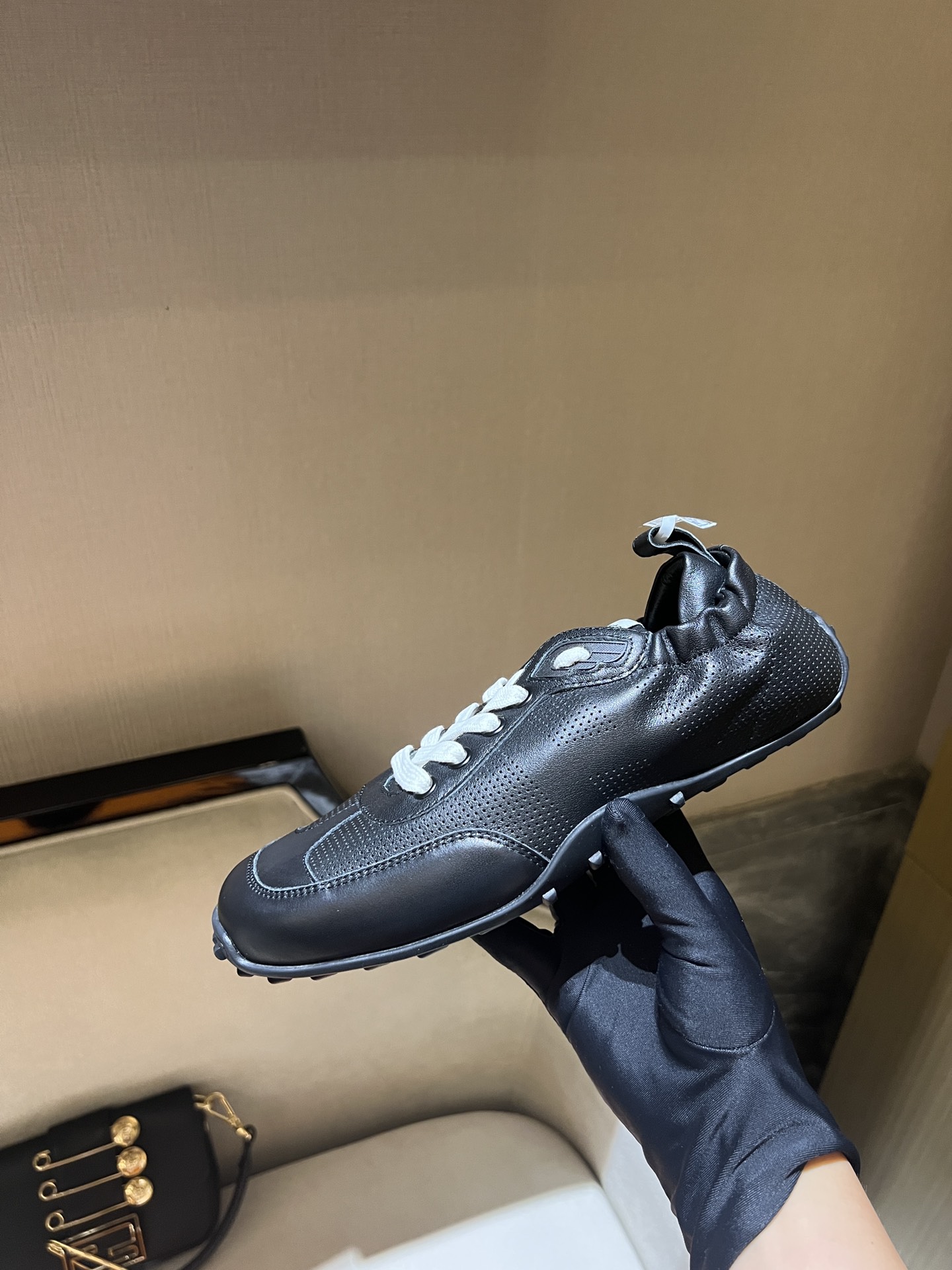 这款鞋子是AAAAA 1:1 质量 (非常棒). 使用了和原版一模一样的材料. 商标部分也保持了和芬迪/Fendi一样. 图片拍摄是实物鞋子拍摄, 您所收到的实物保证和我们图片一模一样.