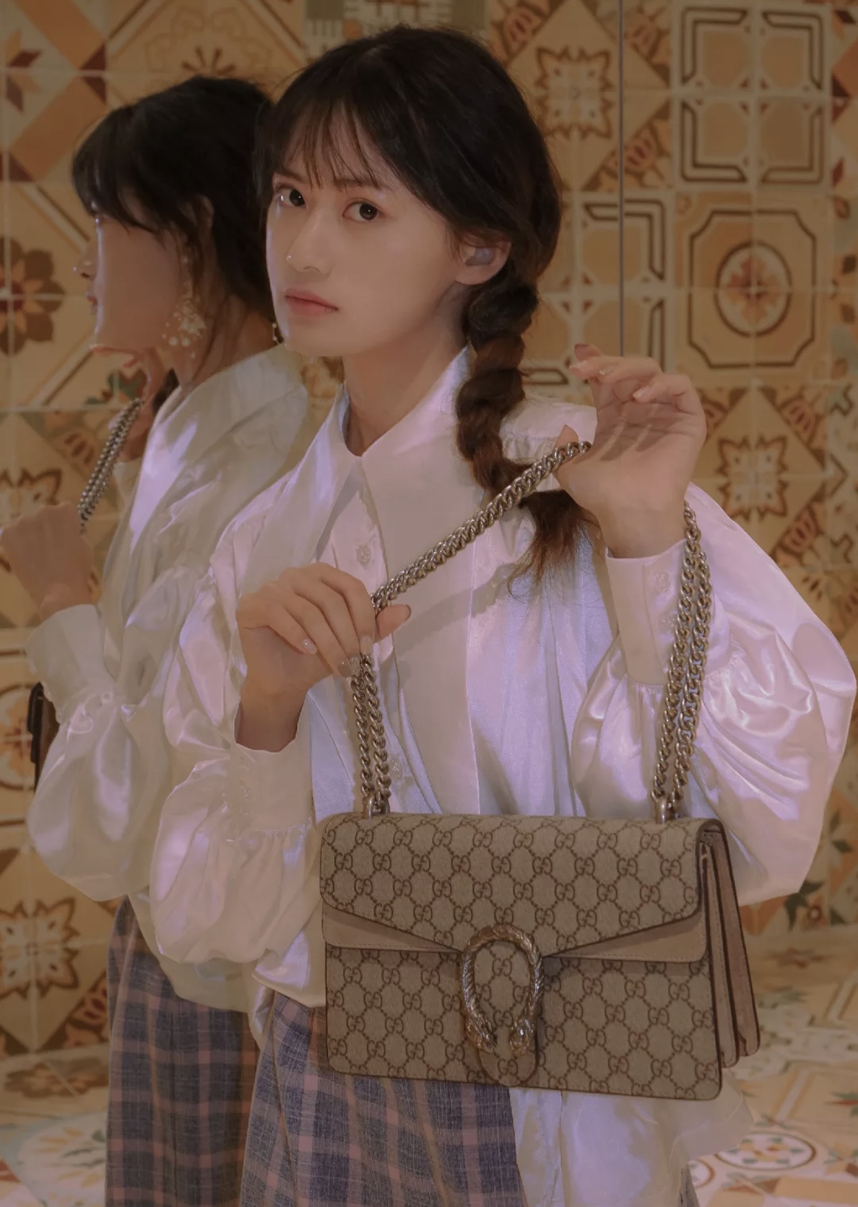 这款包包是AAAAA 1:1 质量 (非常棒). 使用了和原版一模一样的材料. 商标部分也保持了和古奇/Gucci一样. 图片拍摄是实物包包拍摄, 您所收到的实物保证和我们图片一模一样.