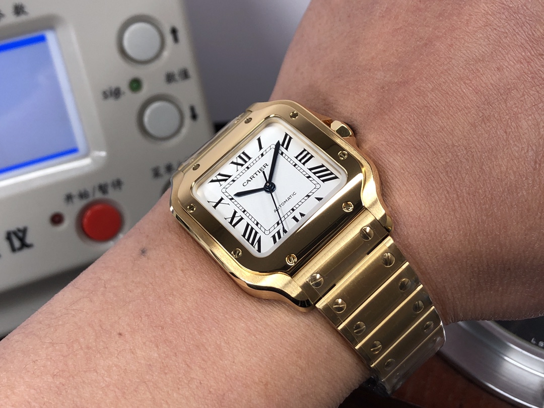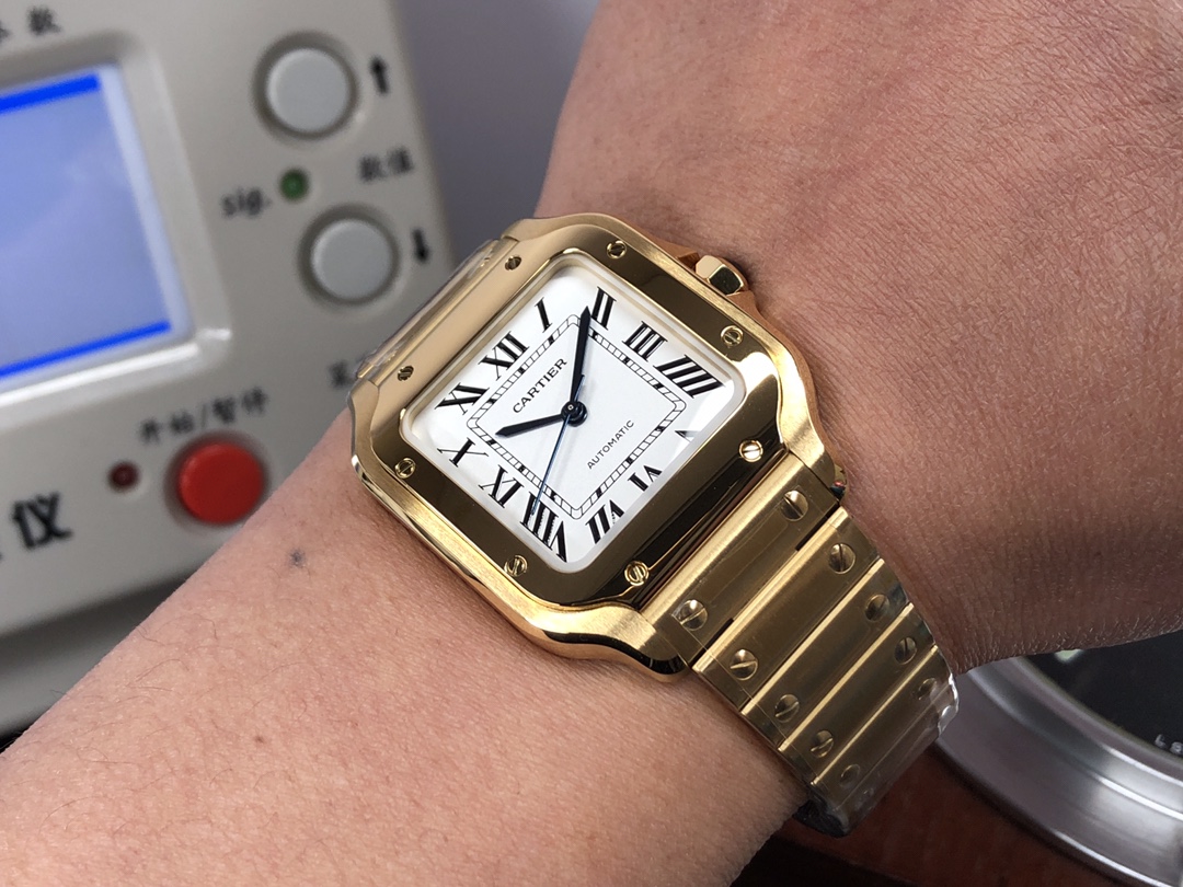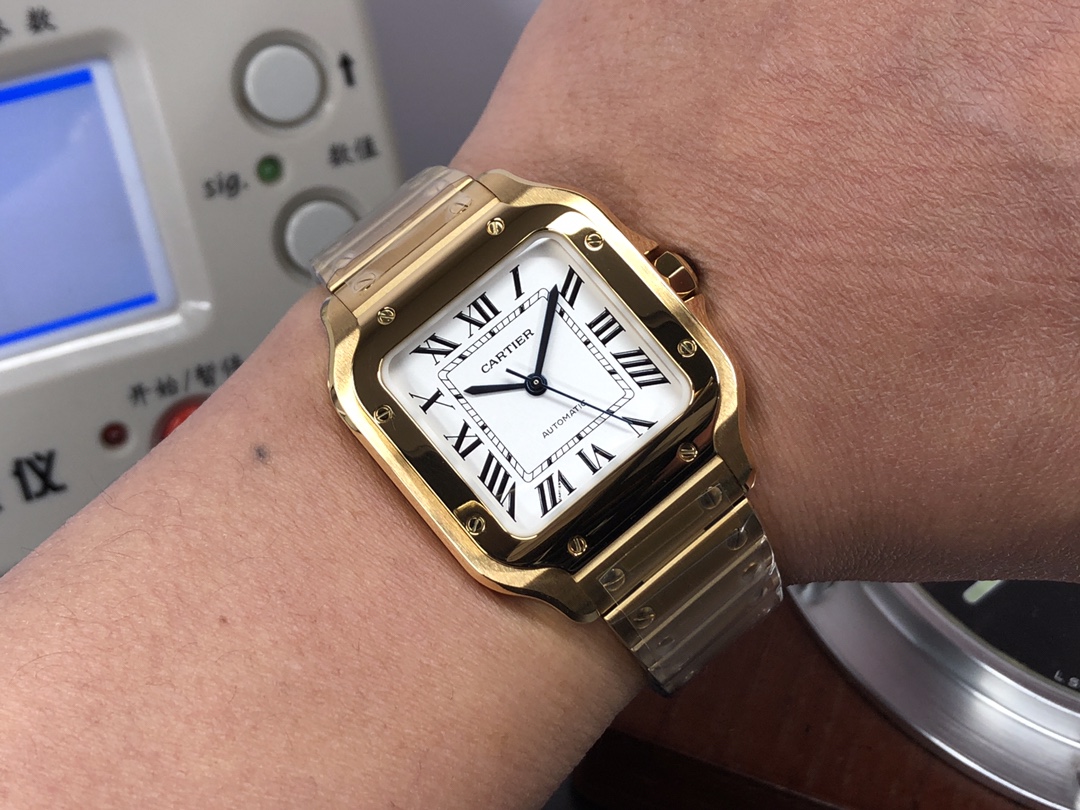 这款手表是AAAAA 1:1 质量 (非常棒). 使用了和原版一模一样的材料. 商标部分也保持了和卡地亚/Cartier一样. 图片拍摄是实物手表拍摄, 您所收到的实物保证和我们图片一模一样.