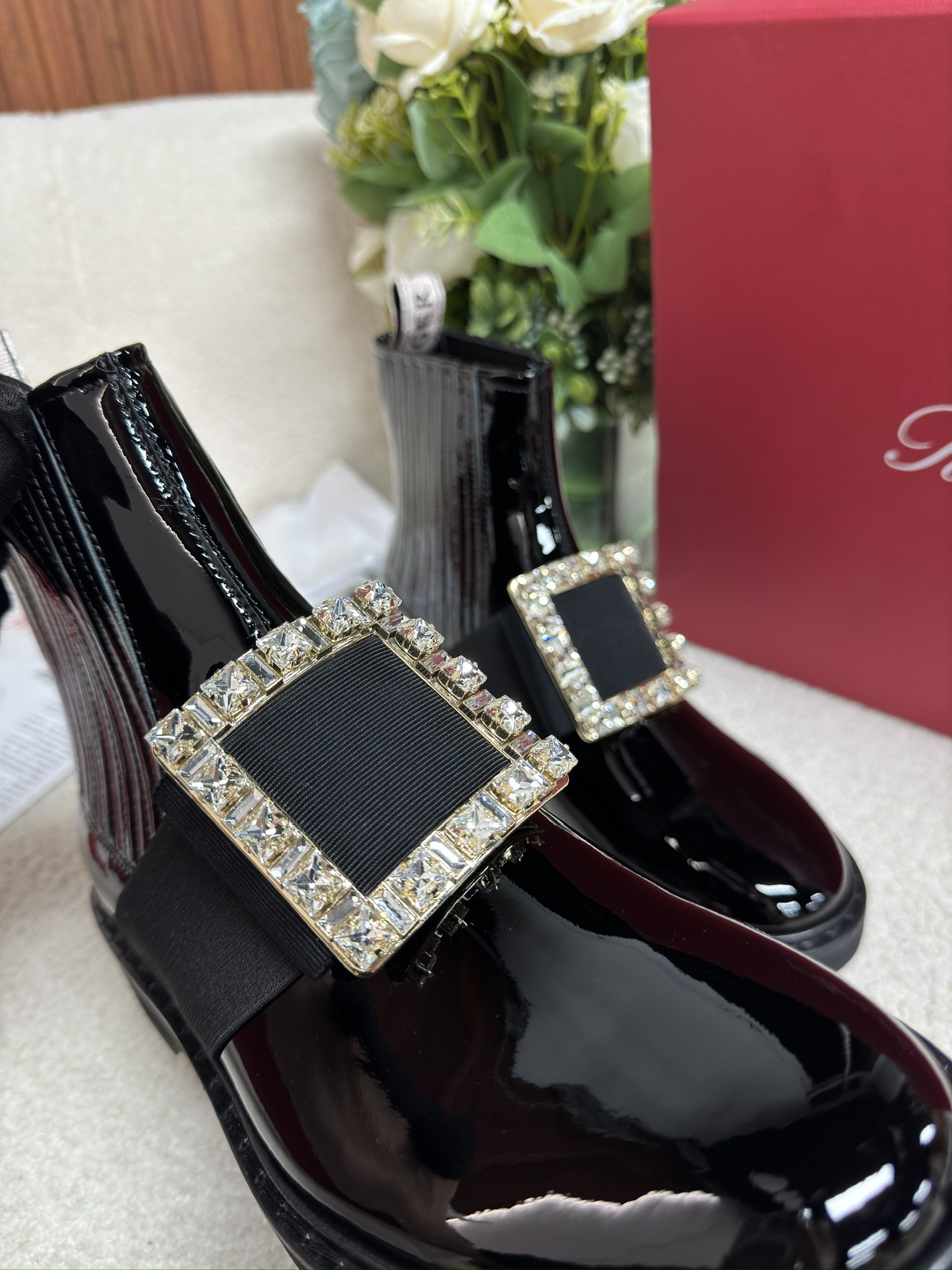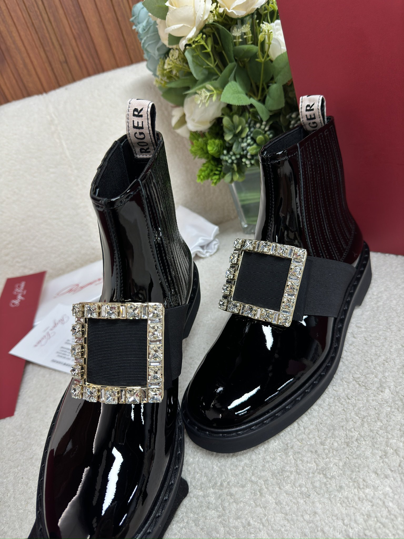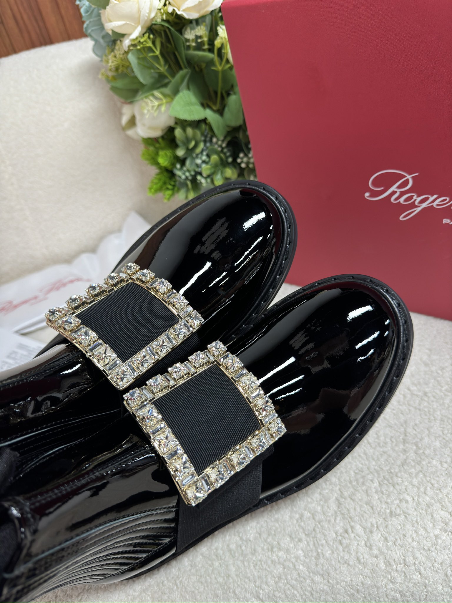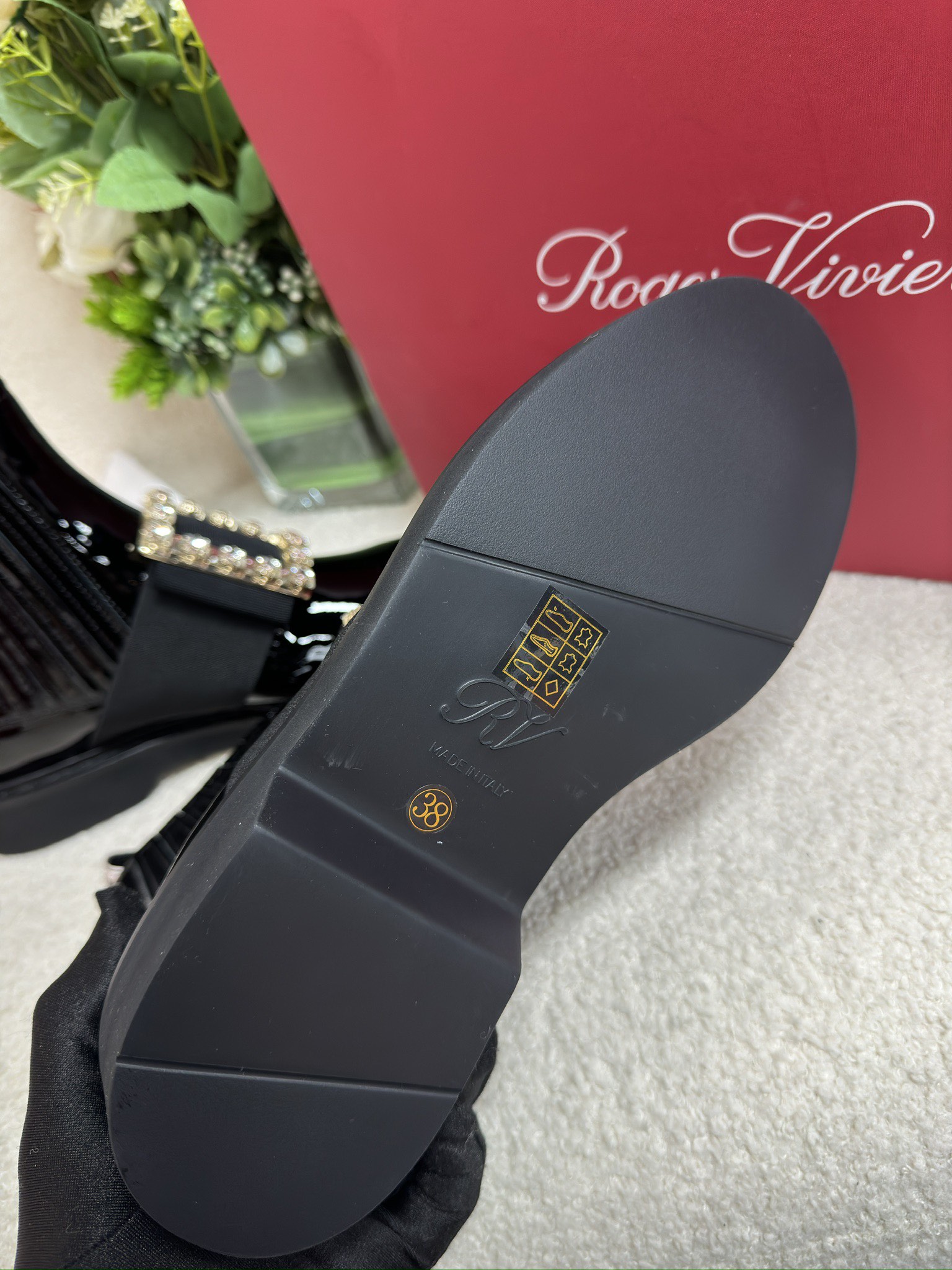 这款鞋子是AAAAA 1:1 质量 (非常棒). 使用了和原版一模一样的材料. 商标部分也保持了和罗杰维维耶/Roger Vivier一样. 图片拍摄是实物鞋子拍摄, 您所收到的实物保证和我们图片一模一样.