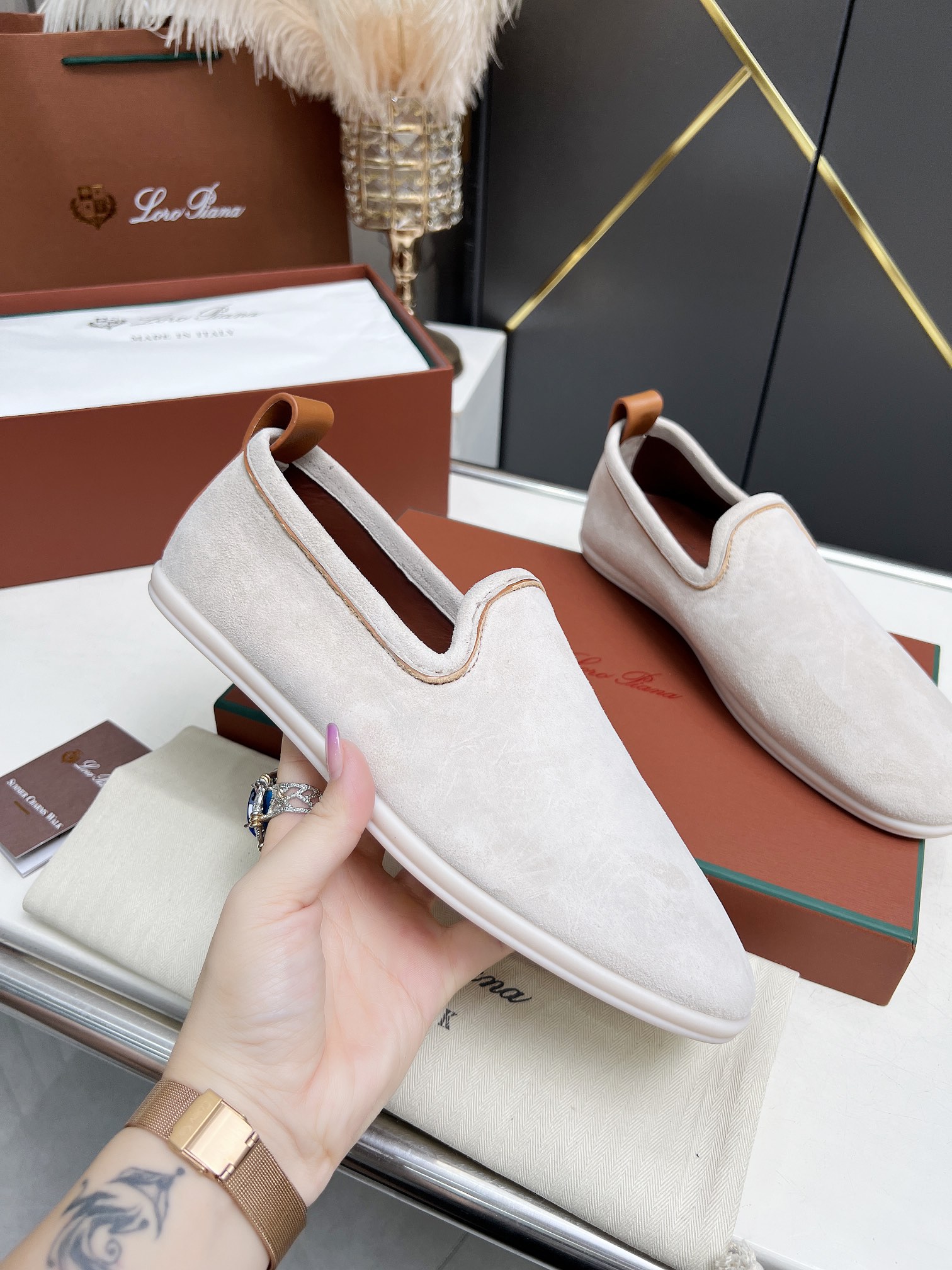 这款鞋子是AAAAA 1:1 质量 (非常棒). 使用了和原版一模一样的材料. 商标部分也保持了和洛罗皮亚纳/Loro Piana一样. 图片拍摄是实物鞋子拍摄, 您所收到的实物保证和我们图片一模一样.