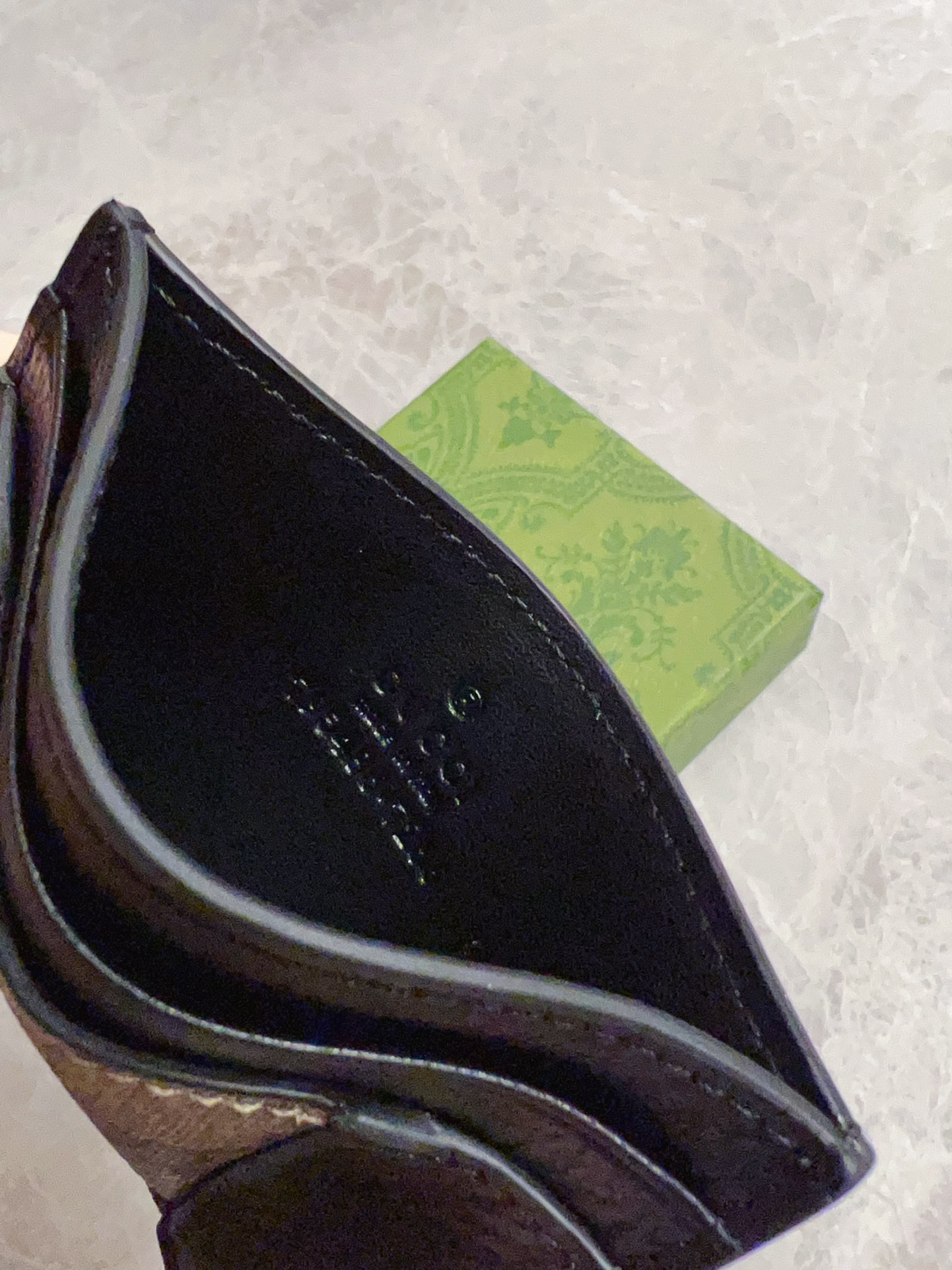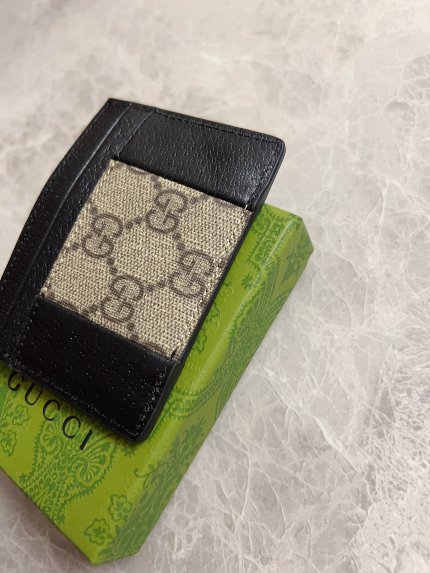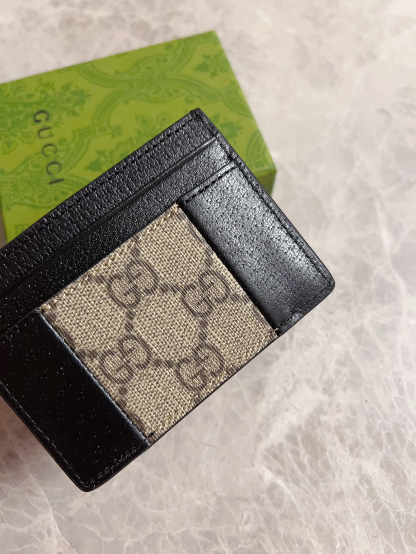 这款钱包是AAAAA 1:1 质量 (非常棒). 使用了和原版一模一样的材料. 商标部分也保持了和古奇/Gucci一样. 图片拍摄是实物钱包拍摄, 您所收到的实物保证和我们图片一模一样.