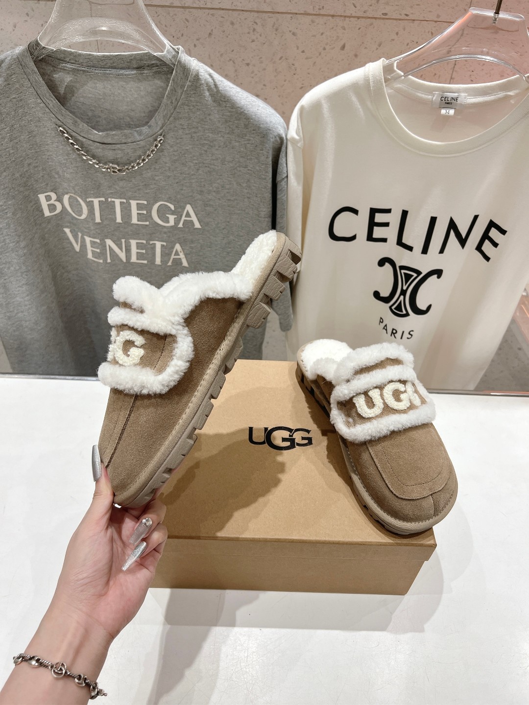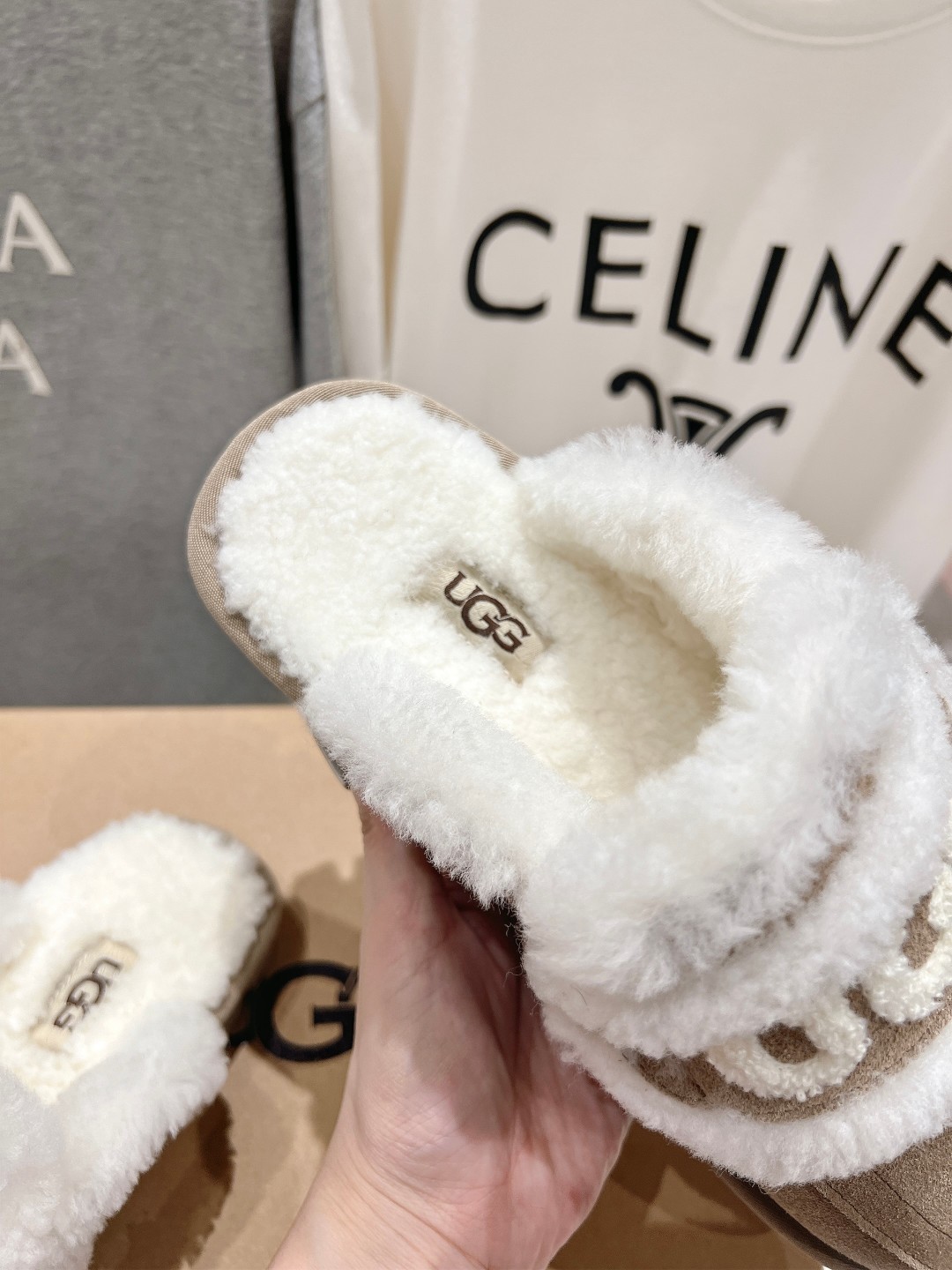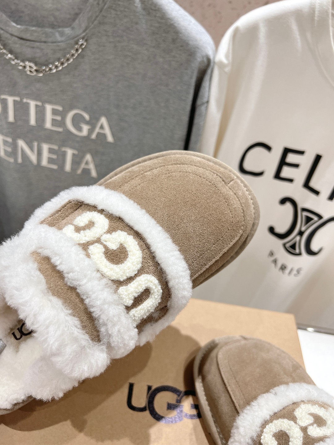 这款鞋子是AAAAA 1:1 质量 (非常棒). 使用了和原版一模一样的材料. 商标部分也保持了和UGG雪地靴一样. 图片拍摄是实物鞋子拍摄, 您所收到的实物保证和我们图片一模一样.