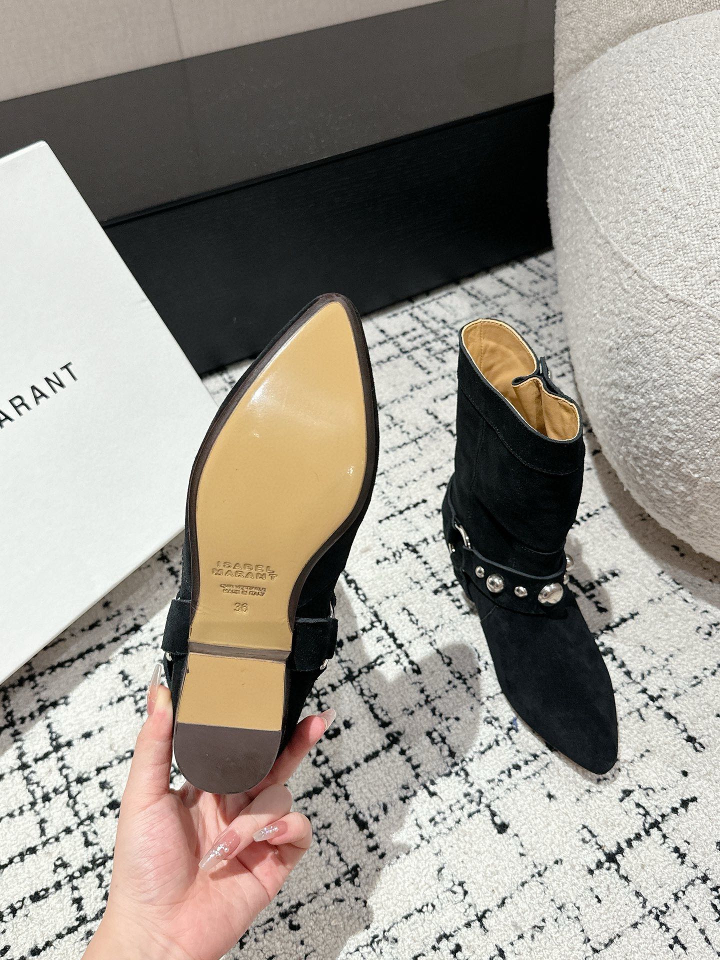 这款鞋子是AAAAA 1:1 质量 (非常棒). 使用了和原版一模一样的材料. 商标部分也保持了和伊莎贝尔·马兰特/Isabel Marant一样. 图片拍摄是实物鞋子拍摄, 您所收到的实物保证和我们图片一模一样.