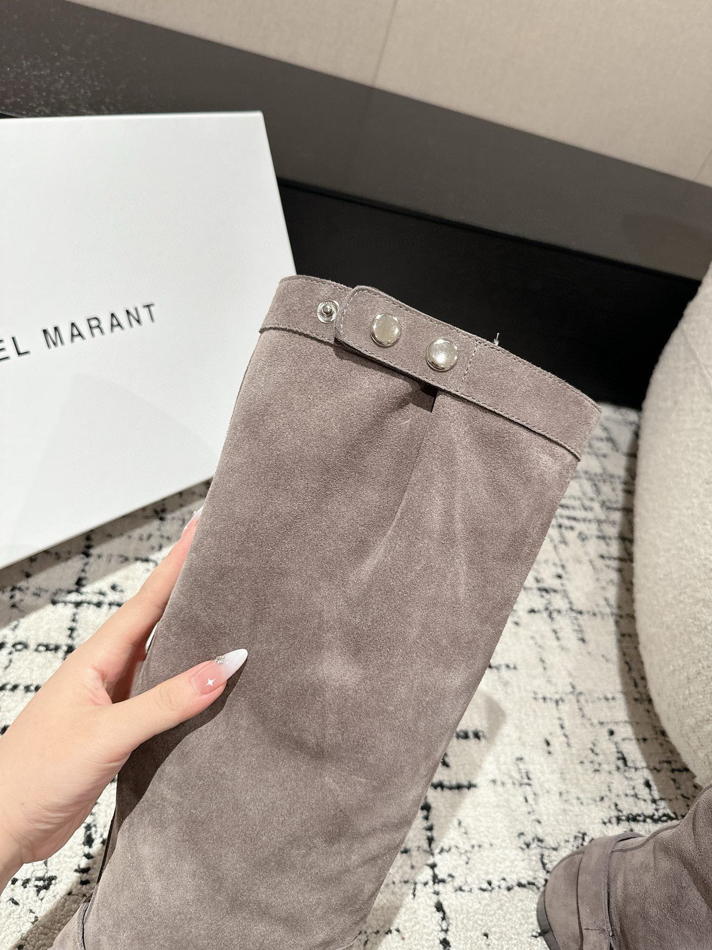 这款鞋子是AAAAA 1:1 质量 (非常棒). 使用了和原版一模一样的材料. 商标部分也保持了和伊莎贝尔·马兰特/Isabel Marant一样. 图片拍摄是实物鞋子拍摄, 您所收到的实物保证和我们图片一模一样.