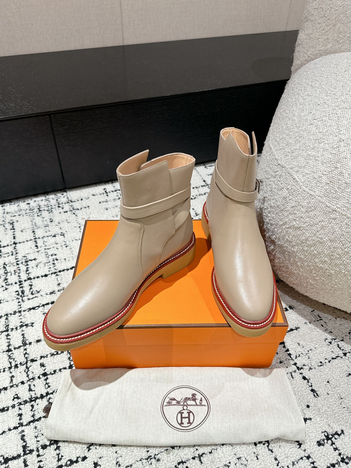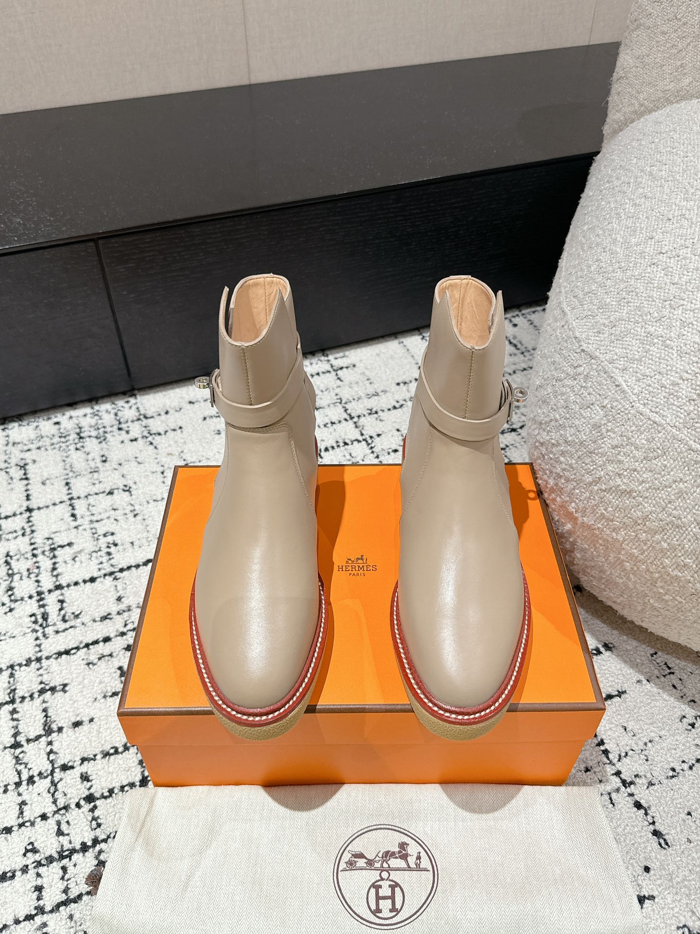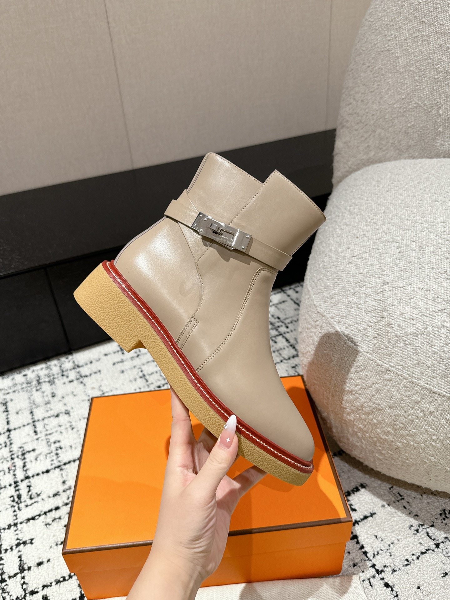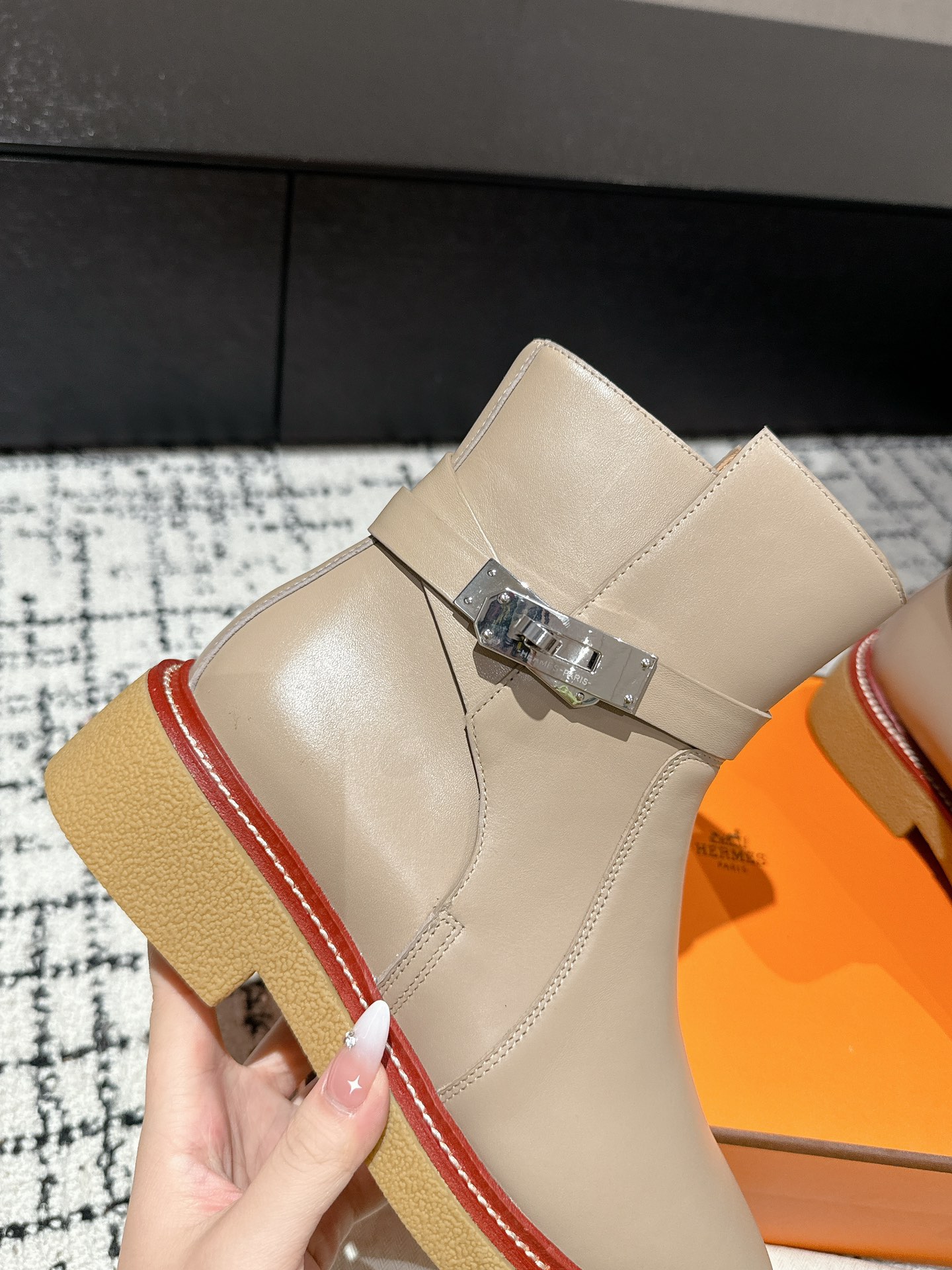 这款鞋子是AAAAA 1:1 质量 (非常棒). 使用了和原版一模一样的材料. 商标部分也保持了和爱马仕/Hermes一样. 图片拍摄是实物鞋子拍摄, 您所收到的实物保证和我们图片一模一样.