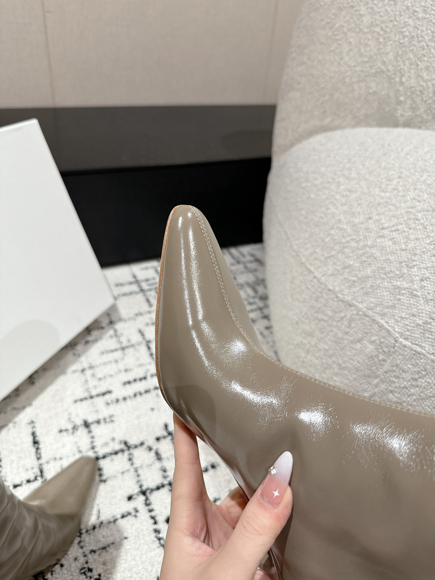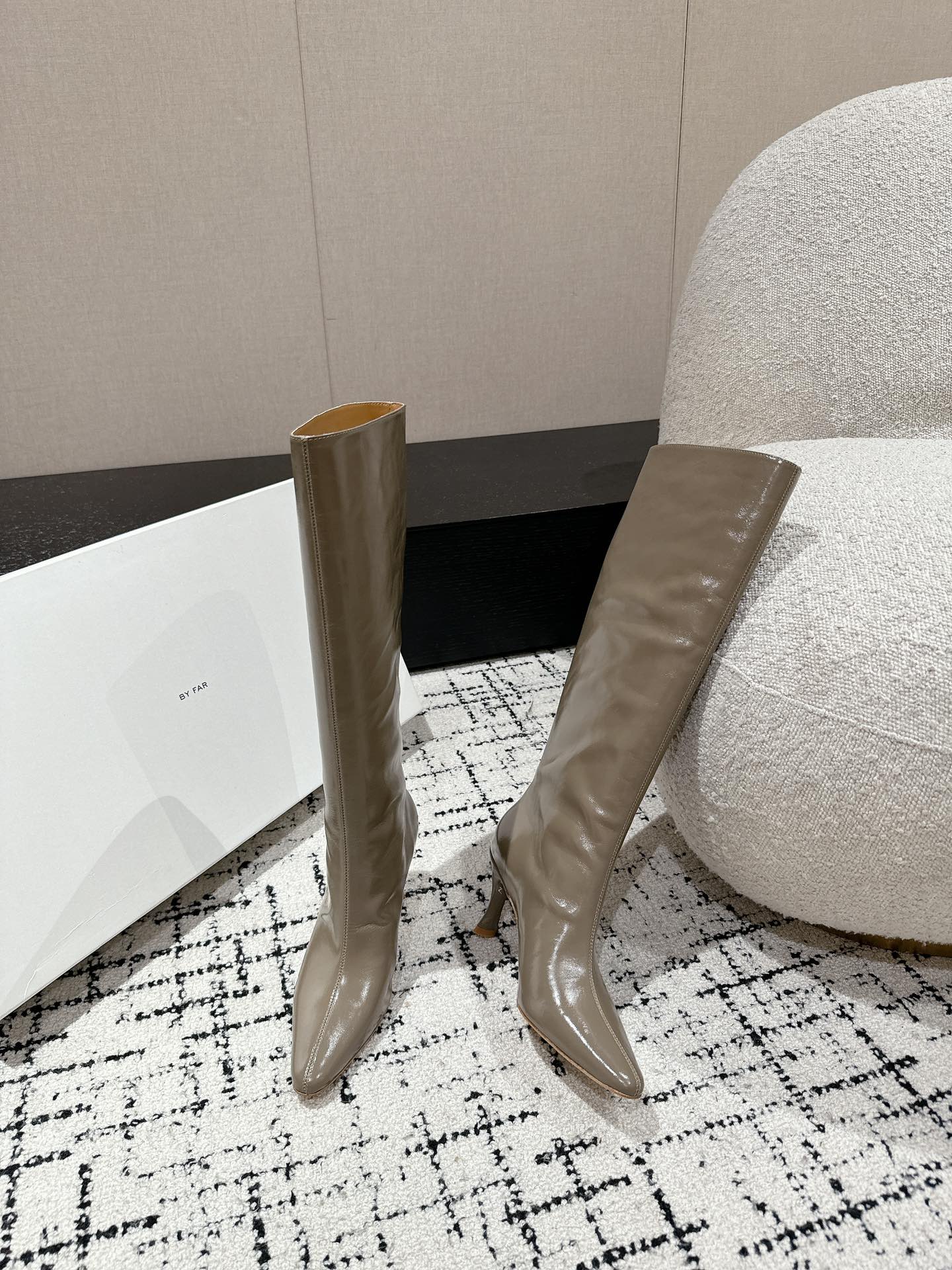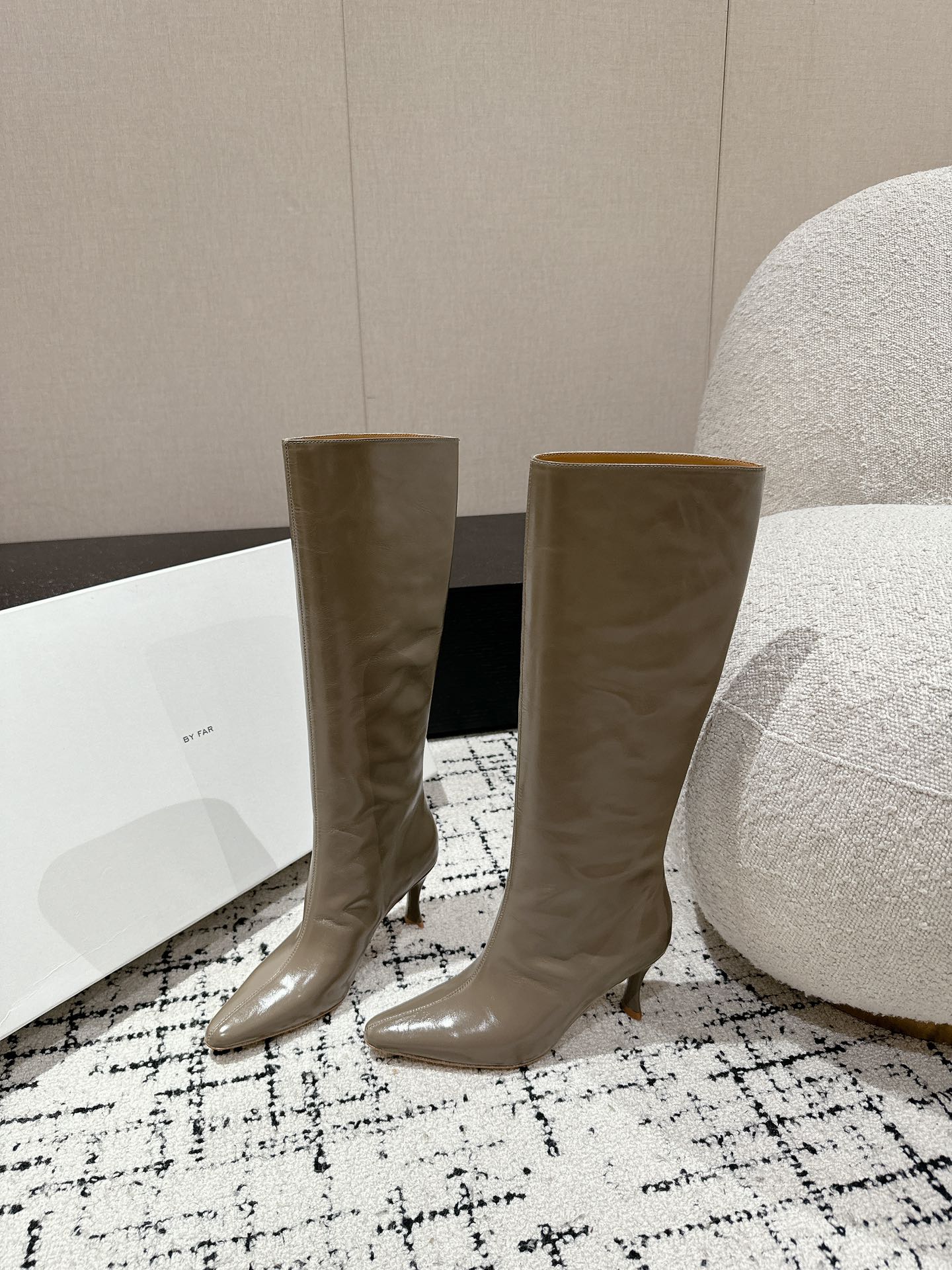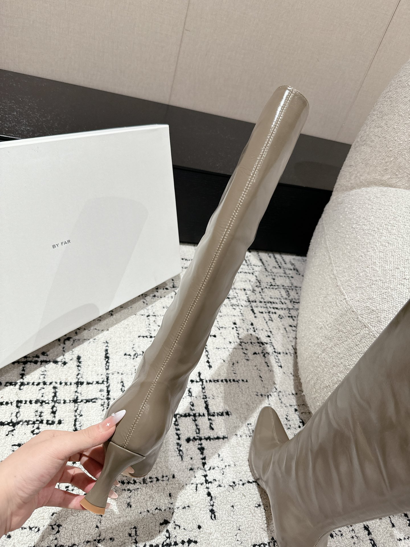 这款鞋子是AAAAA 1:1 质量 (非常棒). 使用了和原版一模一样的材料. 商标部分也保持了和BY FAR一样. 图片拍摄是实物鞋子拍摄, 您所收到的实物保证和我们图片一模一样.