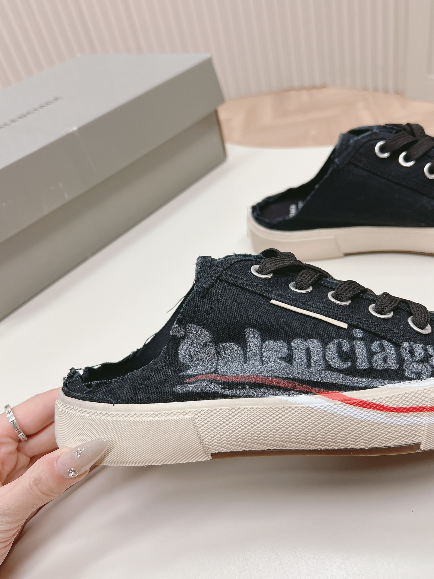 这款鞋子是AAAAA 1:1 质量 (非常棒). 使用了和原版一模一样的材料. 商标部分也保持了和巴黎世家/Balenciaga一样. 图片拍摄是实物鞋子拍摄, 您所收到的实物保证和我们图片一模一样.