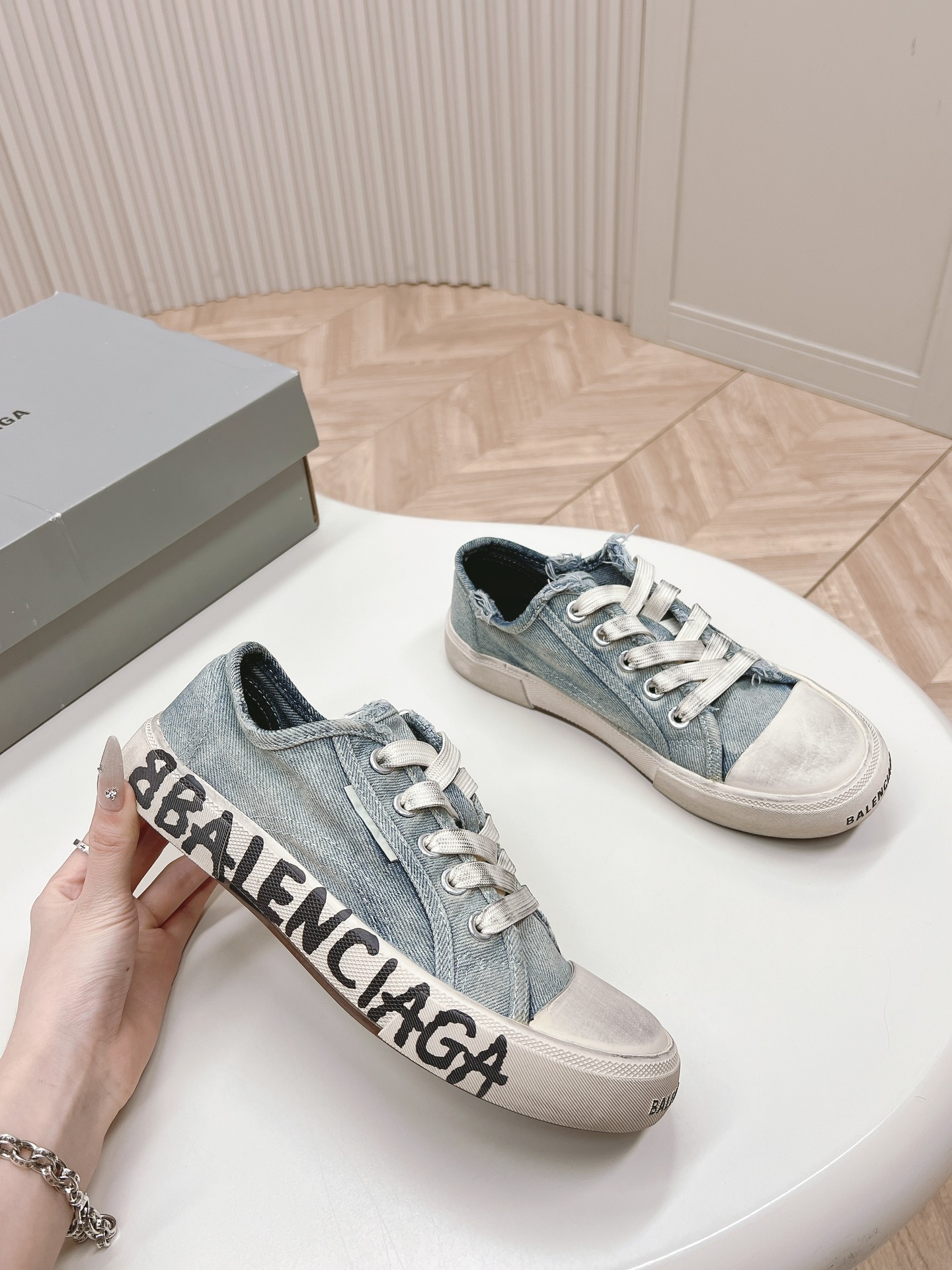 这款鞋子是AAAAA 1:1 质量 (非常棒). 使用了和原版一模一样的材料. 商标部分也保持了和巴黎世家/Balenciaga一样. 图片拍摄是实物鞋子拍摄, 您所收到的实物保证和我们图片一模一样.