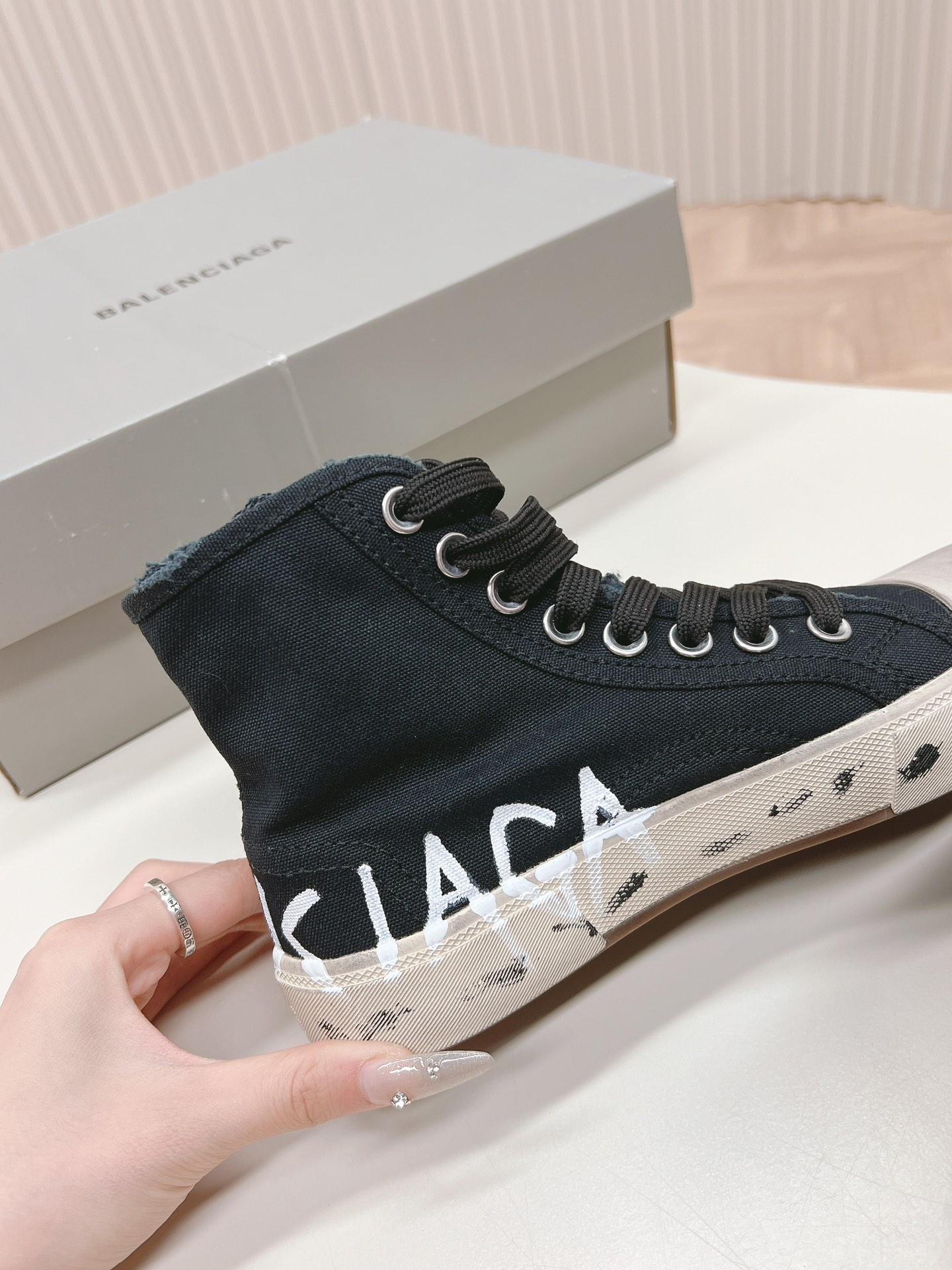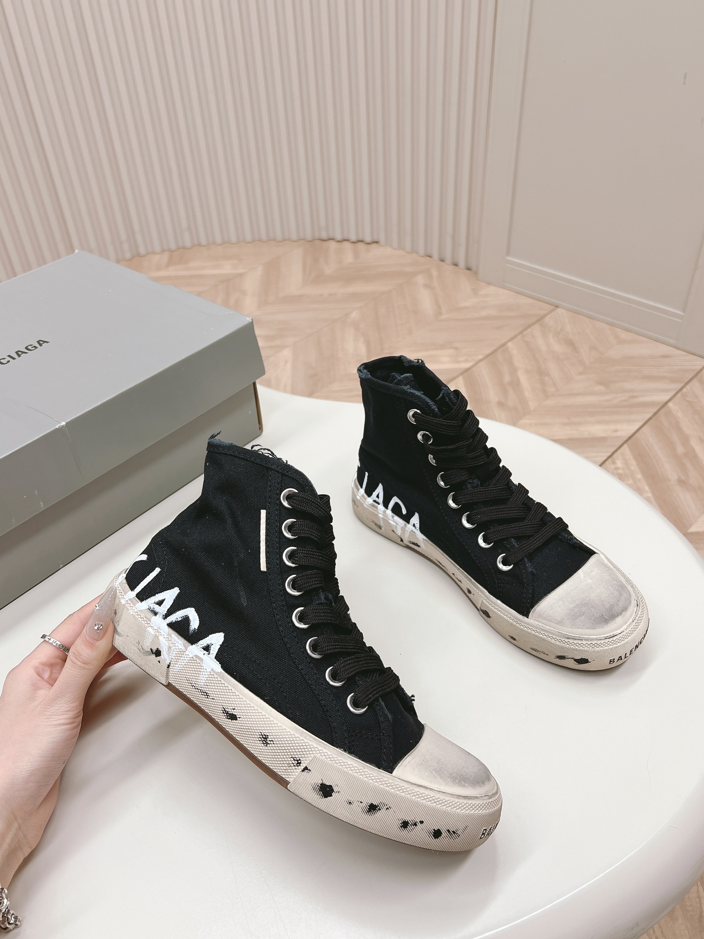 这款鞋子是AAAAA 1:1 质量 (非常棒). 使用了和原版一模一样的材料. 商标部分也保持了和巴黎世家/Balenciaga一样. 图片拍摄是实物鞋子拍摄, 您所收到的实物保证和我们图片一模一样.