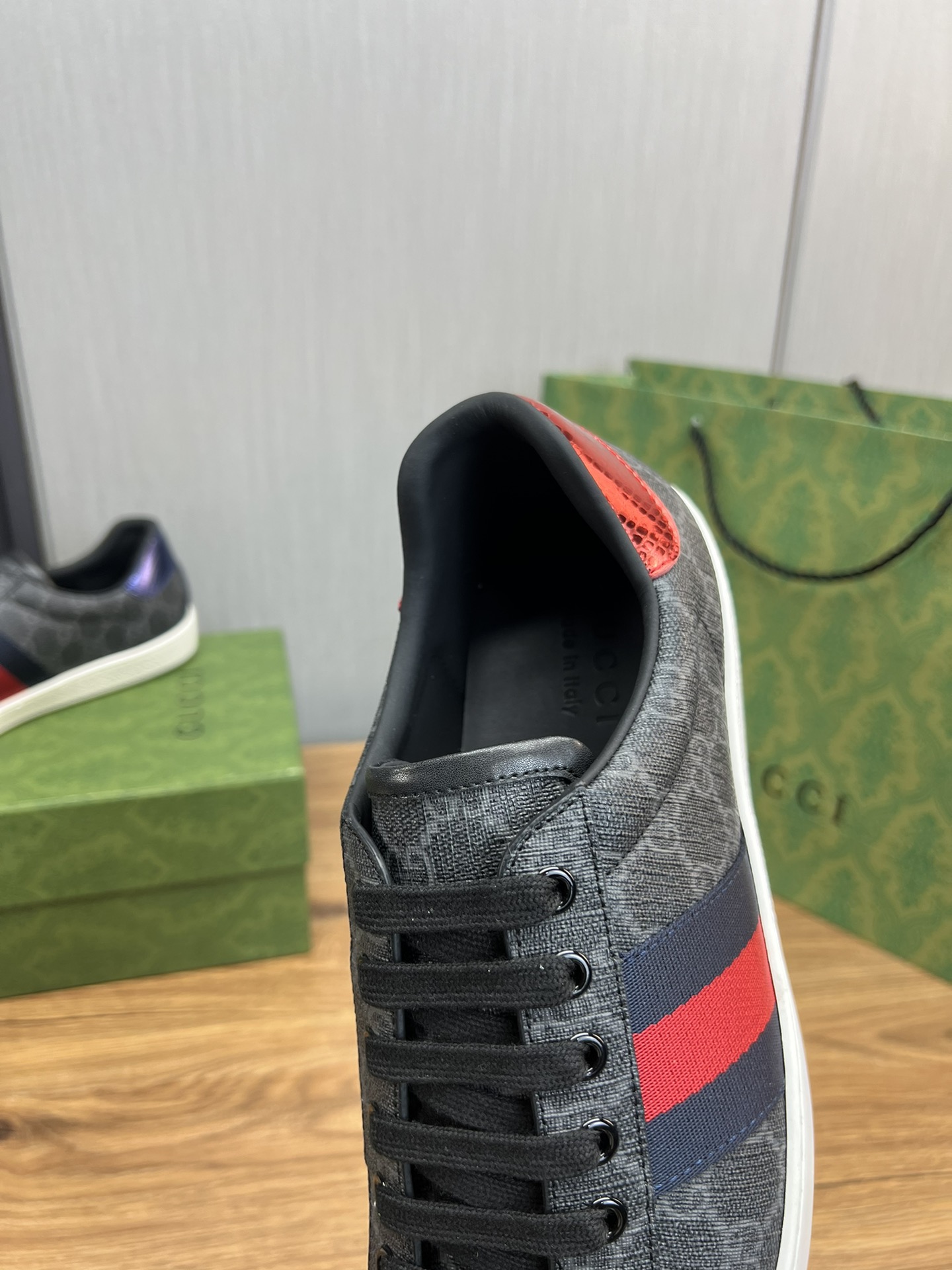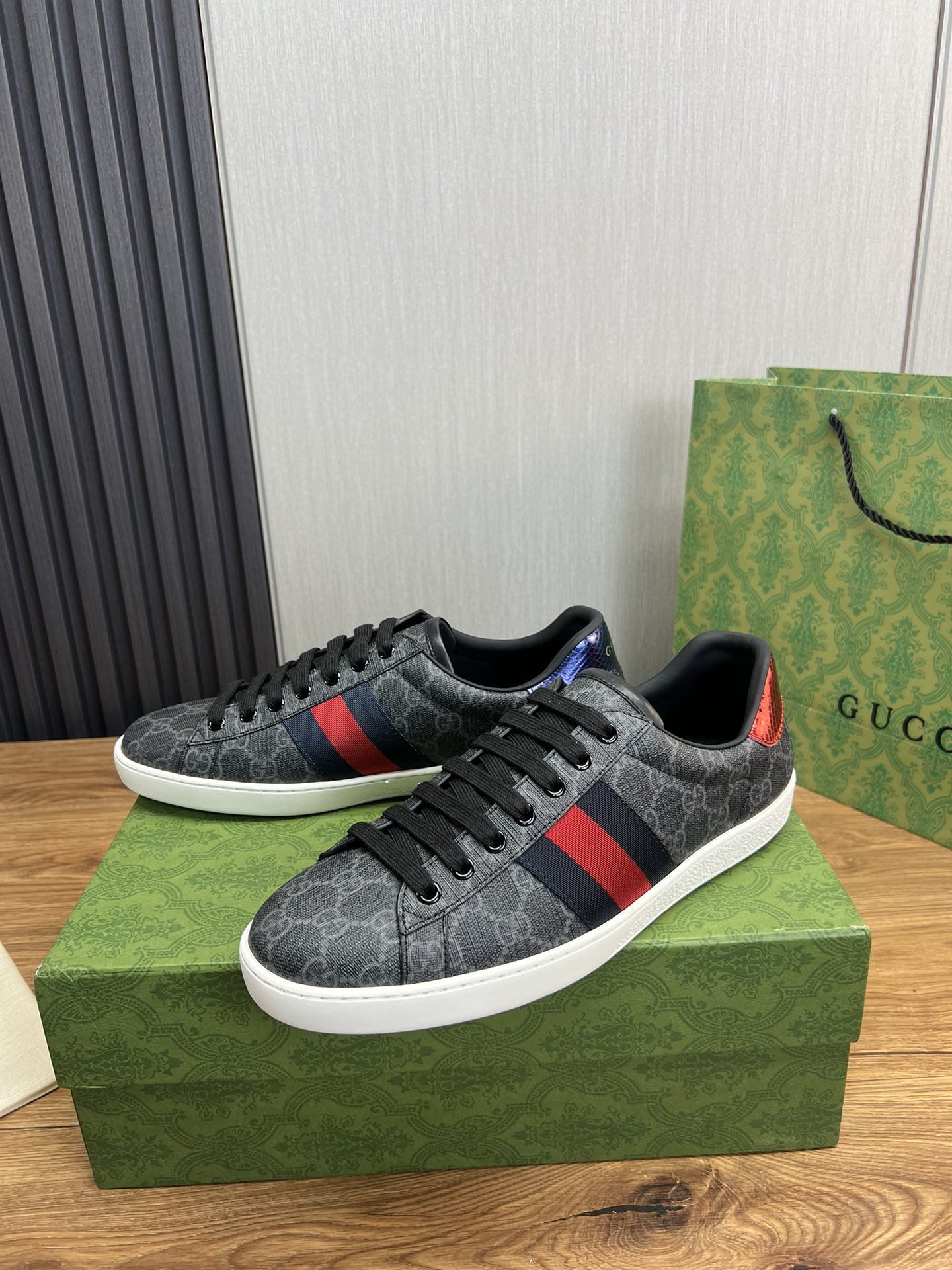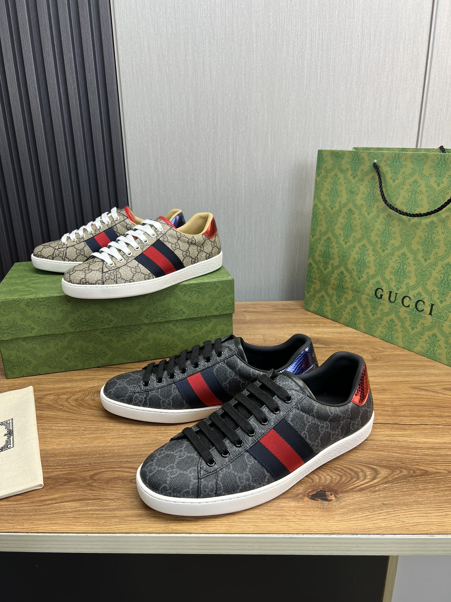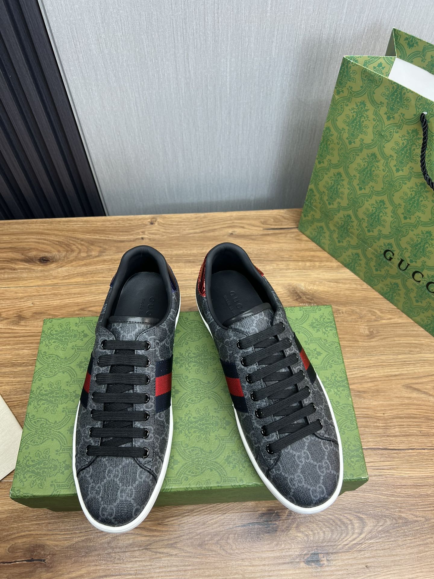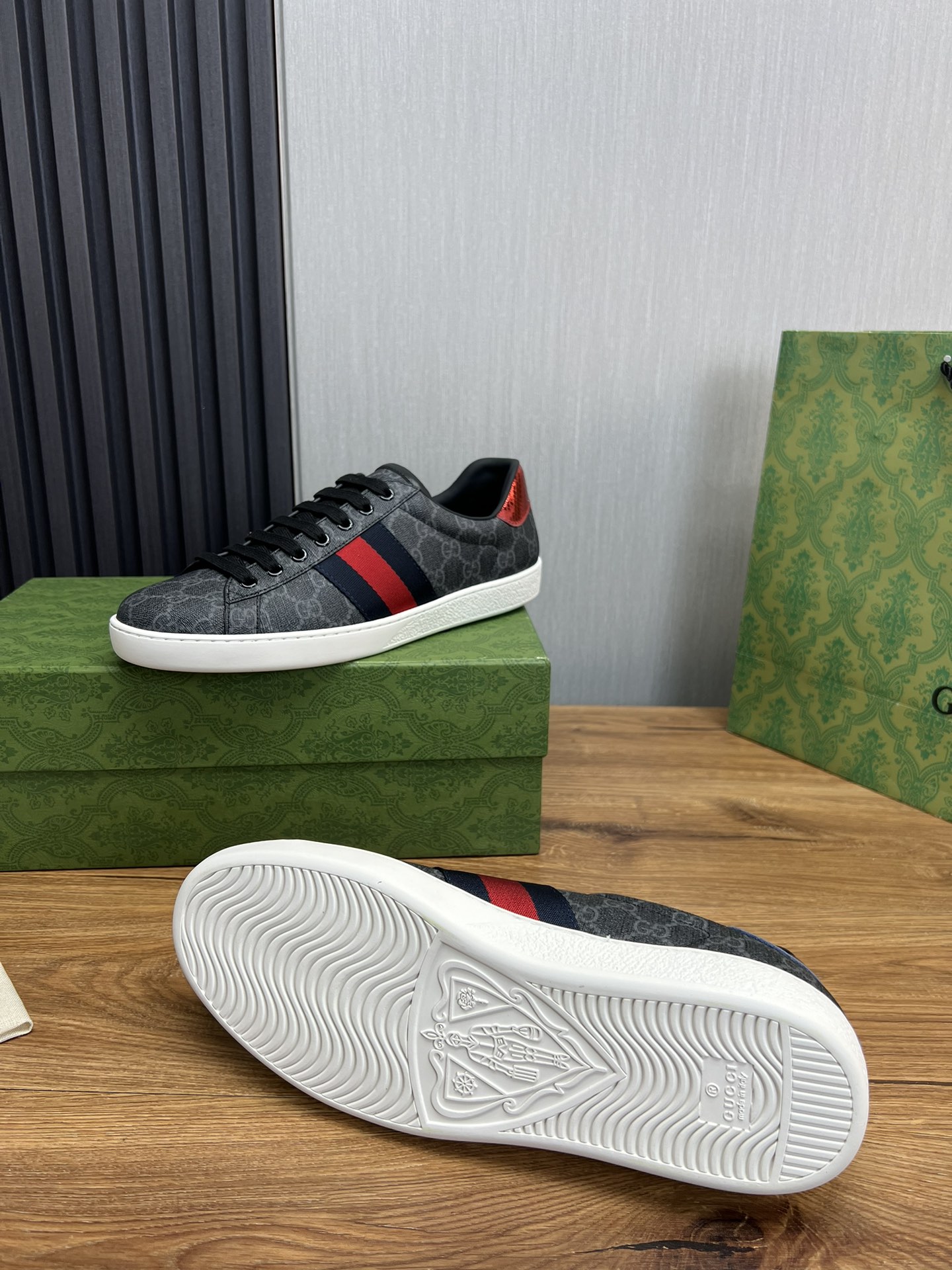 这款鞋子是AAAAA 1:1 质量 (非常棒). 使用了和原版一模一样的材料. 商标部分也保持了和古奇/Gucci一样. 图片拍摄是实物鞋子拍摄, 您所收到的实物保证和我们图片一模一样.
