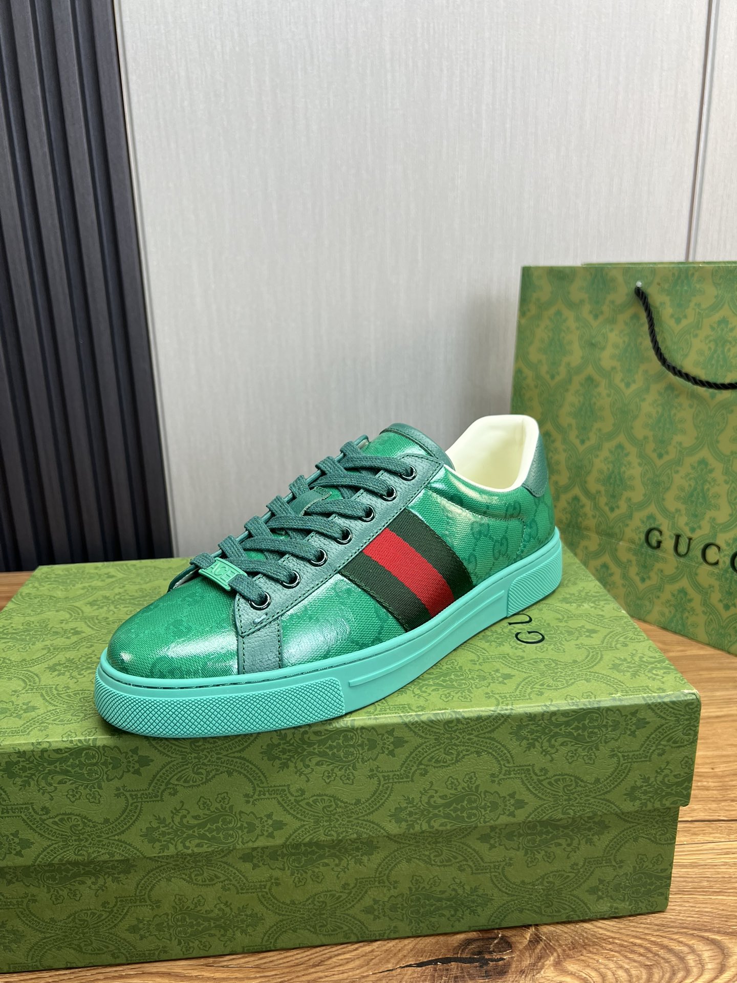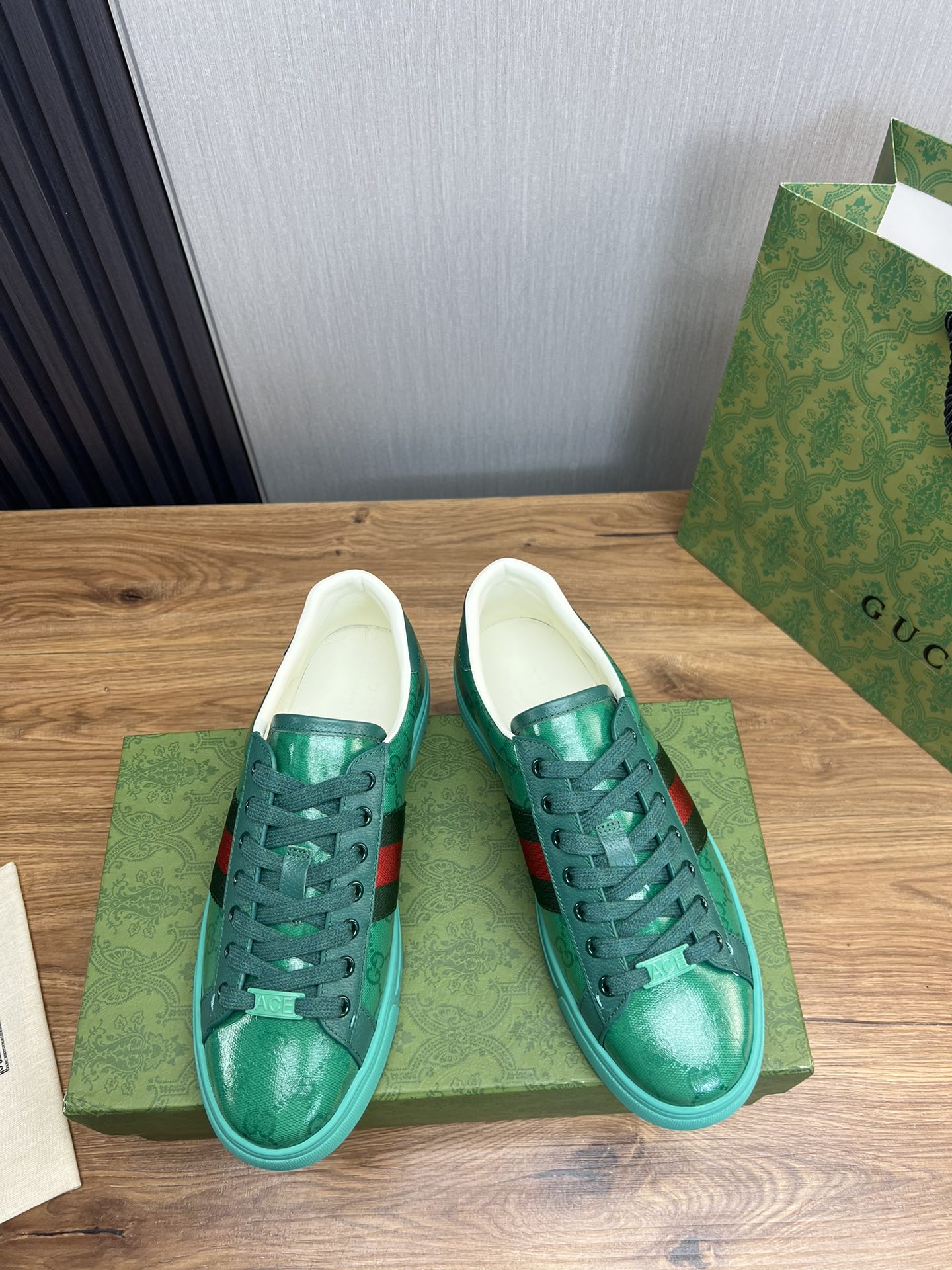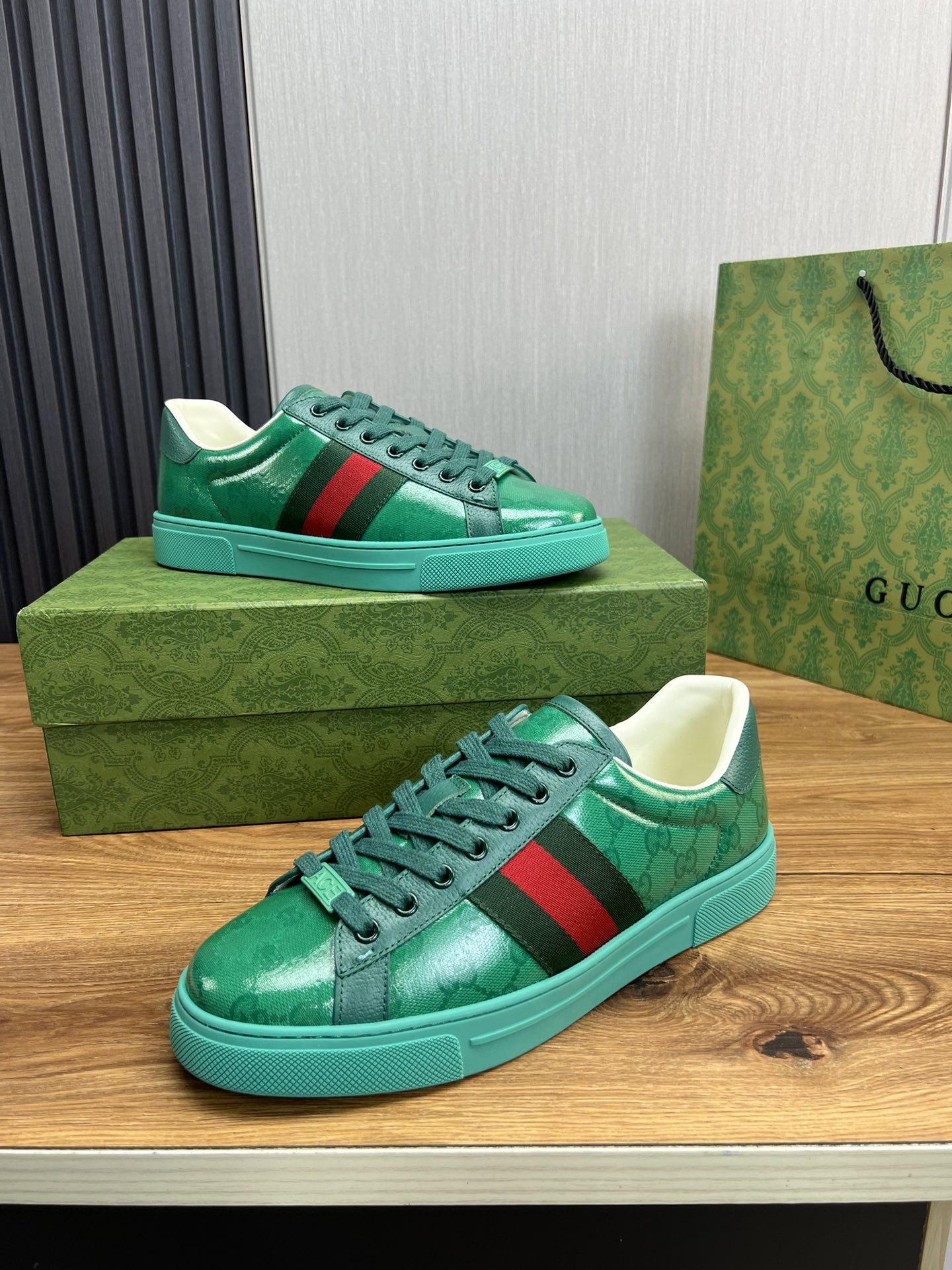 这款鞋子是AAAAA 1:1 质量 (非常棒). 使用了和原版一模一样的材料. 商标部分也保持了和古奇/Gucci一样. 图片拍摄是实物鞋子拍摄, 您所收到的实物保证和我们图片一模一样.