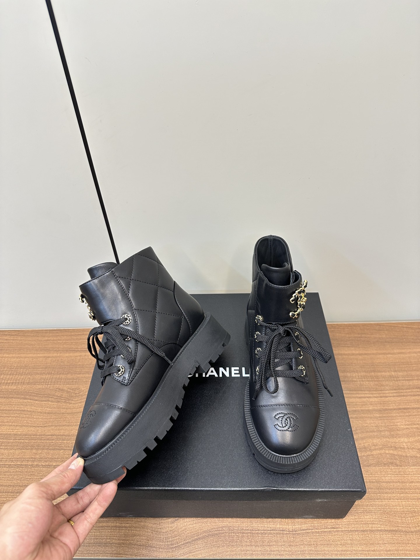 这款鞋子是AAAAA 1:1 质量 (非常棒). 使用了和原版一模一样的材料. 商标部分也保持了和香奈儿/Chanel一样. 图片拍摄是实物鞋子拍摄, 您所收到的实物保证和我们图片一模一样.
