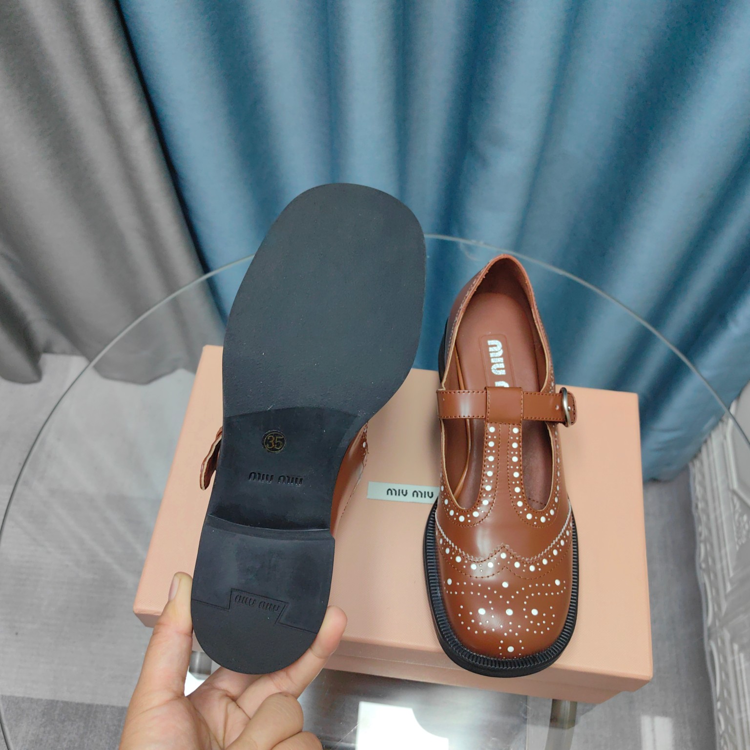 这款鞋子是AAAAA 1:1 质量 (非常棒). 使用了和原版一模一样的材料. 商标部分也保持了和缪缪/Miu Miu一样. 图片拍摄是实物鞋子拍摄, 您所收到的实物保证和我们图片一模一样.