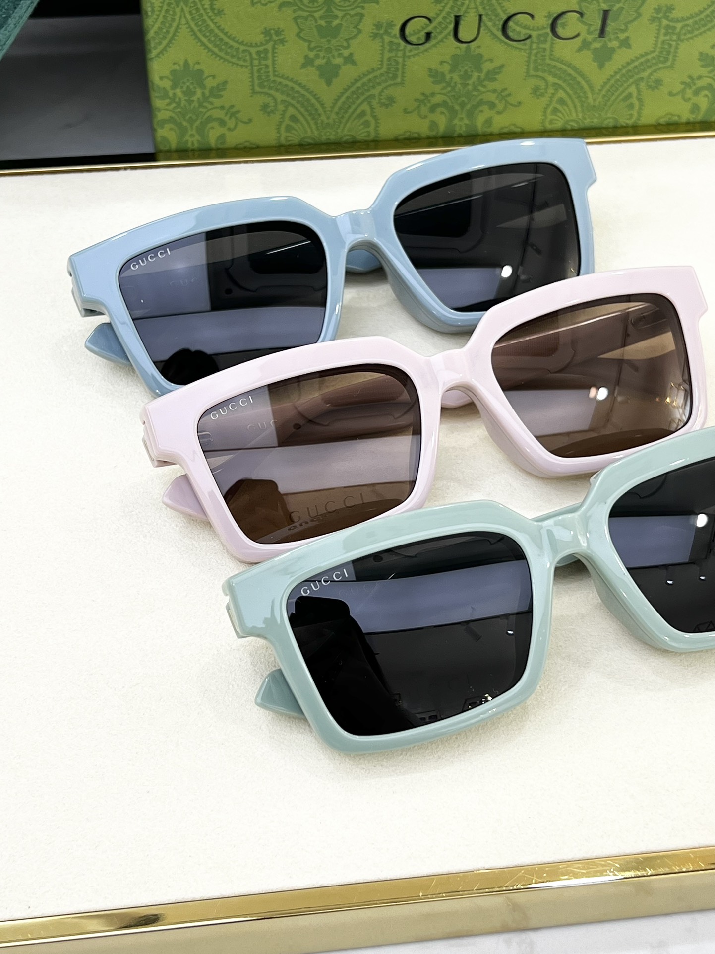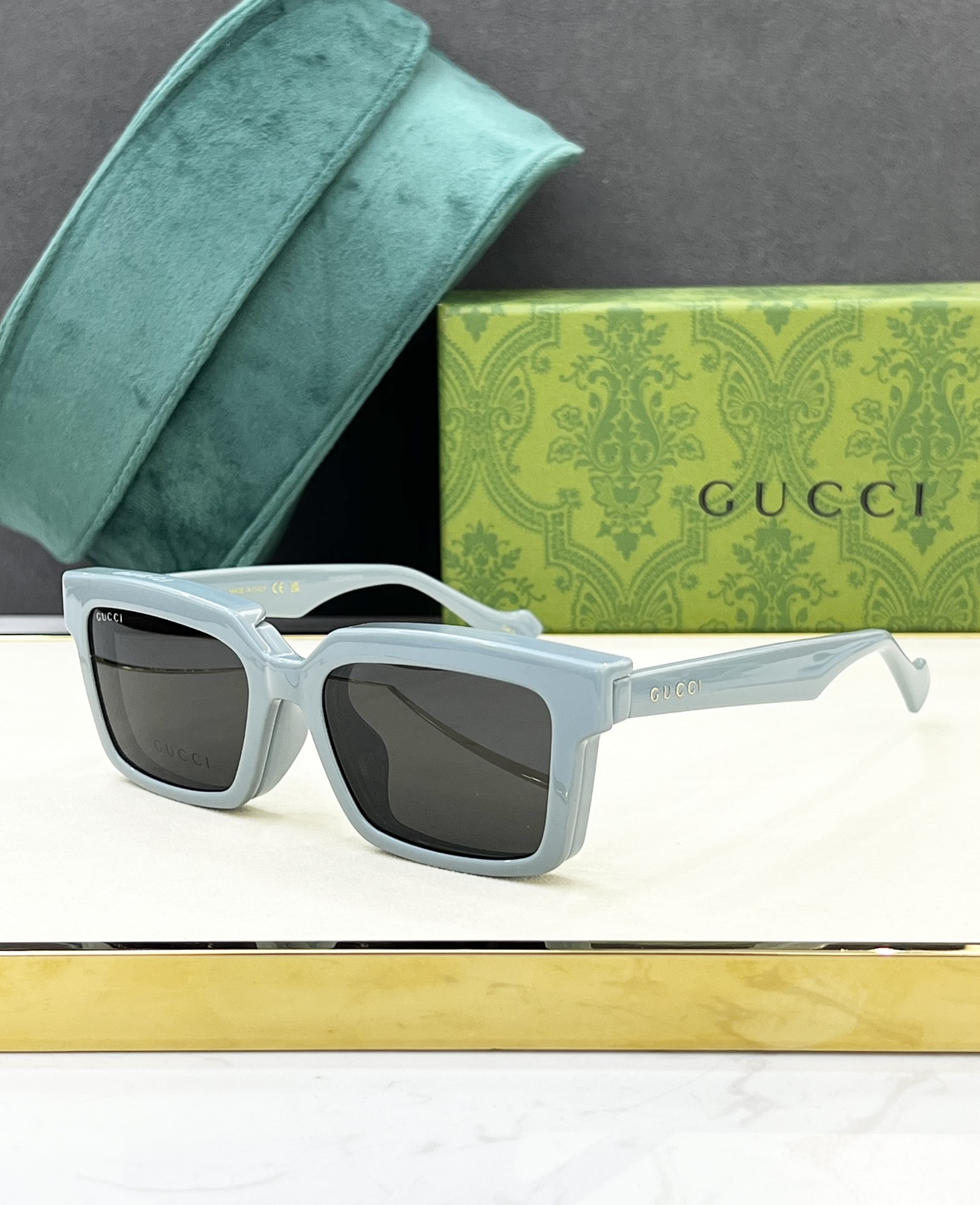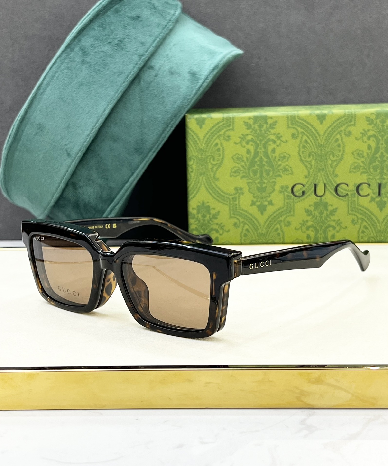 这款太阳眼镜是AAAAA 1:1 质量 (非常棒). 使用了和原版一模一样的材料. 商标部分也保持了和古奇/Gucci一样. 图片拍摄是实物太阳眼镜拍摄, 您所收到的实物保证和我们图片一模一样.